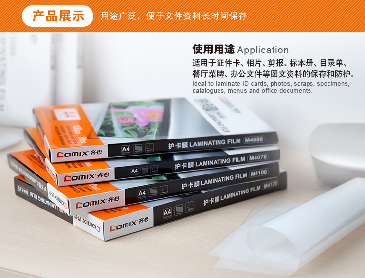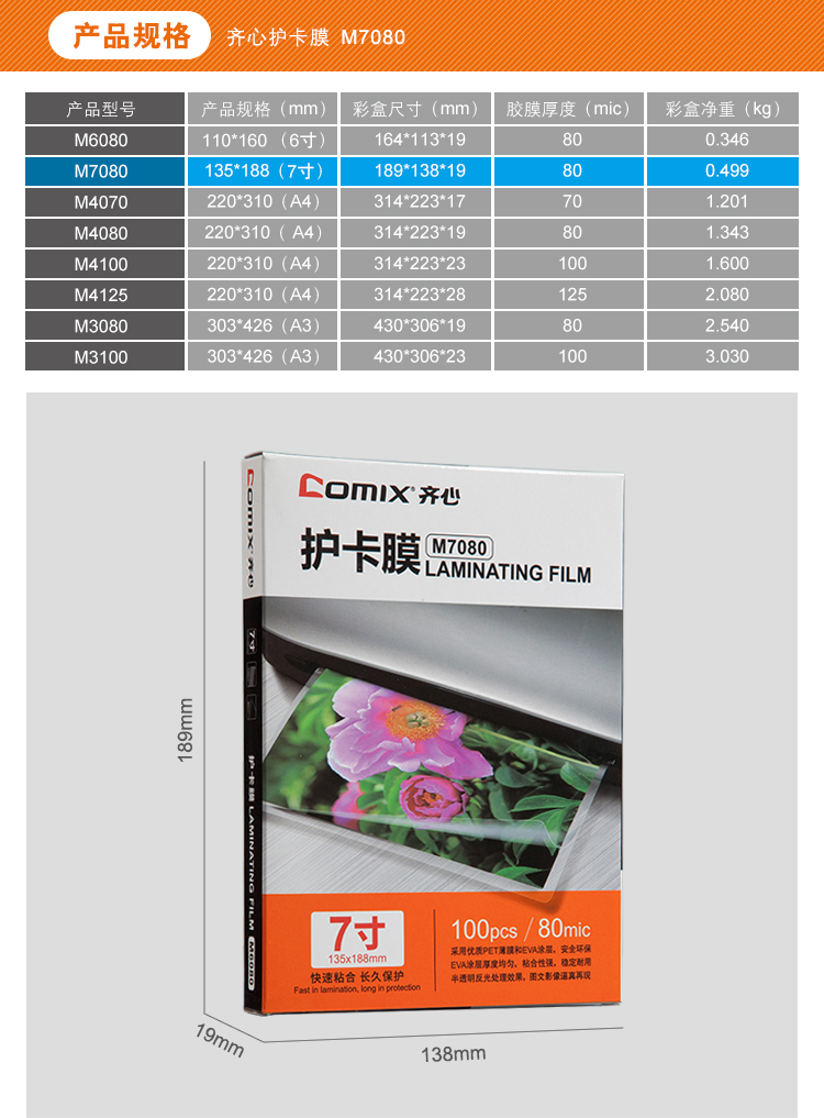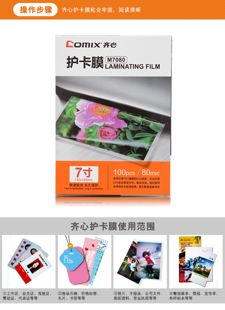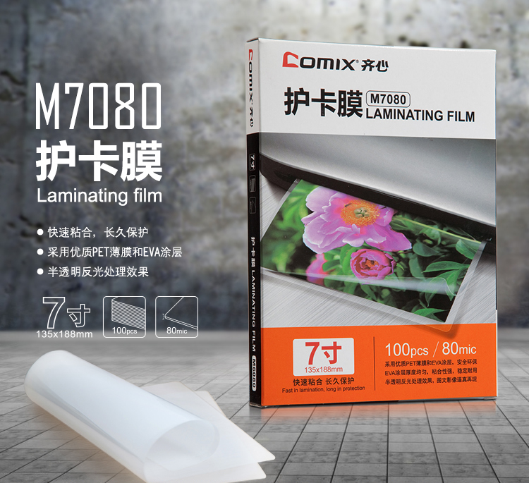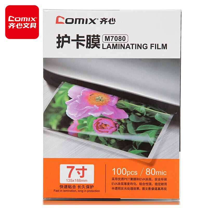 (特)齐心 100张/盒 7寸 80MIC M7080 透明高清照片塑封膜 相片护卡膜 过塑膜 10盒