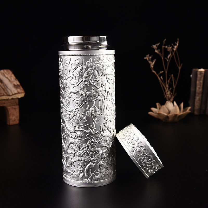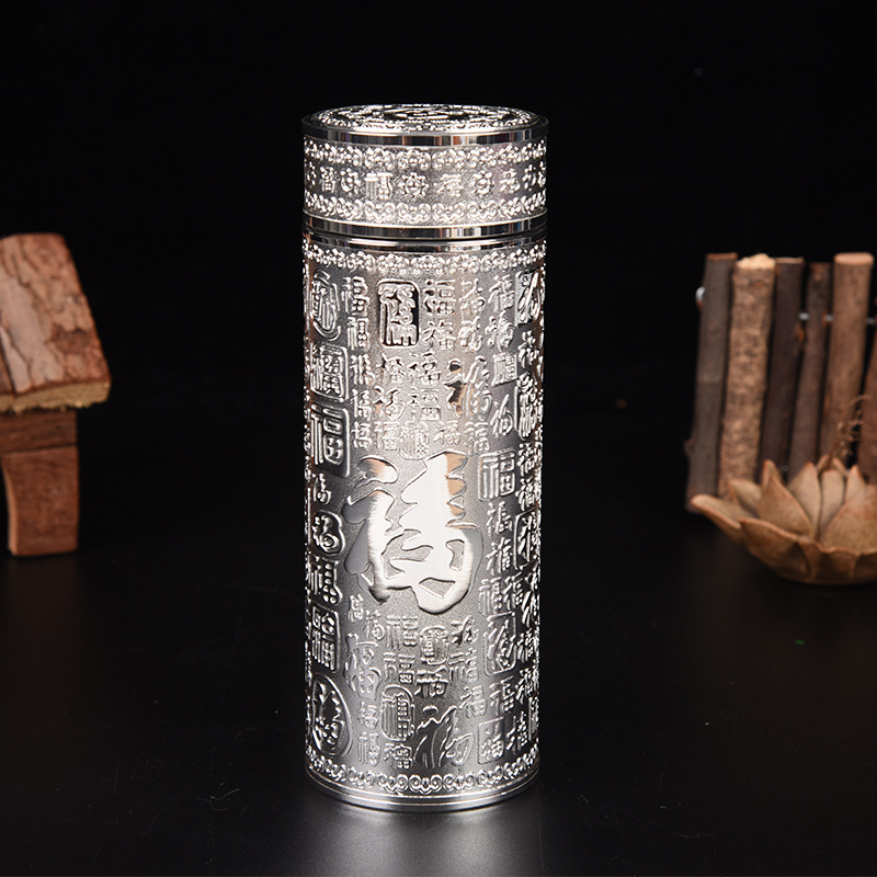 九龙杯百福杯银水杯999足银内胆真空保温杯