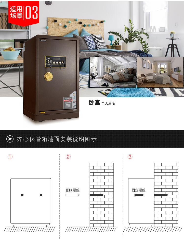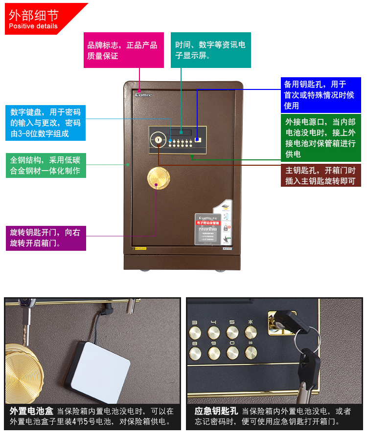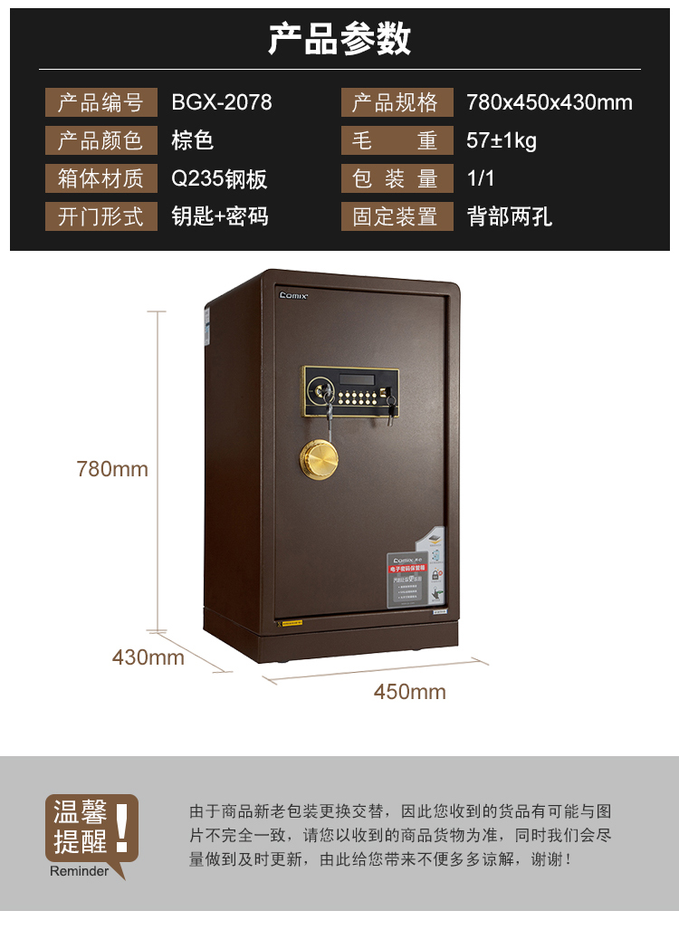 齐心(COMIX)BGX-2078 电子密码保管箱 棕色