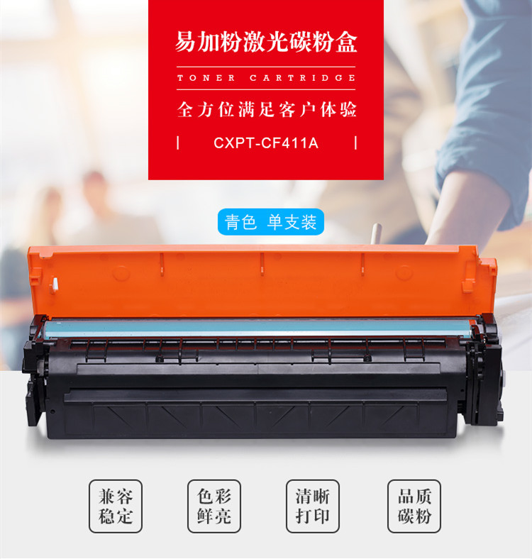 齐心(COMIX)CXPT-CF411A 易加粉激光碳粉盒 青
