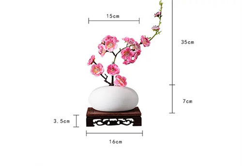 仿真粉色梅花新中式禅意白色陶瓷花瓶摆件插花花瓶蜡梅花木底座套装