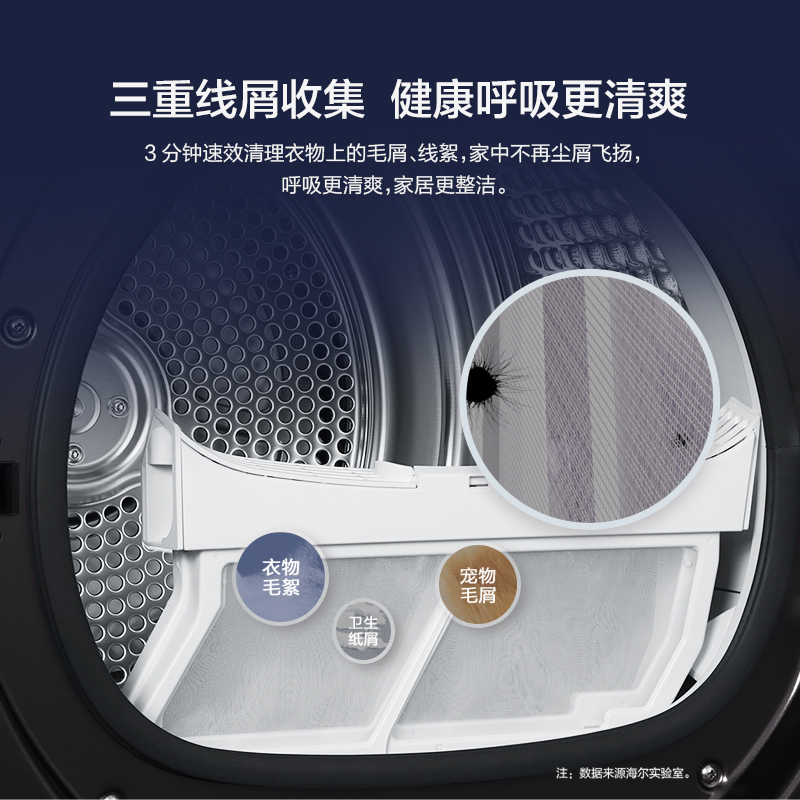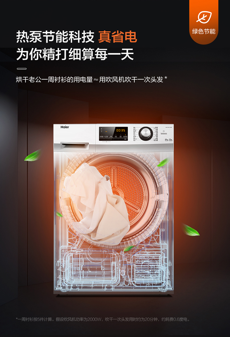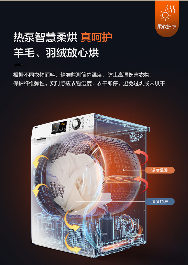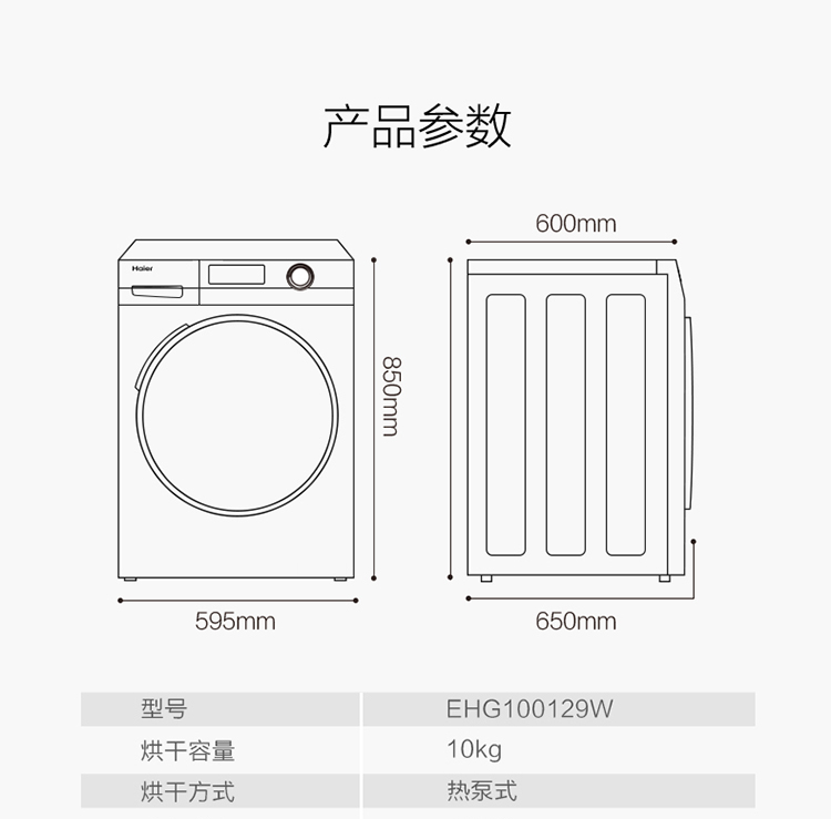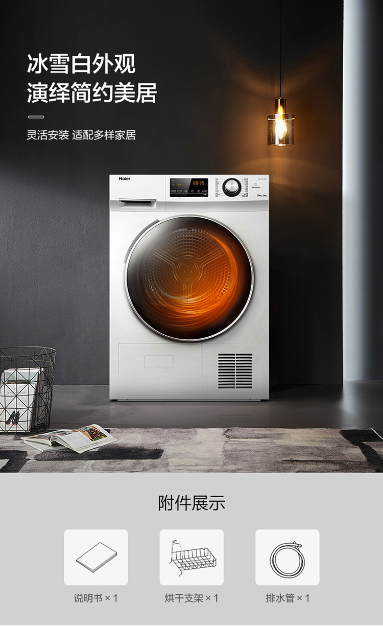 (特)海尔(Haier)10公斤热泵类烘干机家用99.99%除菌除潮祛除宠物毛发衣物干衣机烘衣机全自动滚筒 129W