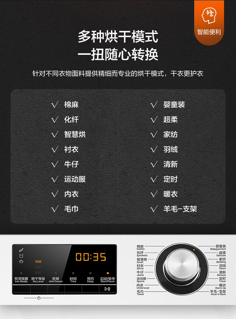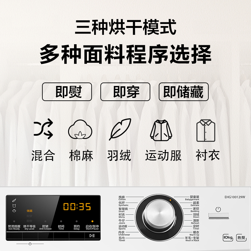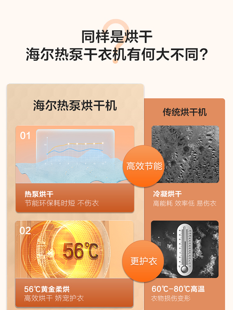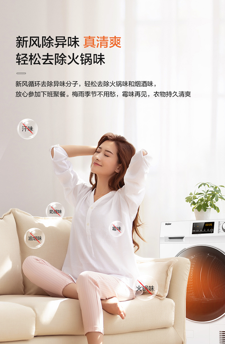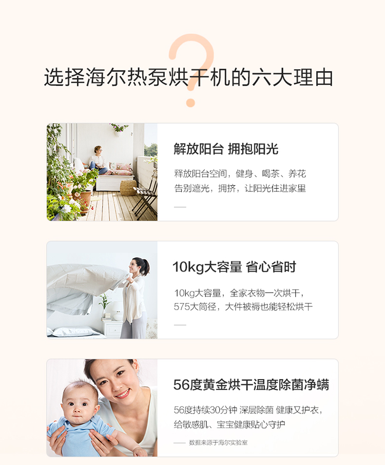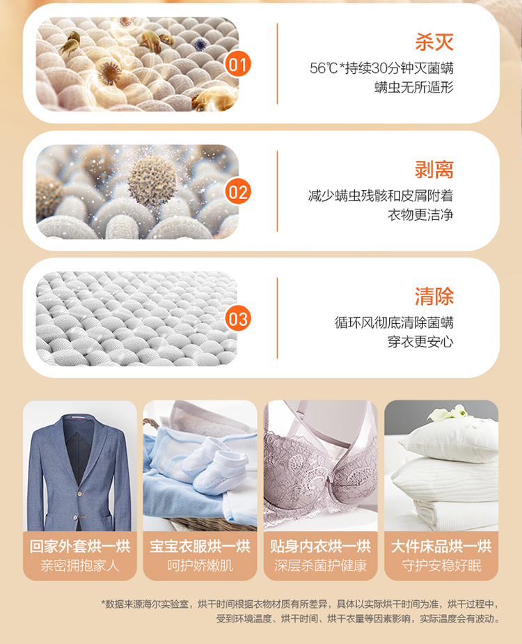 (特)海尔(Haier)10公斤热泵类烘干机家用99.99%除菌除潮祛除宠物毛发衣物干衣机烘衣机全自动滚筒 129W