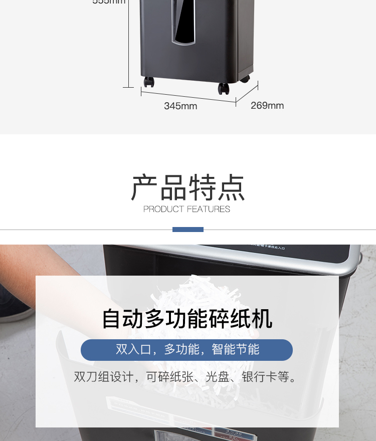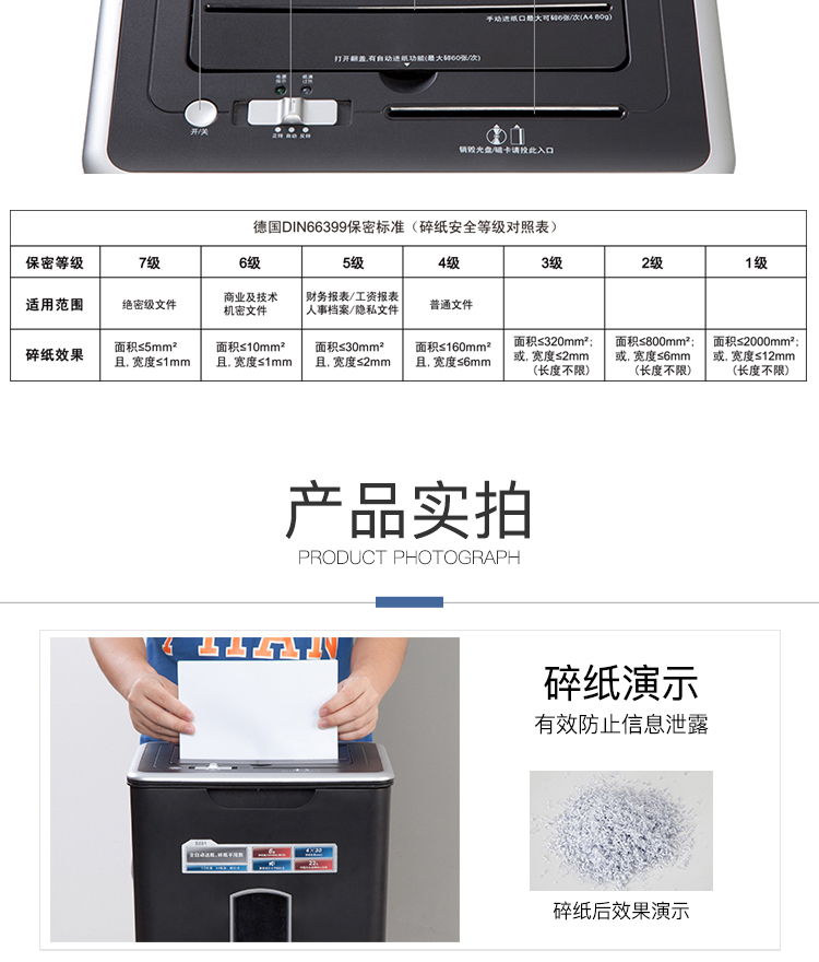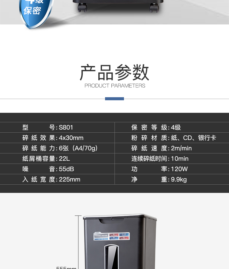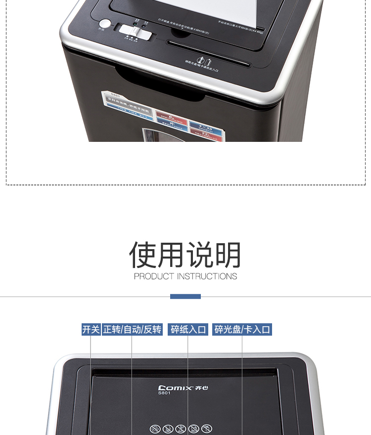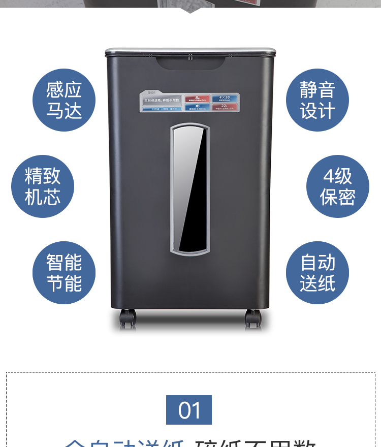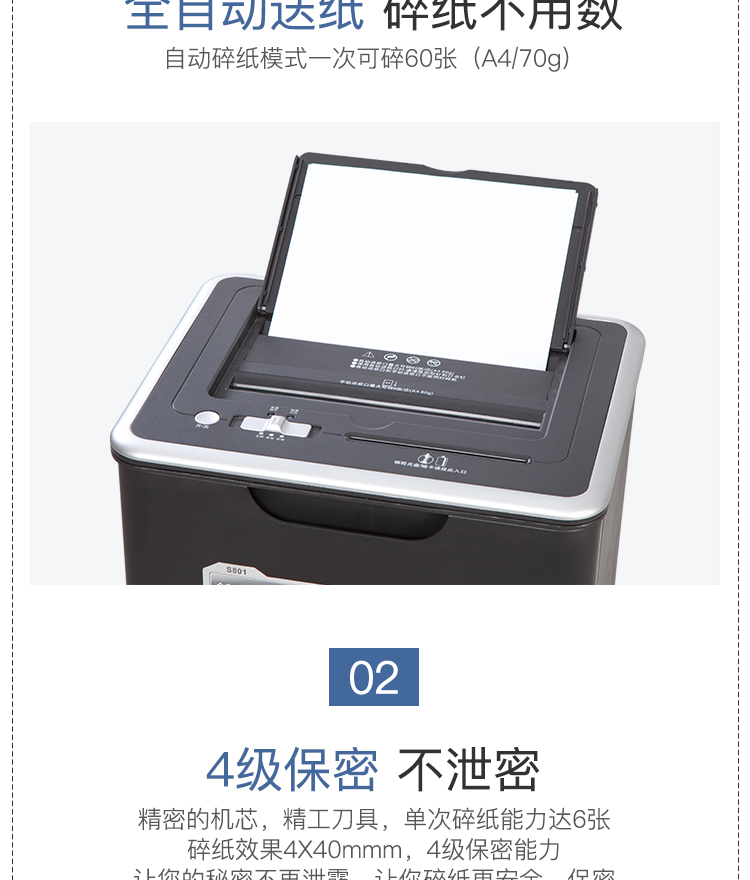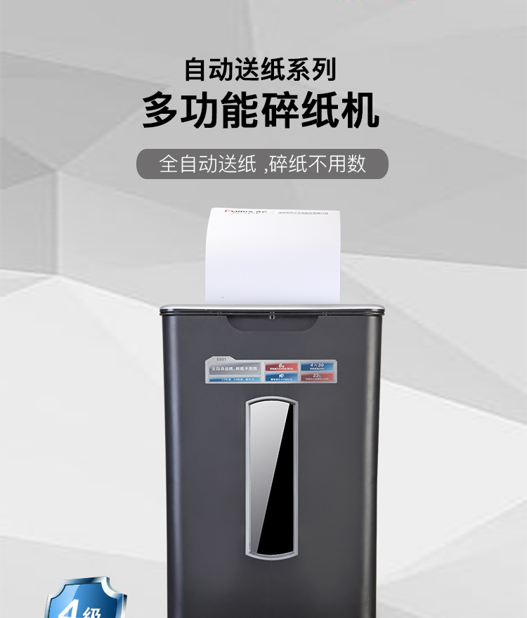 齐心 S801 全自动进纸碎纸机 4×30mm/6张纸/60张自动送纸/22L/三入口/续航10分钟