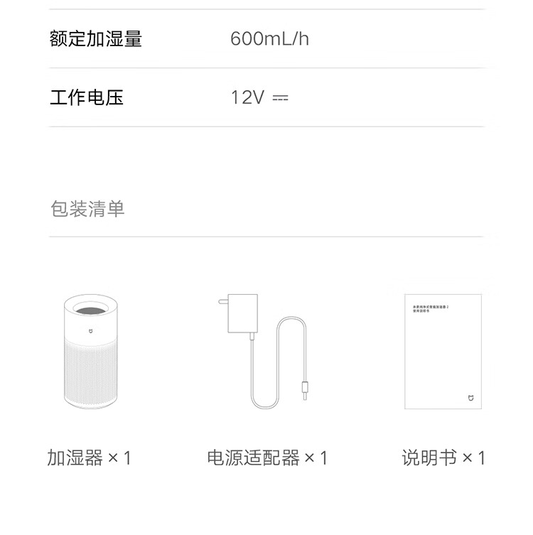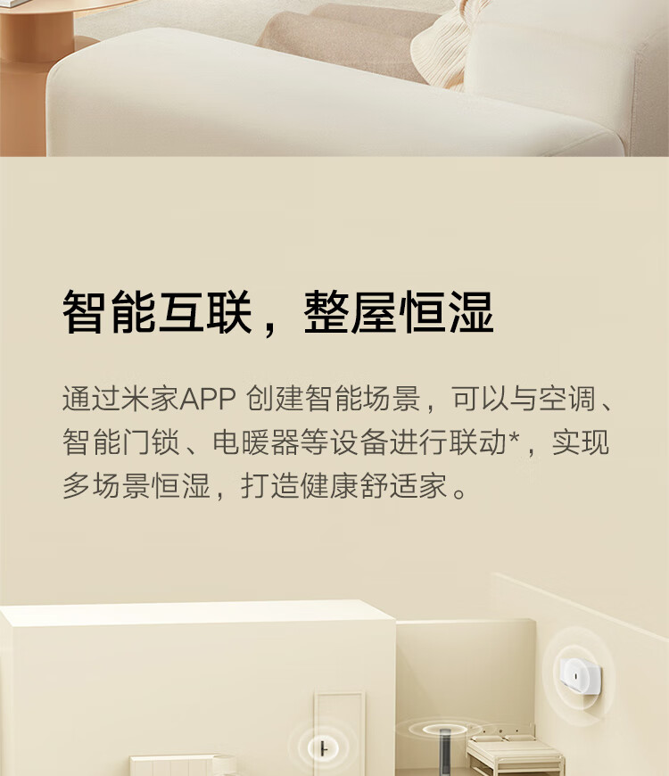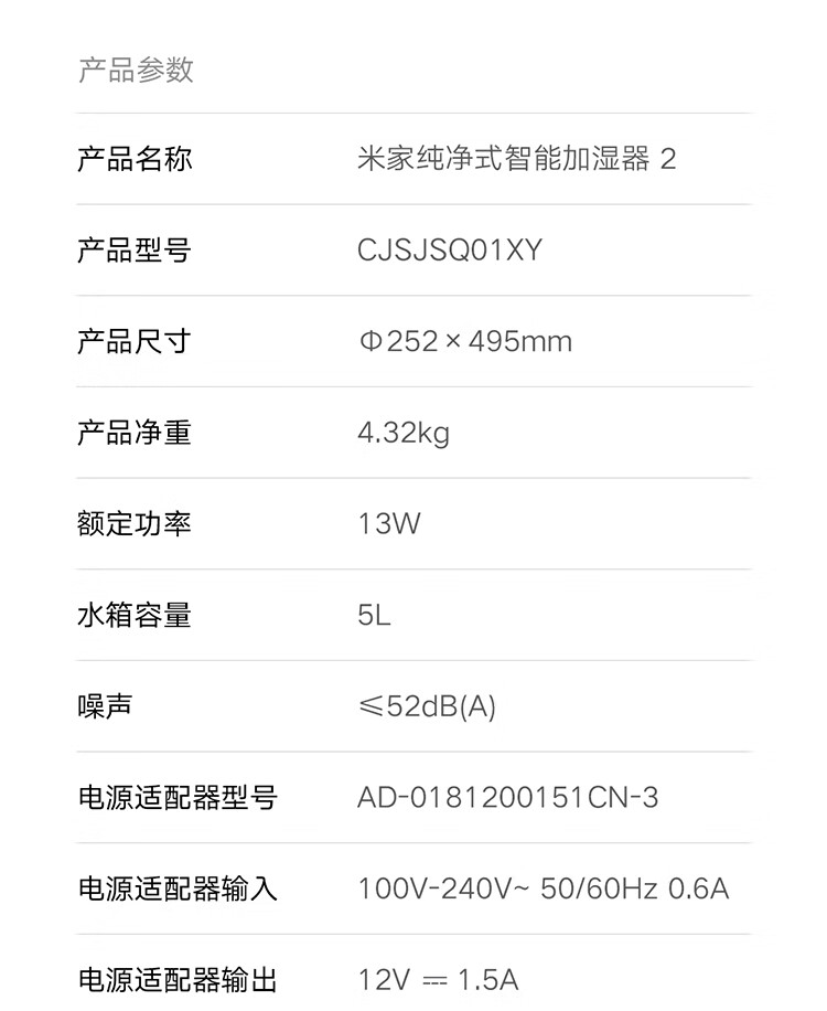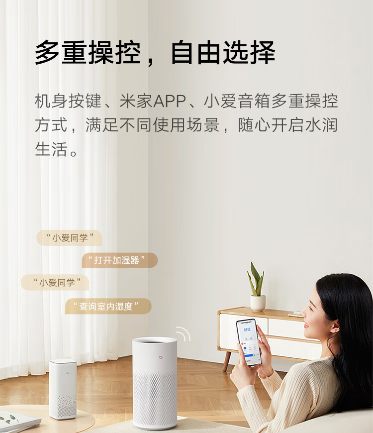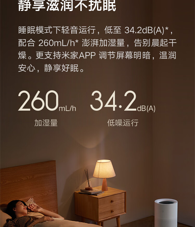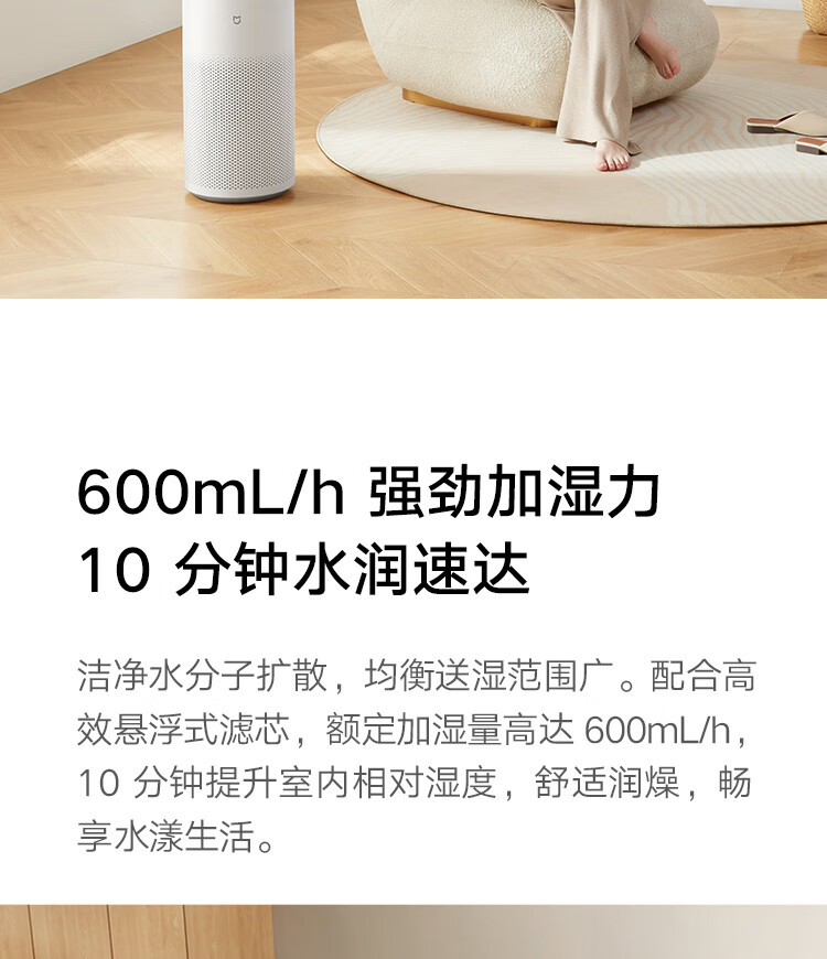 (特)米家 小米纯净式智能加湿器2 无雾加湿器 轻音 卧室家用办公室 自然蒸发 5L大水箱上加水智能数显
