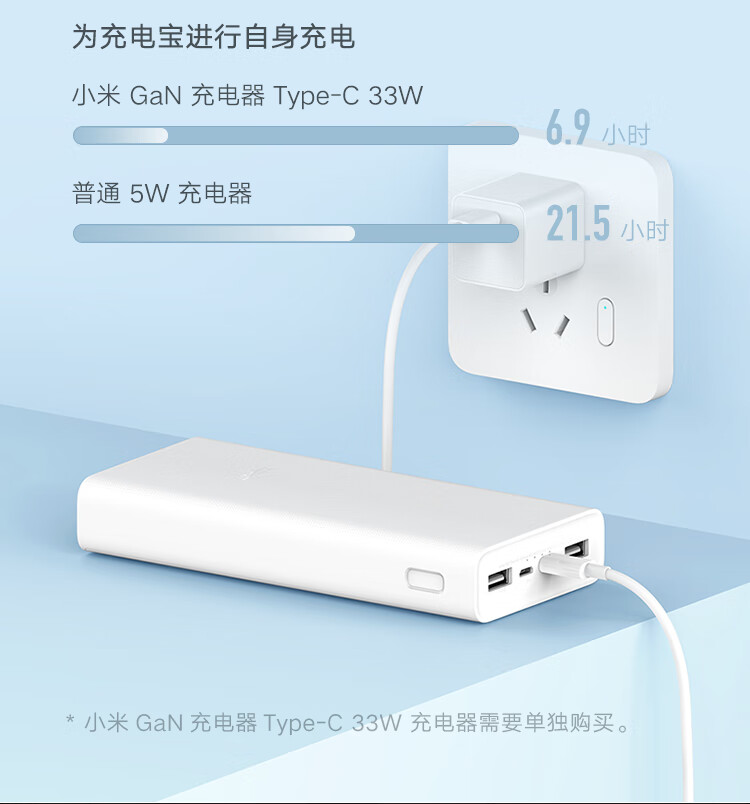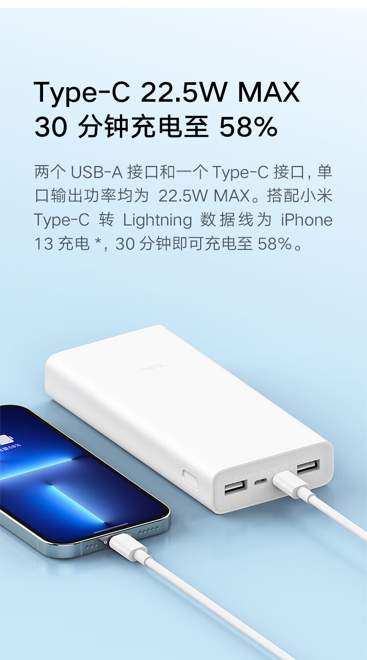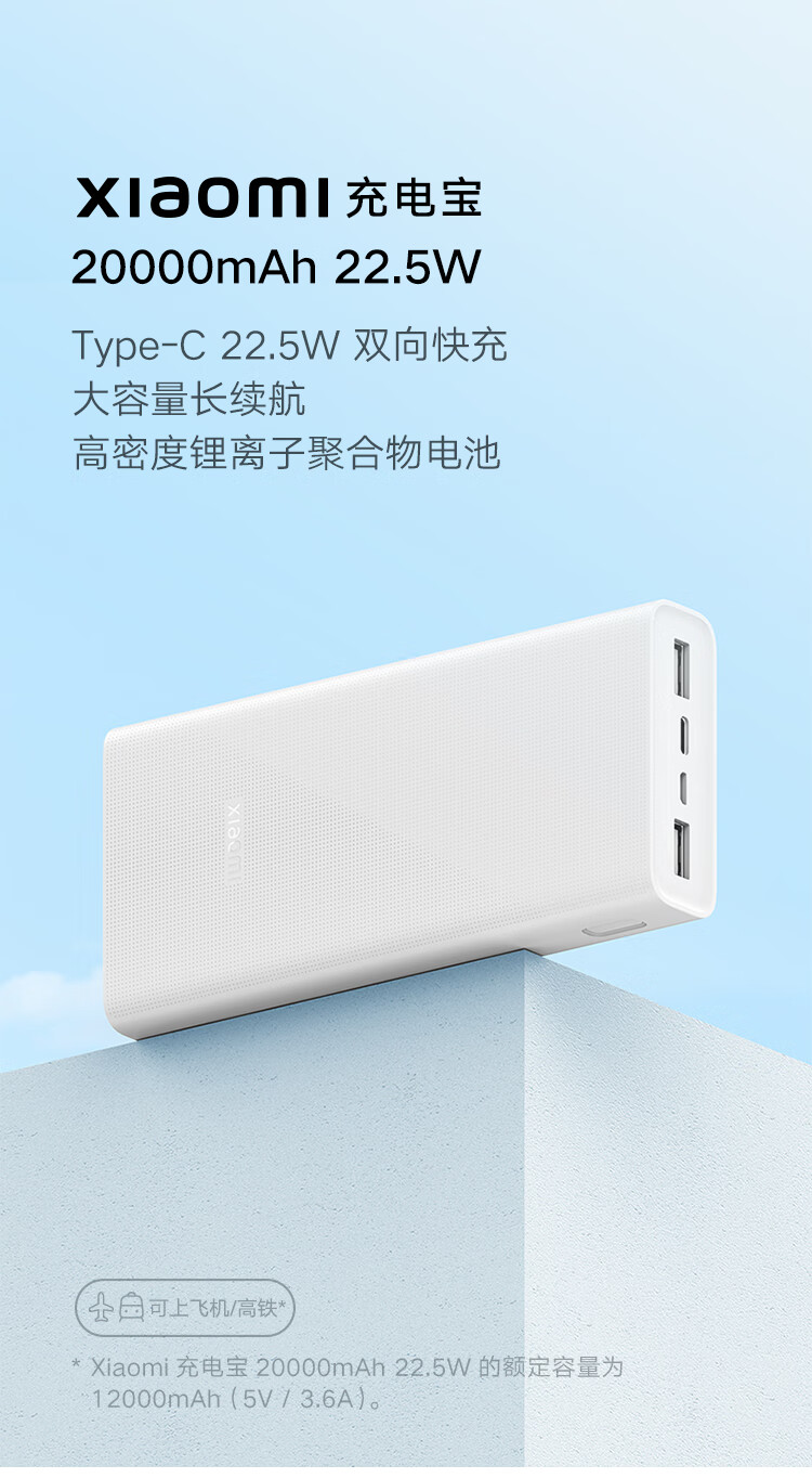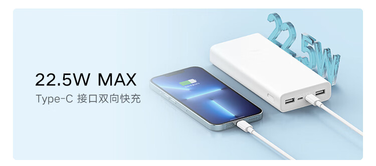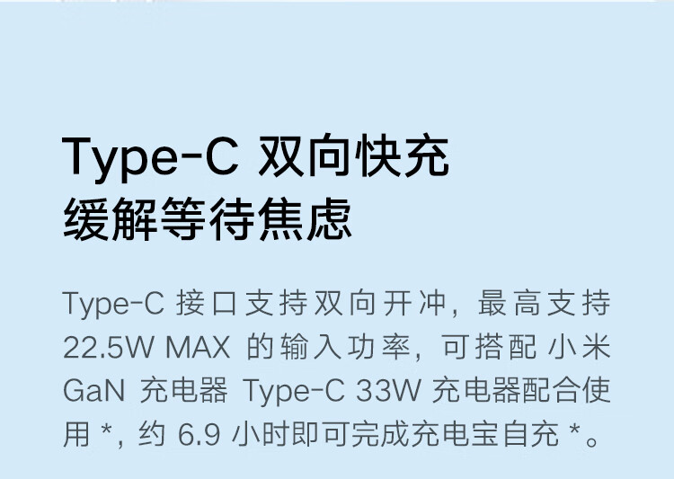 (特)小米(MI)xiaomi充电宝 20000mAh大容量 Type-C 22.5W 双向快充 移动电源