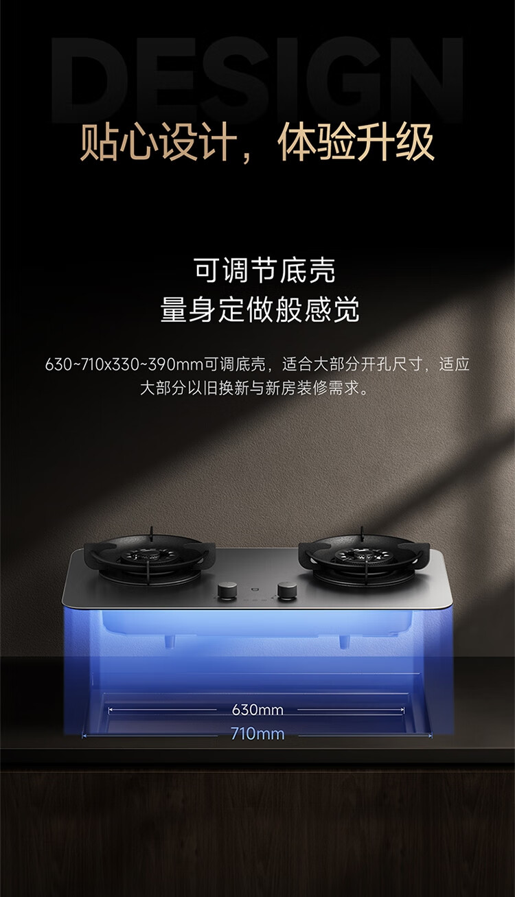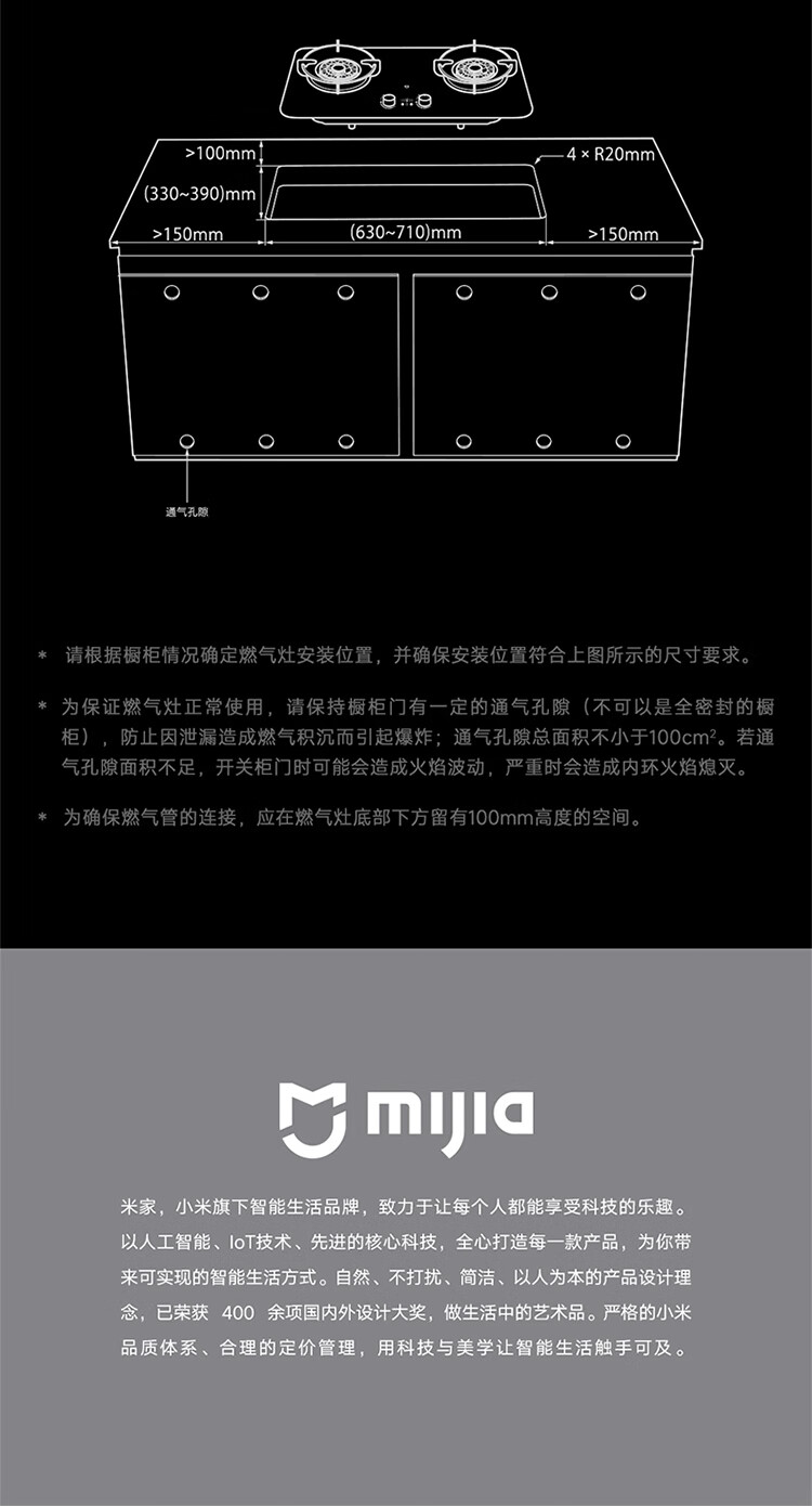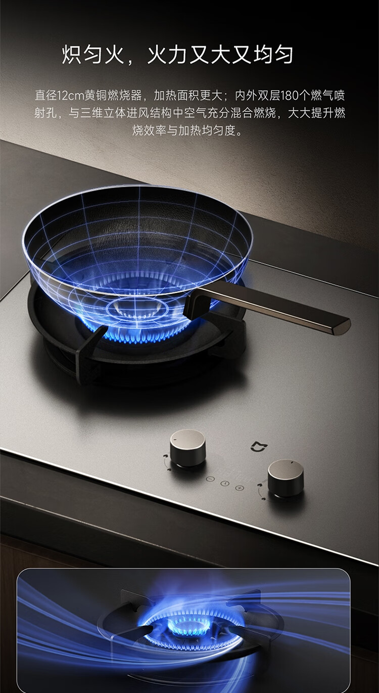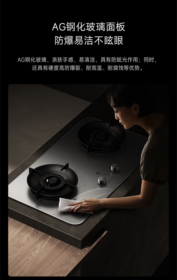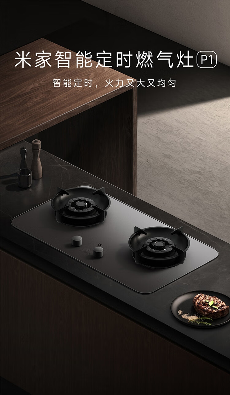 (特)米家智能定时燃气灶P1 AG钢化玻璃面板 可调节底壳 十二道安全防护 米家智能定时