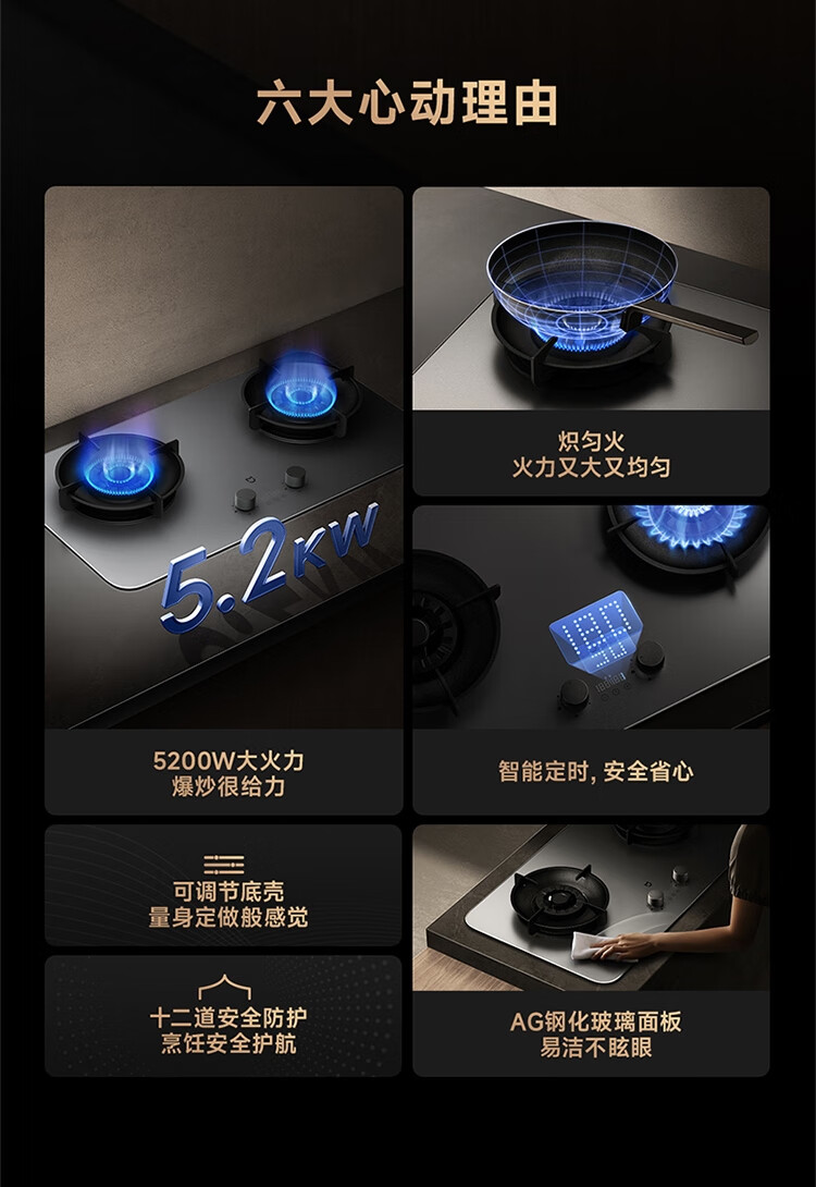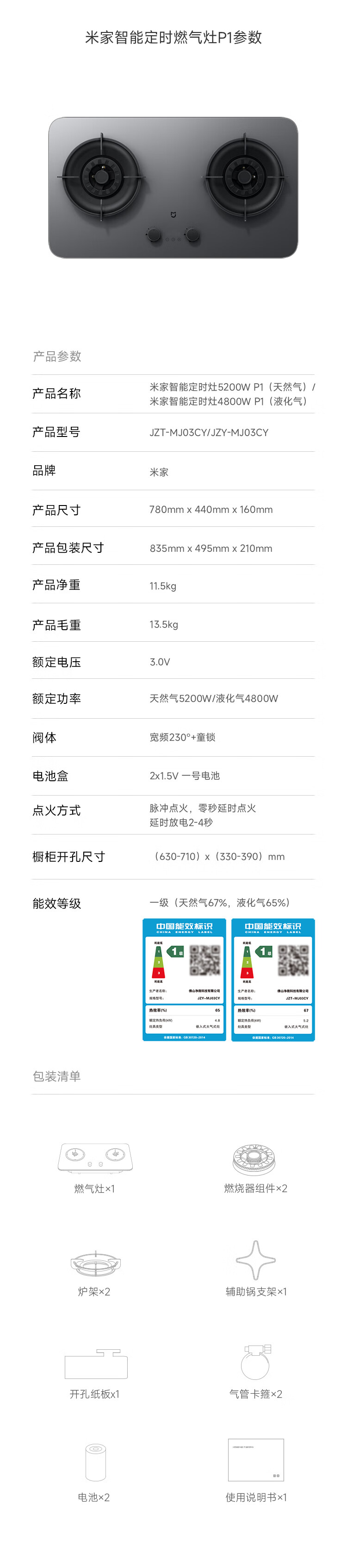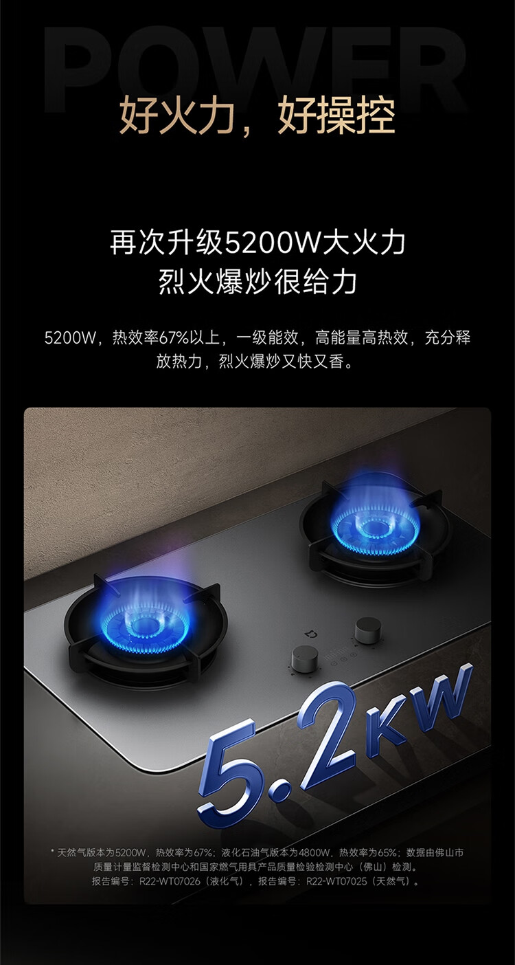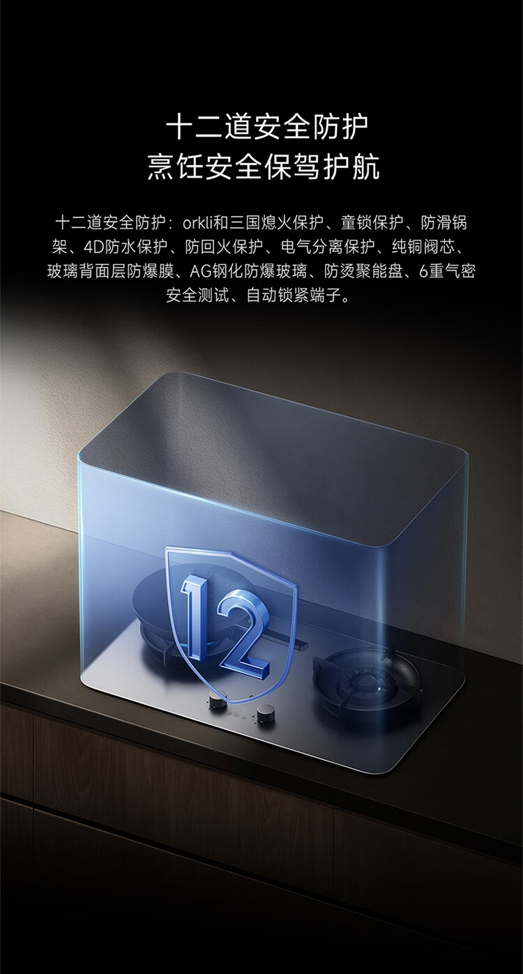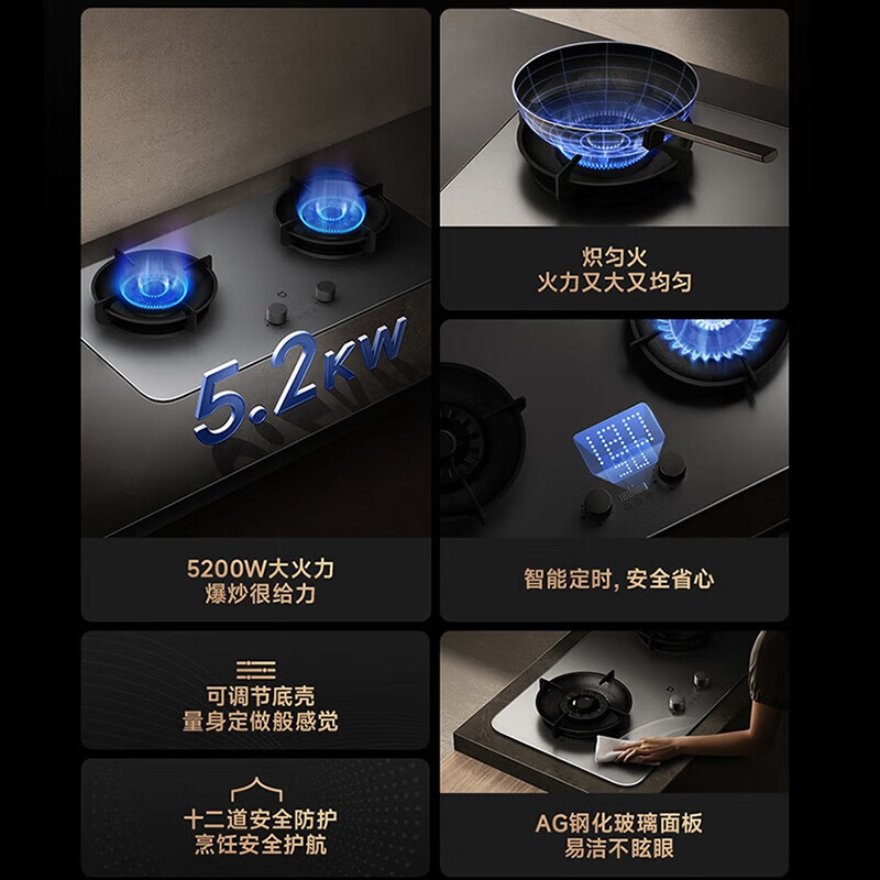 (特)米家智能定时燃气灶P1 AG钢化玻璃面板 可调节底壳 十二道安全防护 米家智能定时