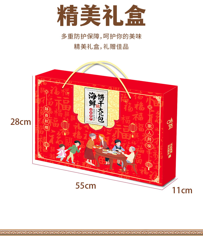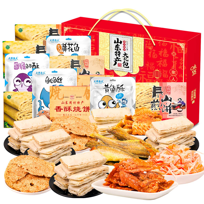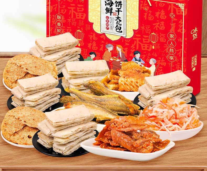 (特)山东青岛济南特产1235克11味 海鲜饼干手信年货春节元旦零食大礼包小吃礼盒