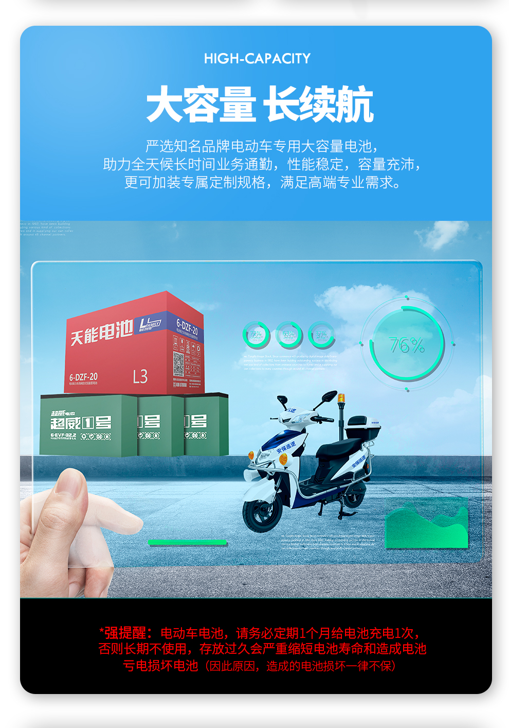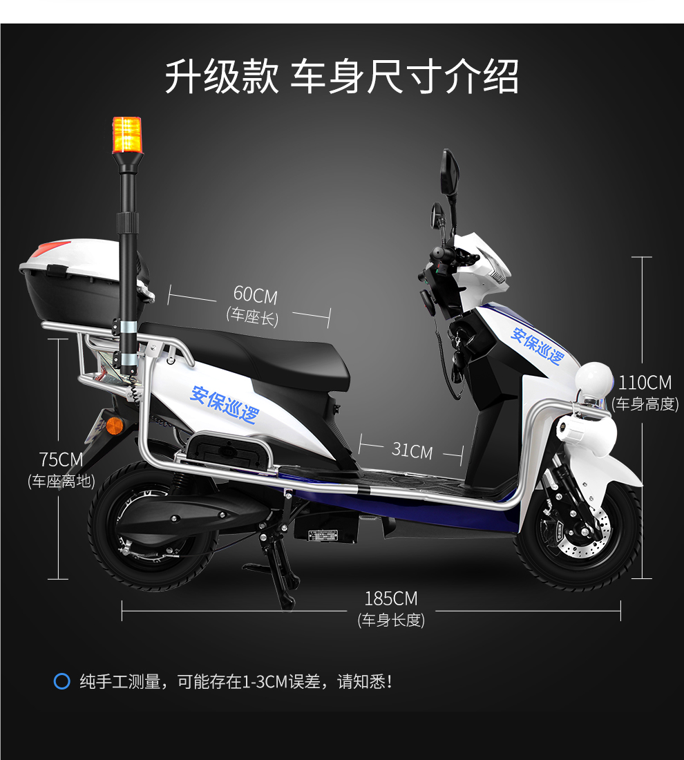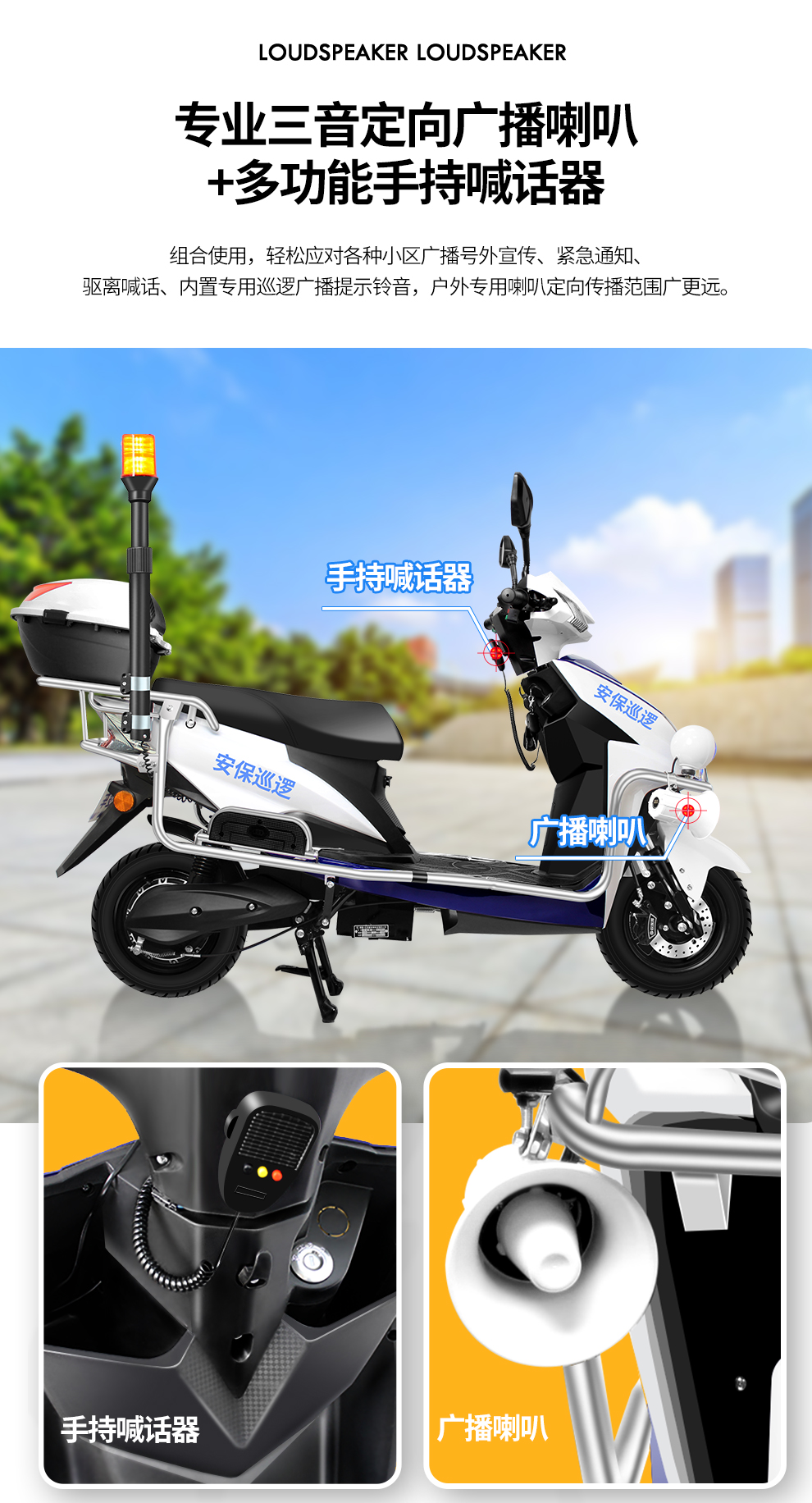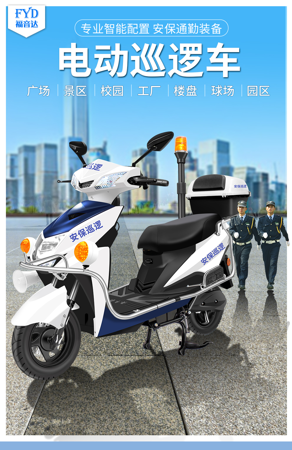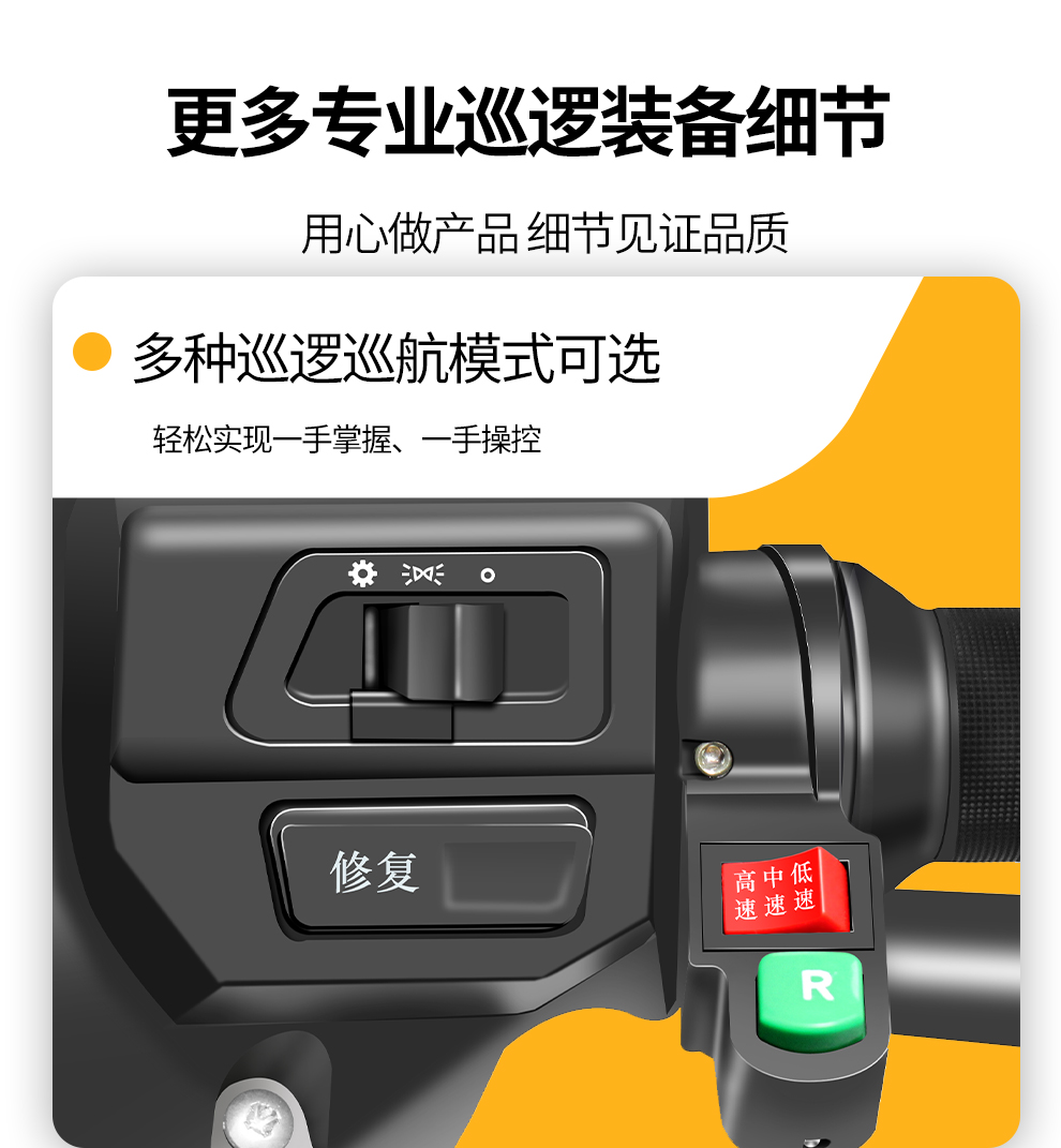 (特)福音达巡逻摩托车两轮电瓶车物管安保电动摩托车巡查秩序维护道路协管交通警保联控定制车 黑金电池72V35AH