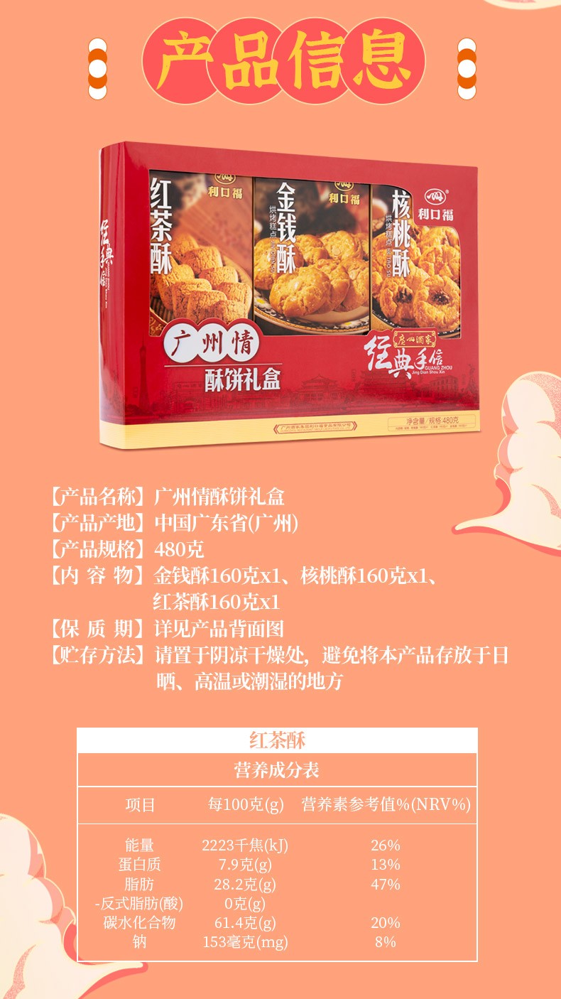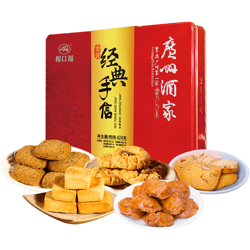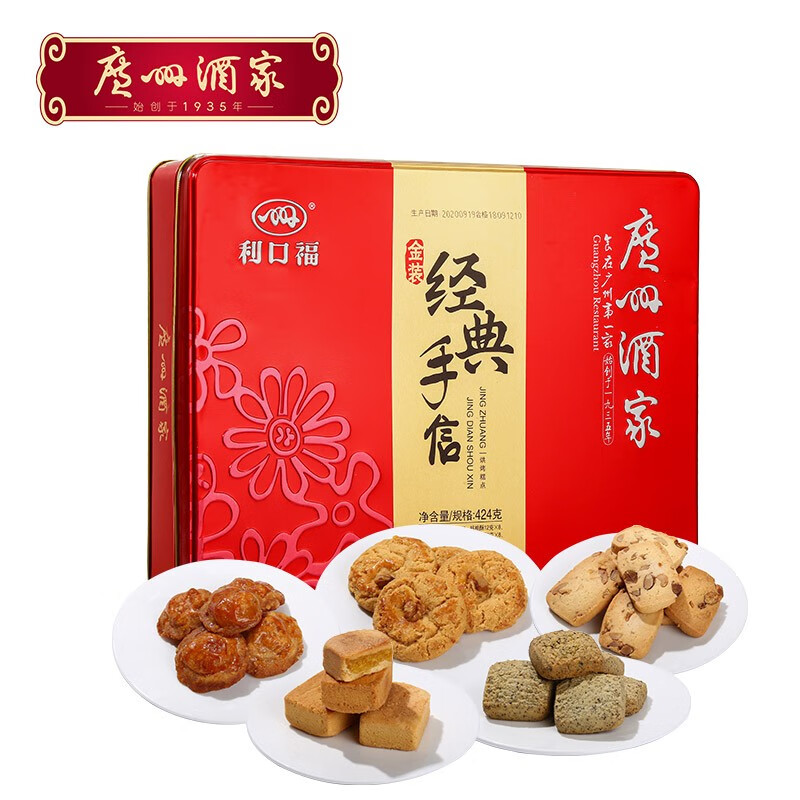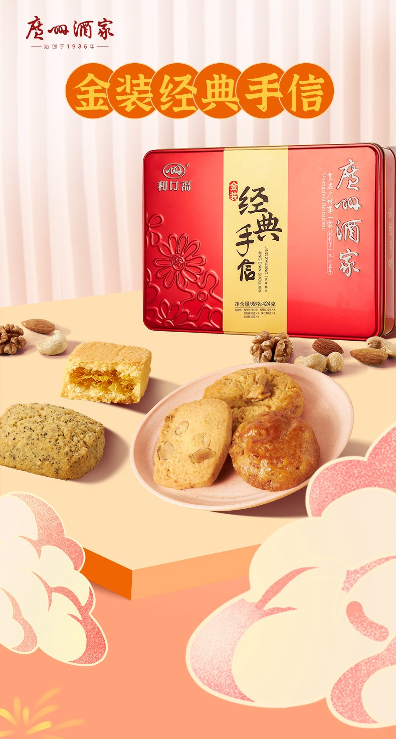 广州酒家利口福 中华老字号 饼干礼盒节日礼盒福利团购送礼手信礼盒 金装经典手信礼盒424g
