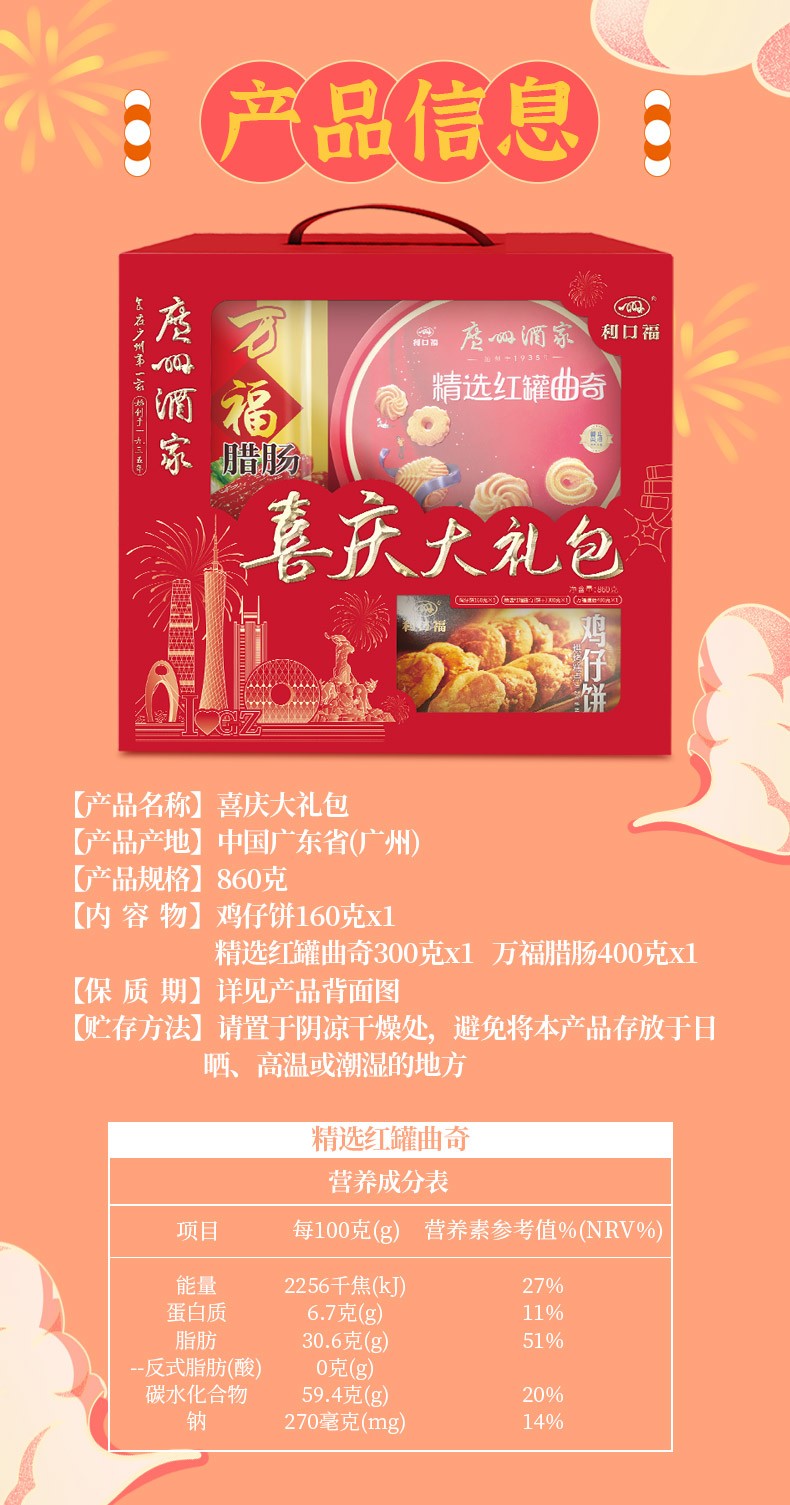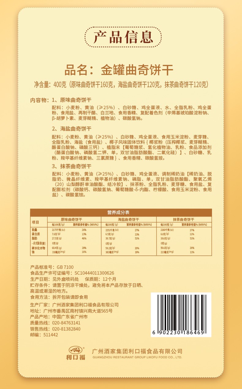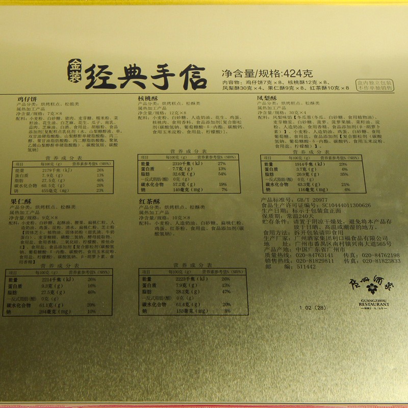 广州酒家利口福 中华老字号 饼干礼盒节日礼盒福利团购送礼手信礼盒 金装经典手信礼盒424g