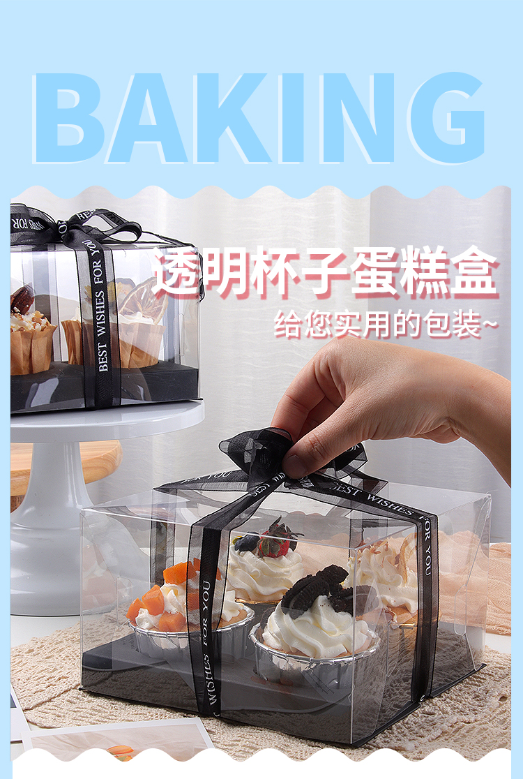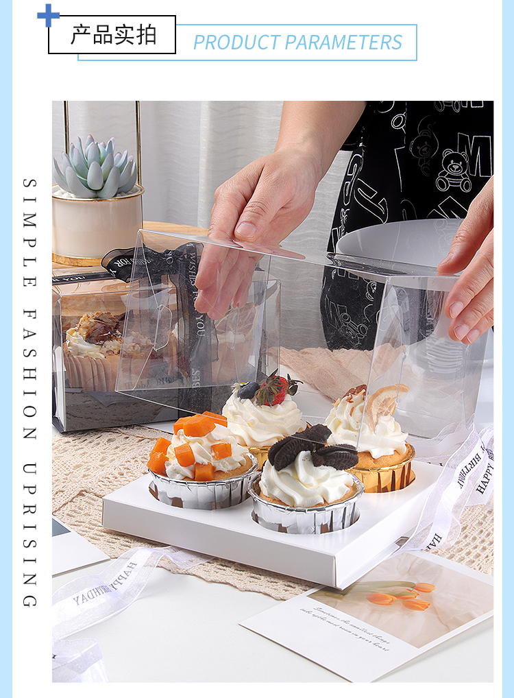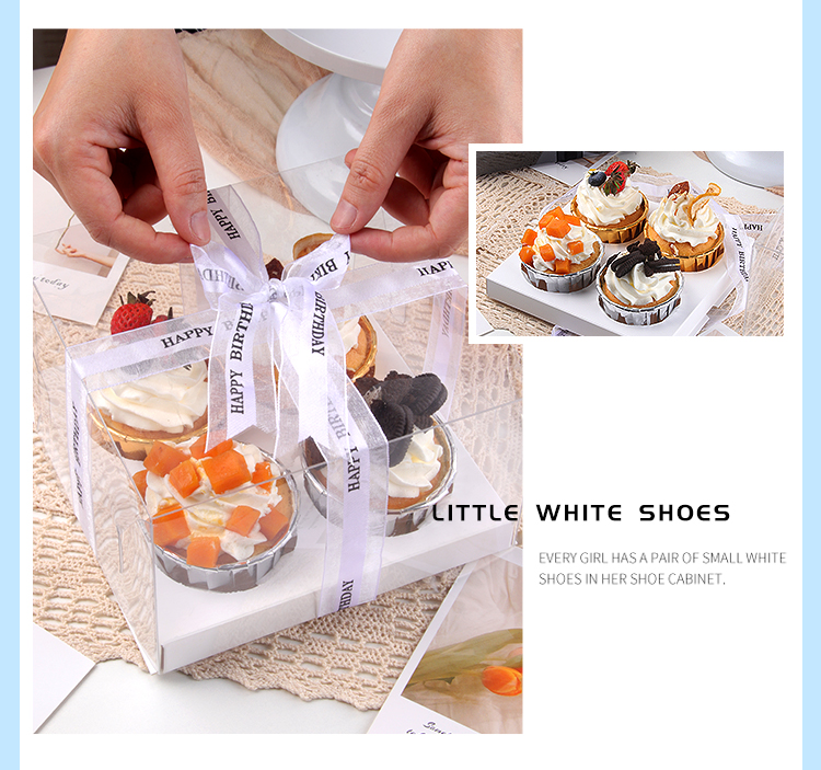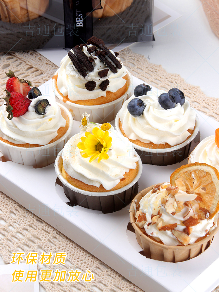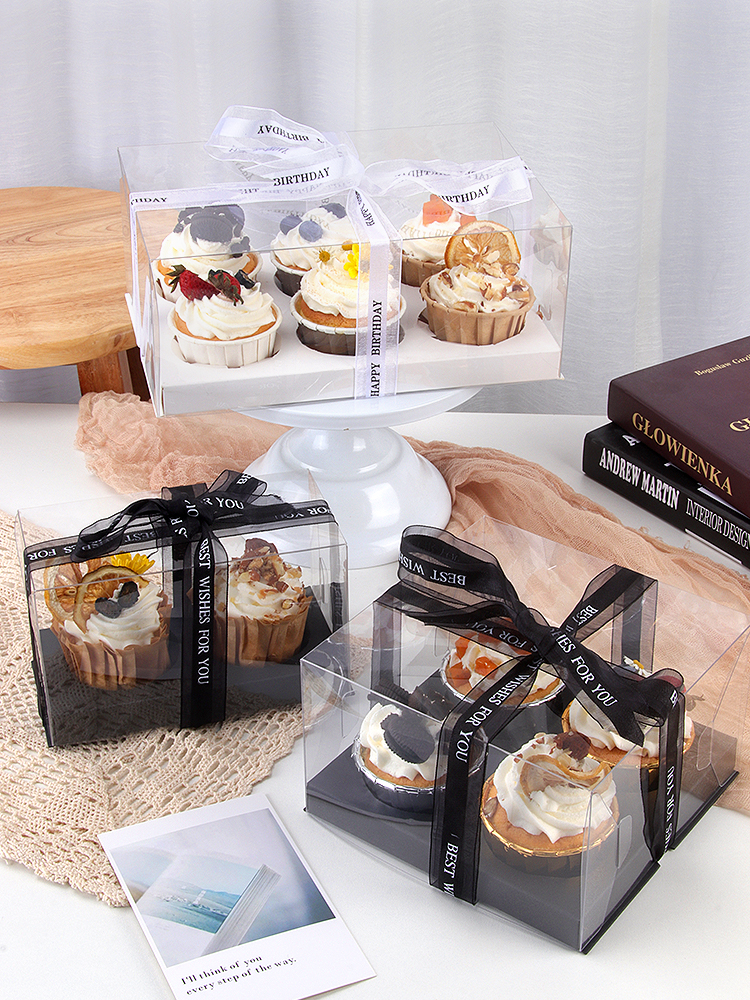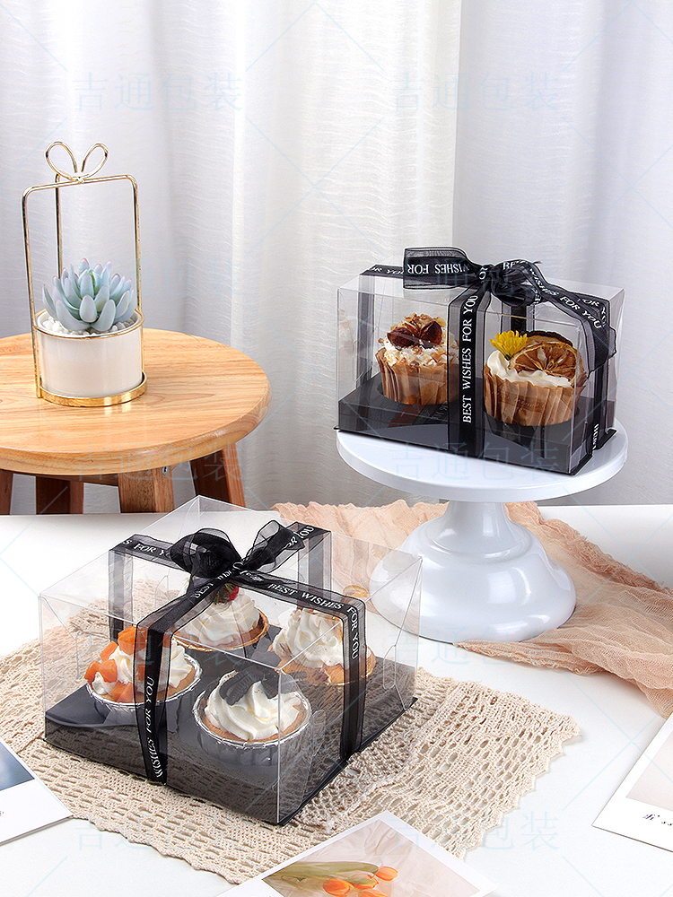 (特)透明小纸杯子蛋糕盒4粒装马芬木糠杯包装烘焙甜品节日打包盒