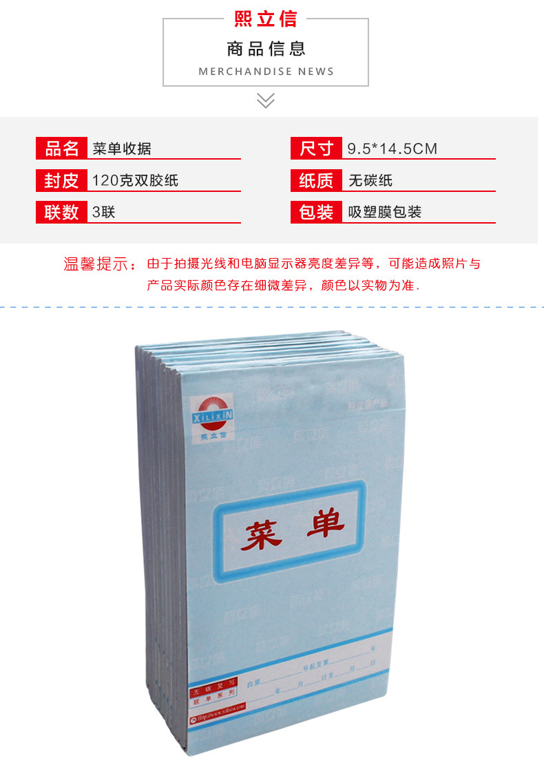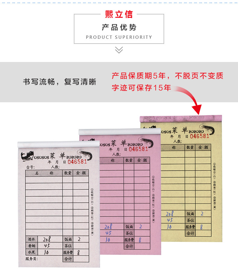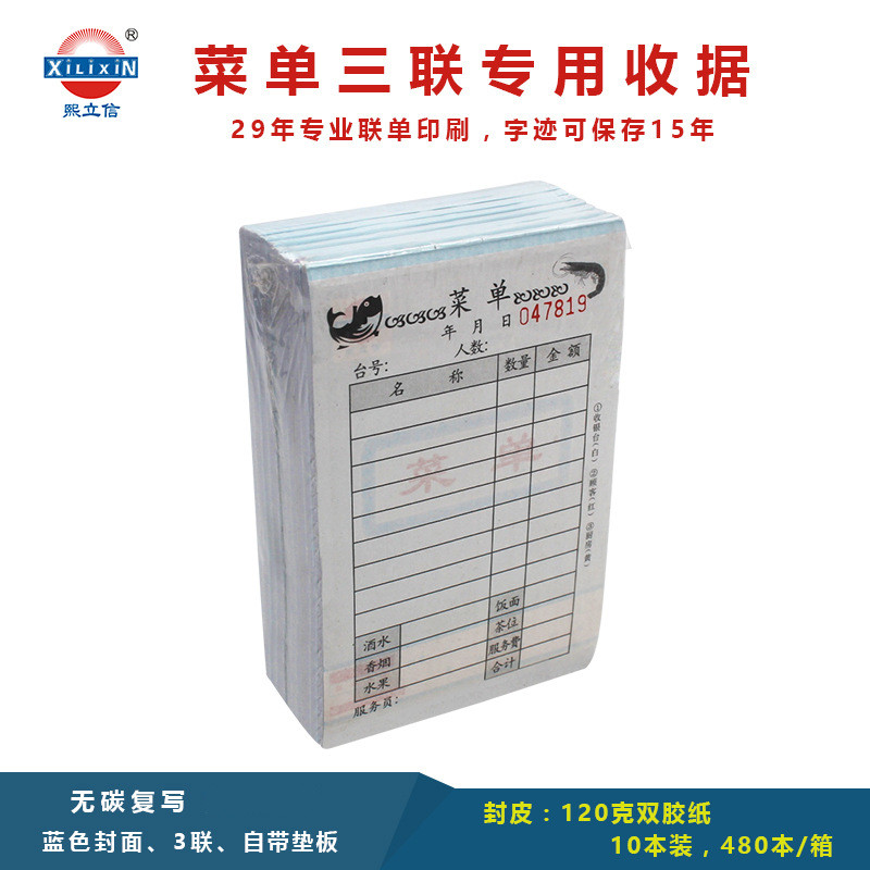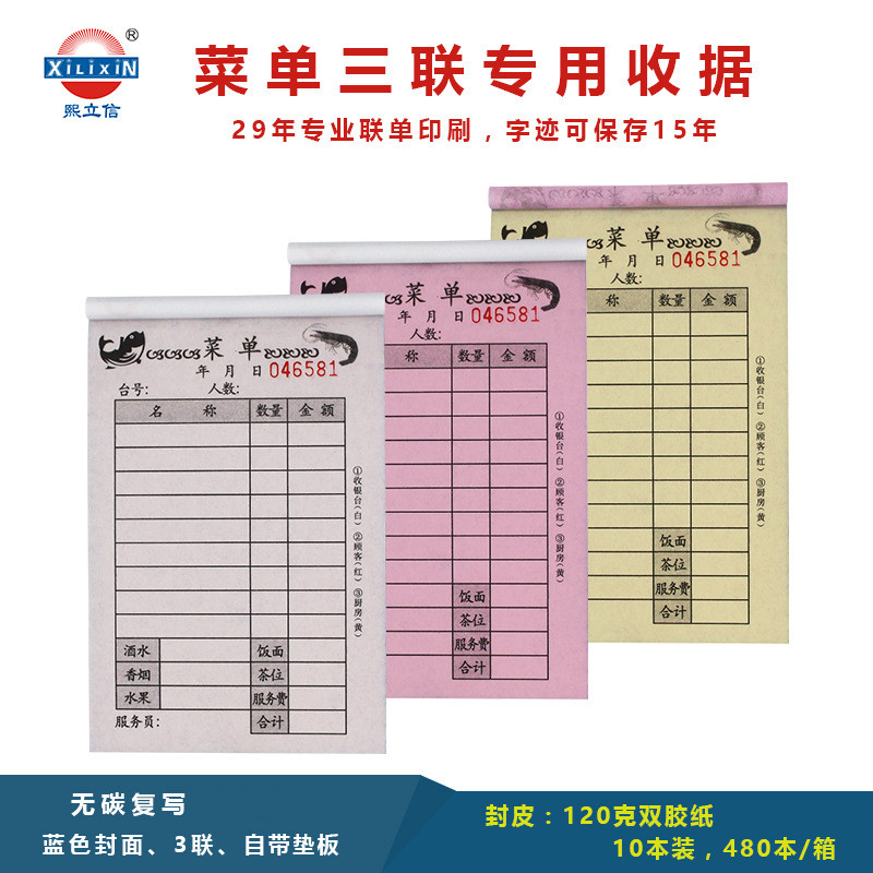 熙立信 点菜单三联56K20份无碳复写纸三联点菜单