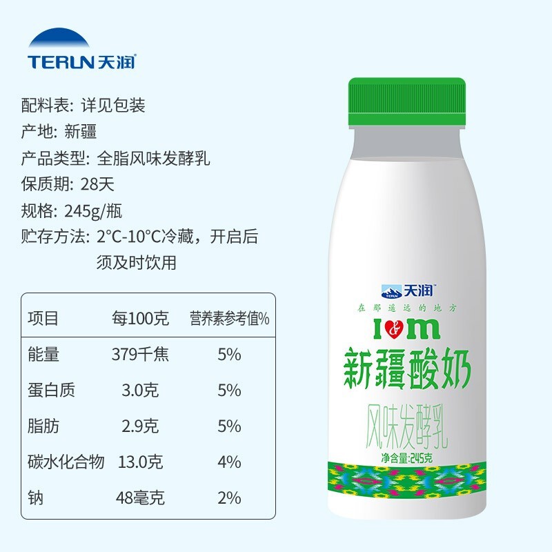 天润(TERUN)新疆酸奶 风味发酵乳酸奶酸牛奶生鲜245g*8瓶