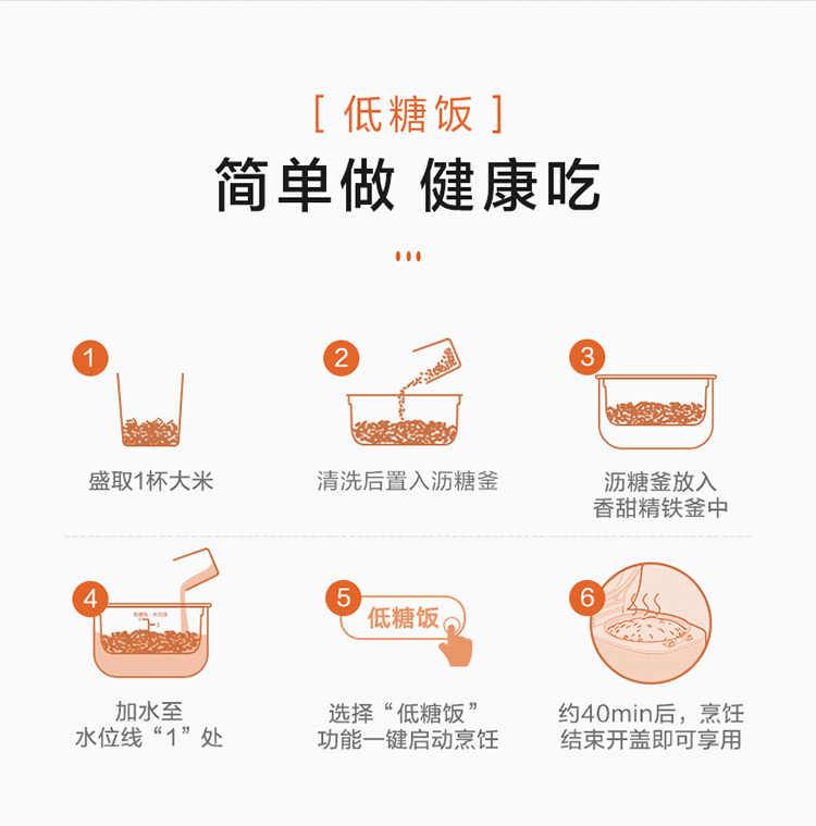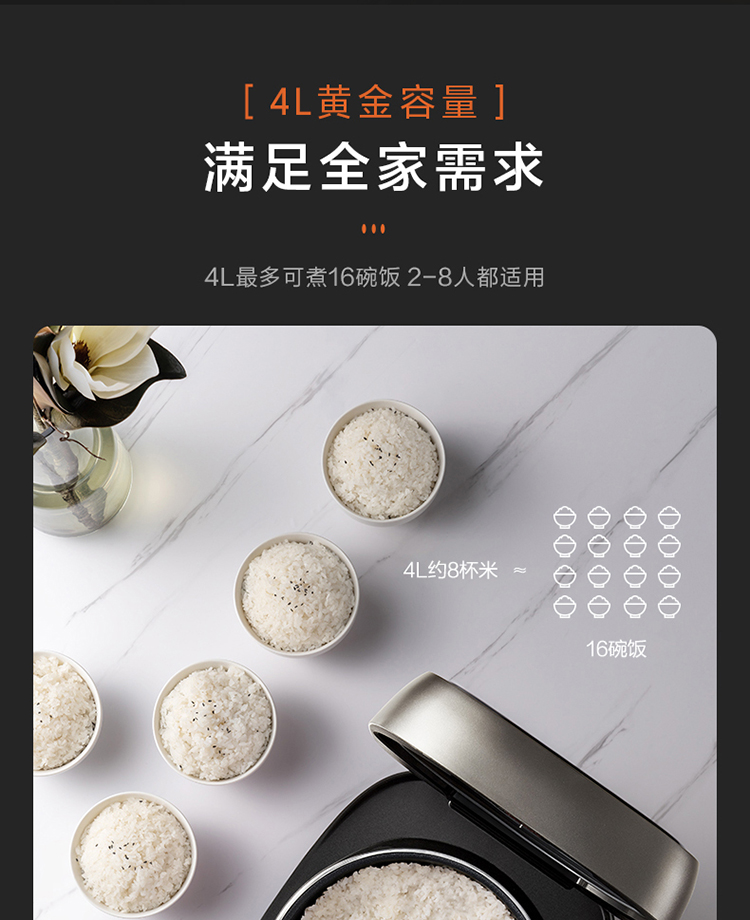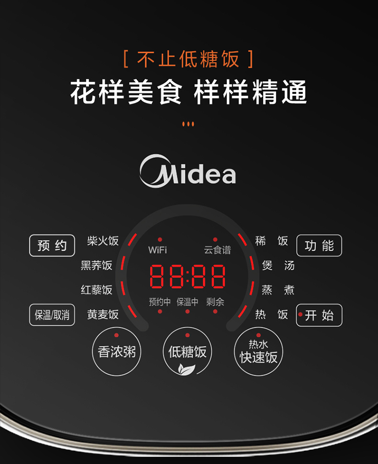 (特)美的(Midea)低糖低卡系列 IH智能电饭煲电饭锅家用4L降还原糖WIFI智控健康养生蒸米饭锅40LS60(3-8人)