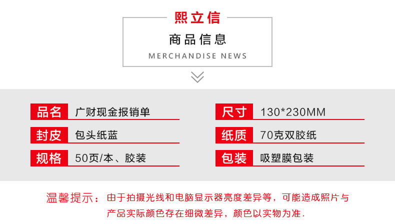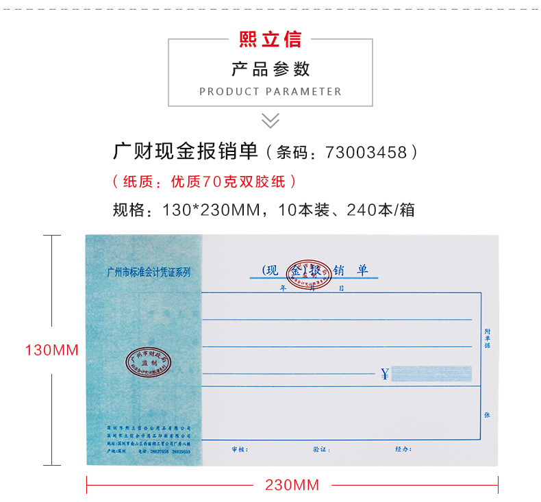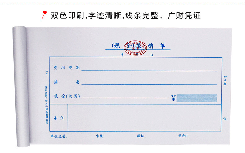 熙立信 财务会计用品 费用报销单据凭证 广财现金报销单