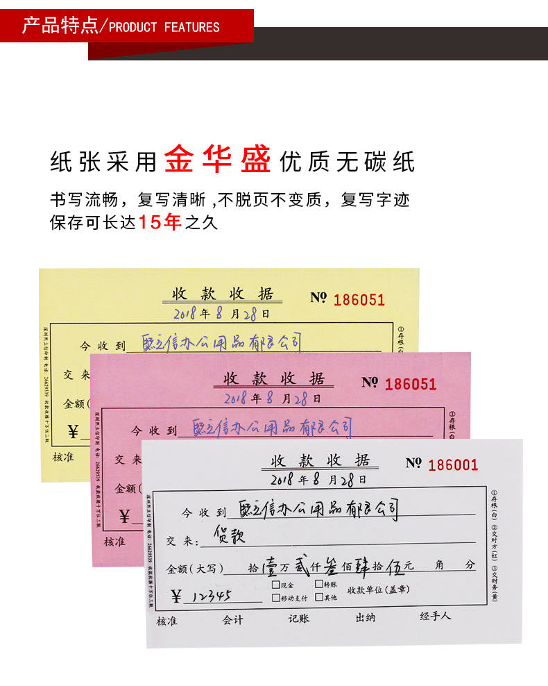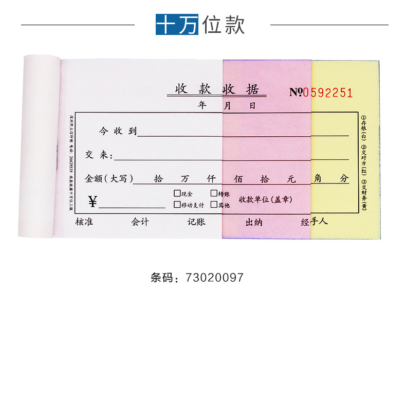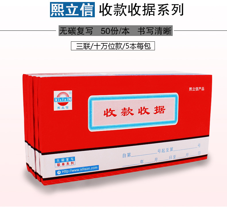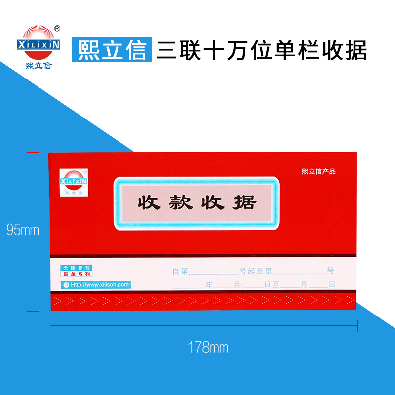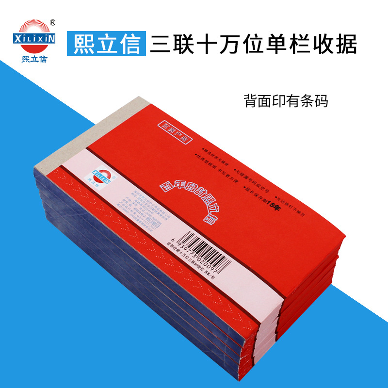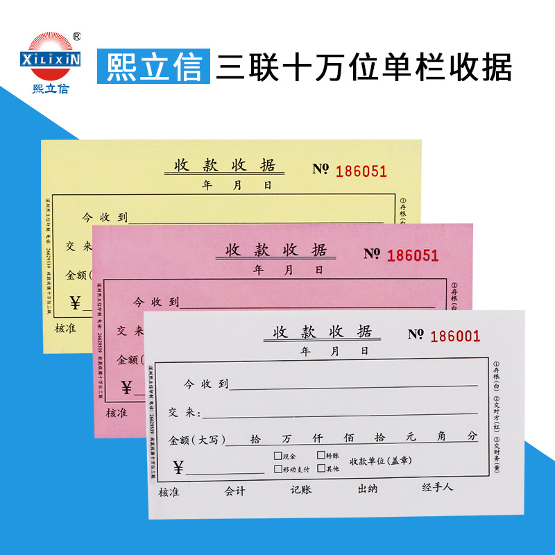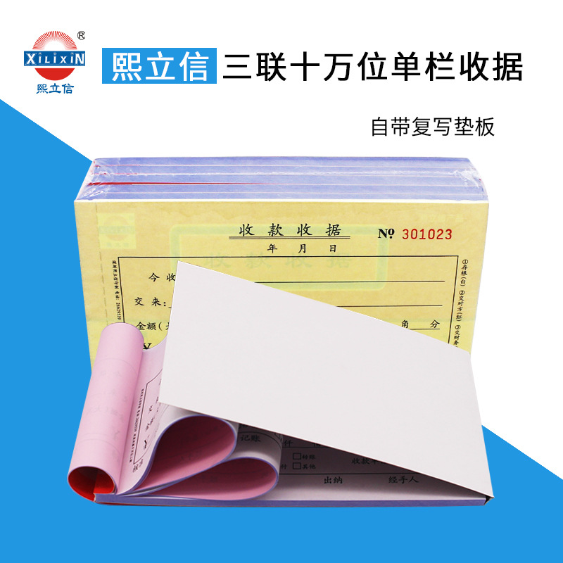 熙立信 收款收据三联单栏无碳复写联单财务收款收据单栏十万位三联