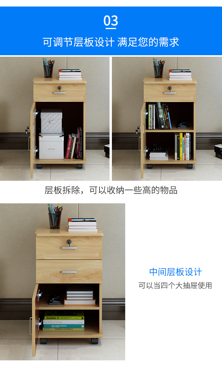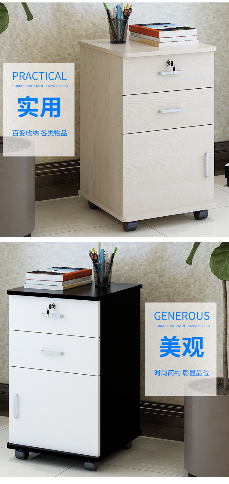 (特)办公文件柜木质带锁矮柜资料柜落地式档案移动小柜子储物柜档案柜