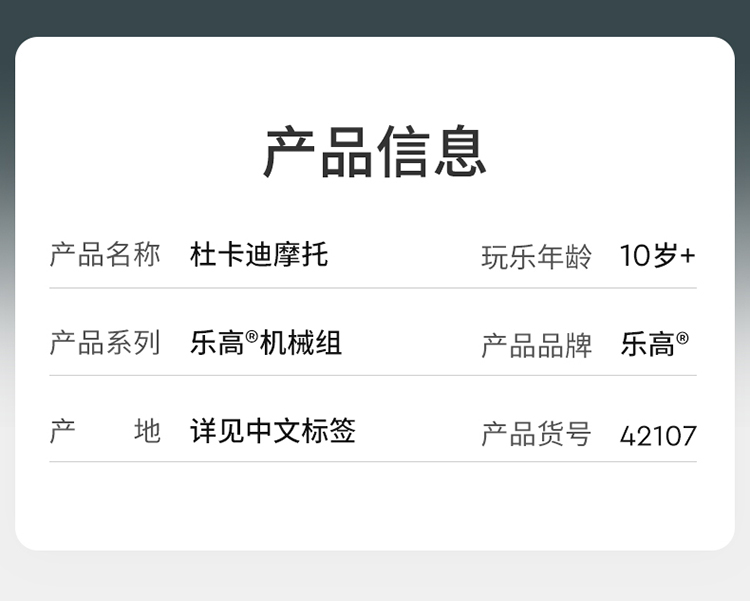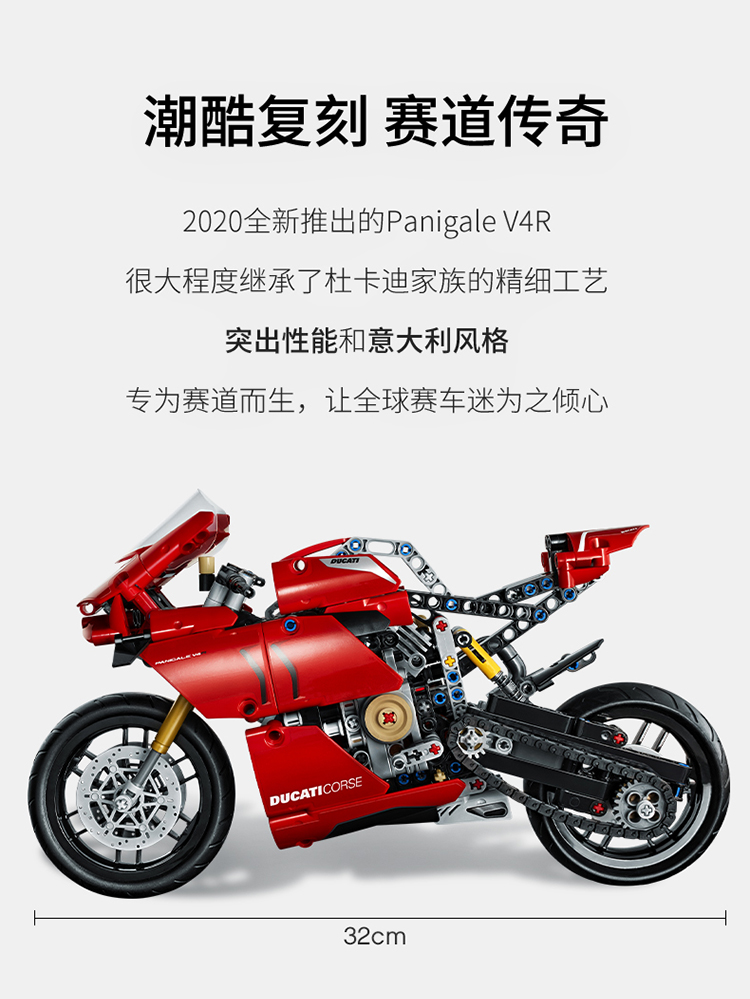 (特)乐高(LEGO)积木 机械组 42107 杜卡迪V4R摩托车 10岁+男孩玩具新年礼物