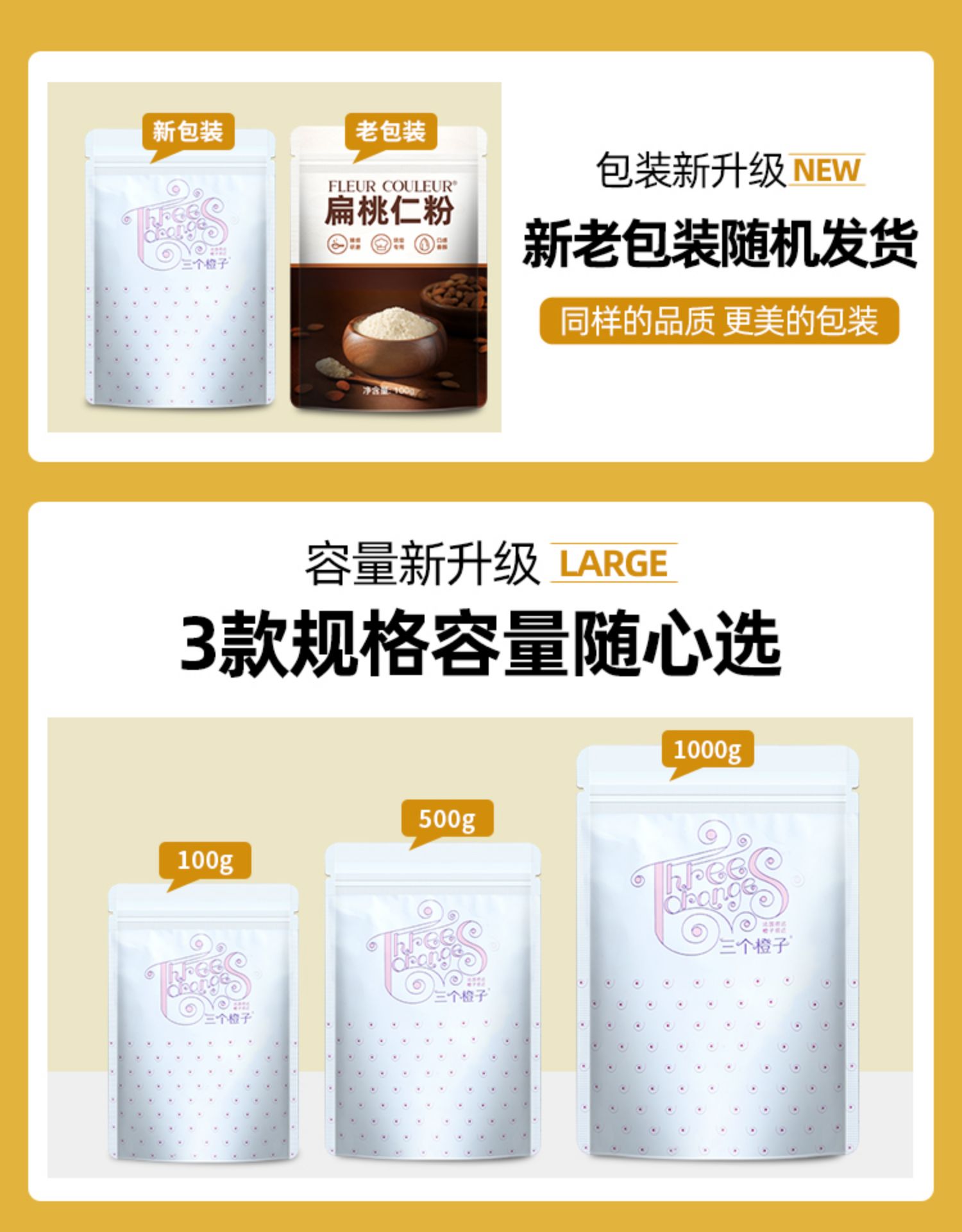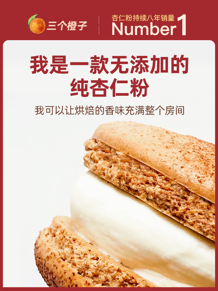 (特)杏仁粉烘焙专用纯马卡龙材料三个橙子美国进口金山蓝钻生扁桃仁粉