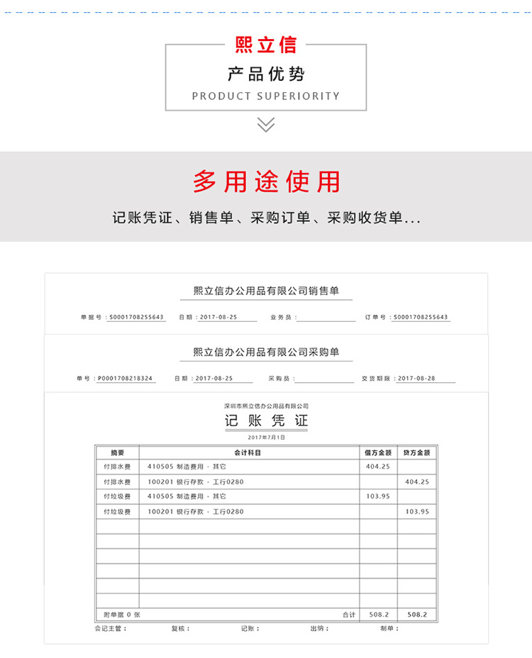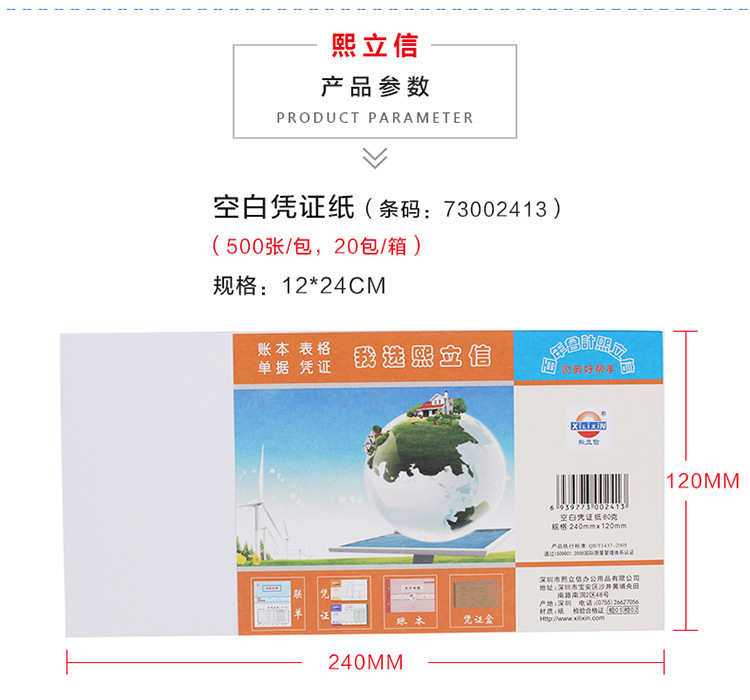 熙立信 空白凭证纸240*120财务记账凭证空白电脑打印纸80g