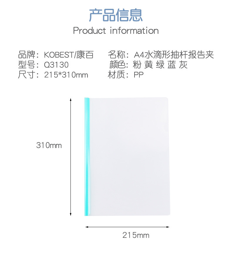 康百10个装拉杆夹A4学生用透明书夹子试卷夹抽杆资料整理