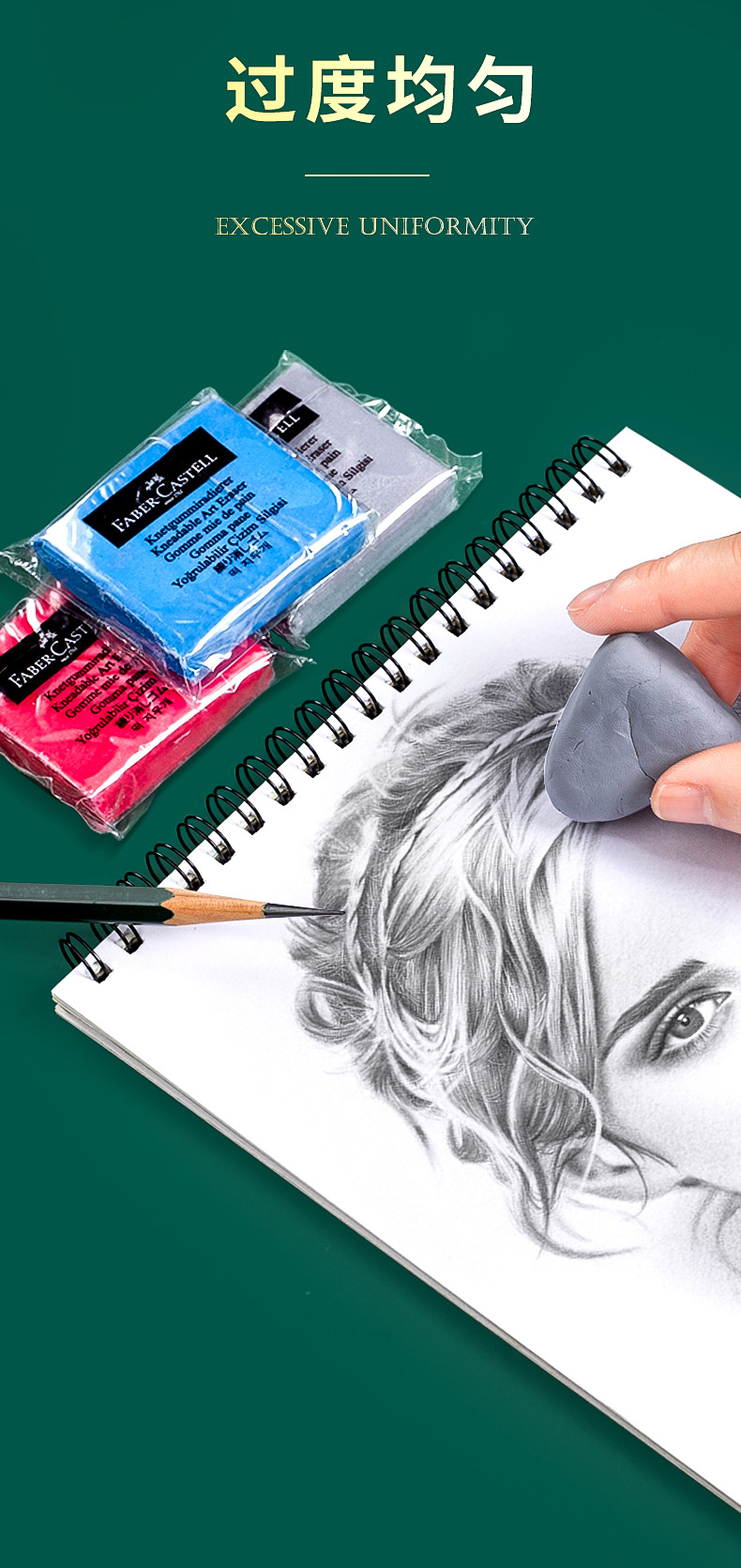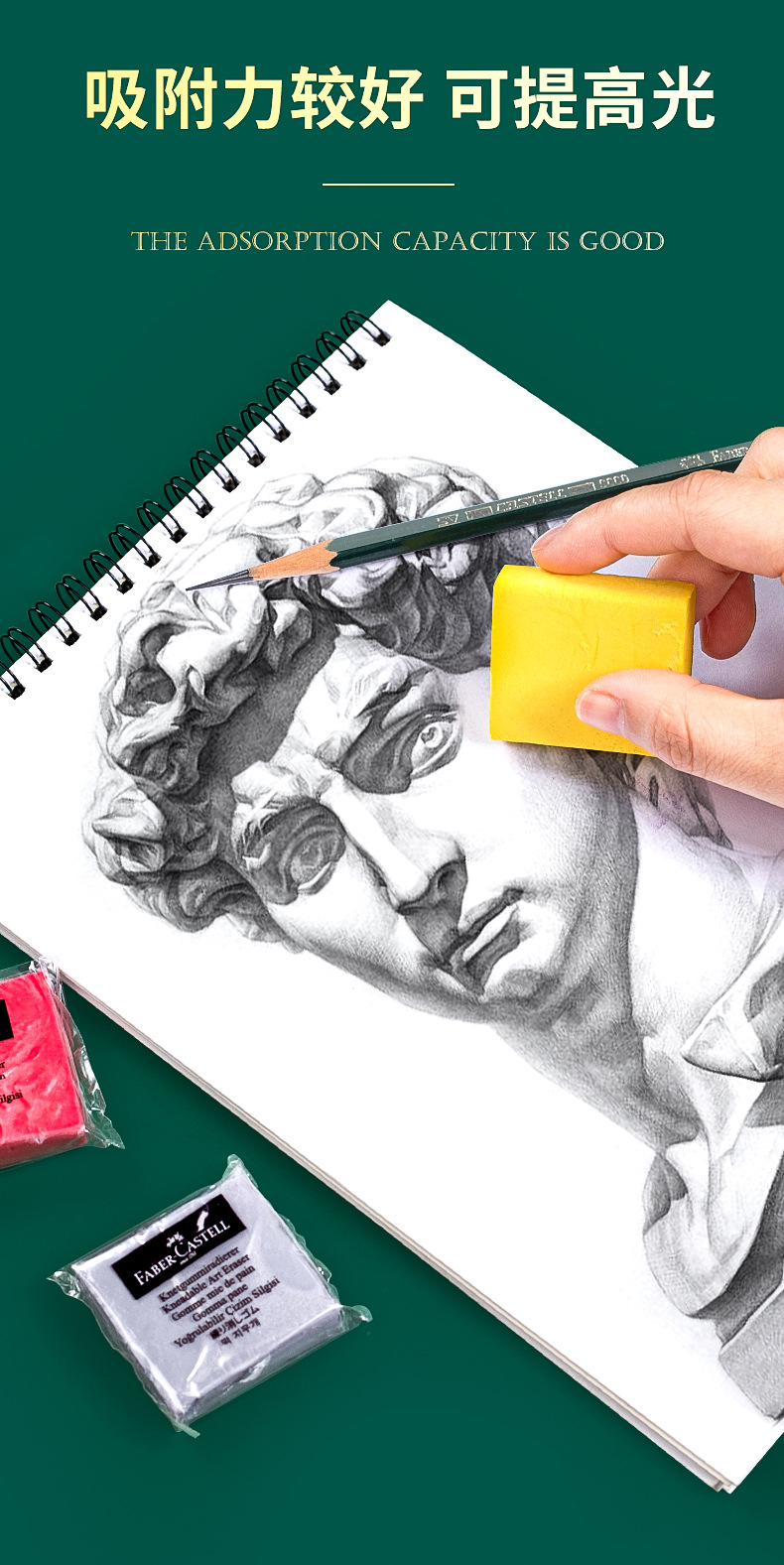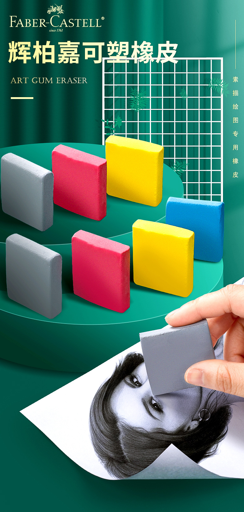 德国辉柏嘉可塑橡皮 儿童绘画专用橡皮泥文具美术生素描高光橡皮60块一组