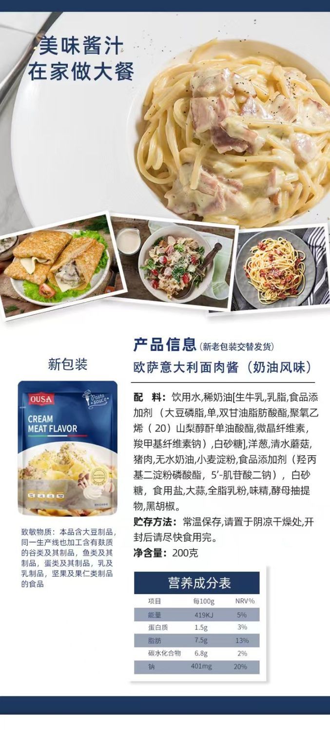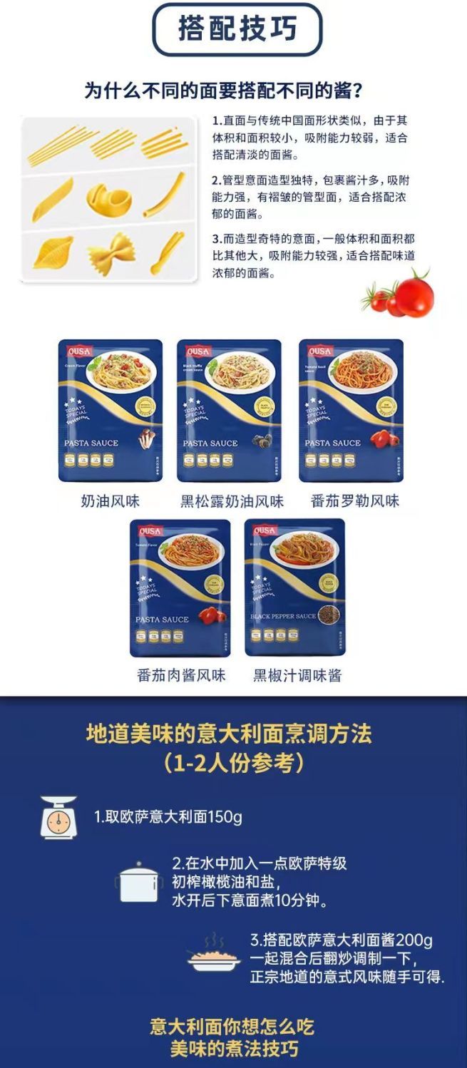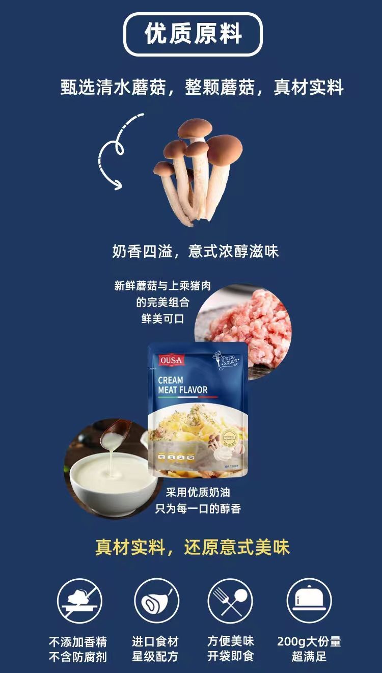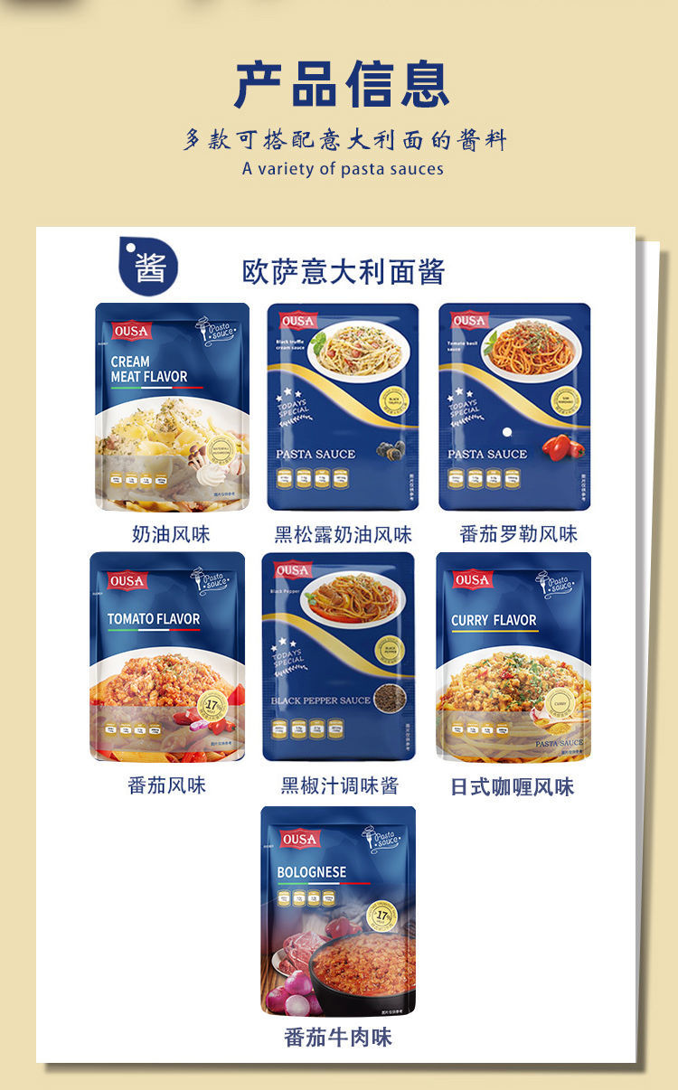 (特)欧萨意大利面肉酱奶油蘑菇风味意面意粉通心粉西餐酱料调料小炒酱