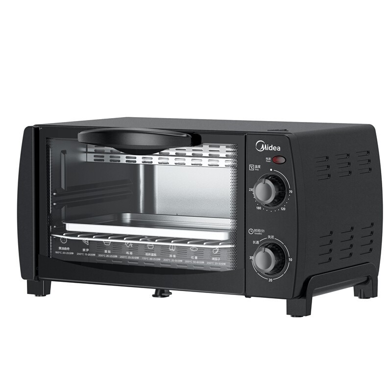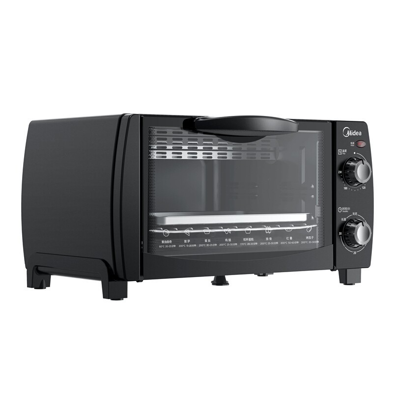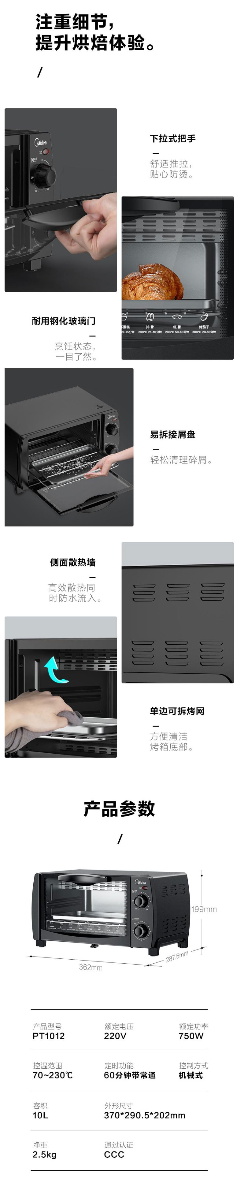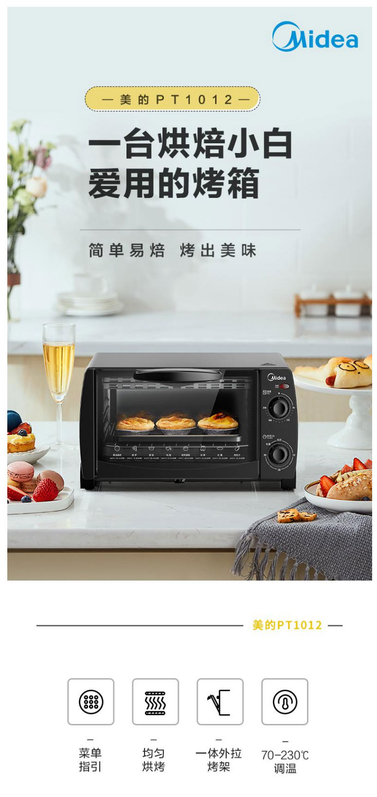 美的Midea 多功能家用厨房 迷你小烤箱 10升容量电烤箱 PT1012 曜石黑