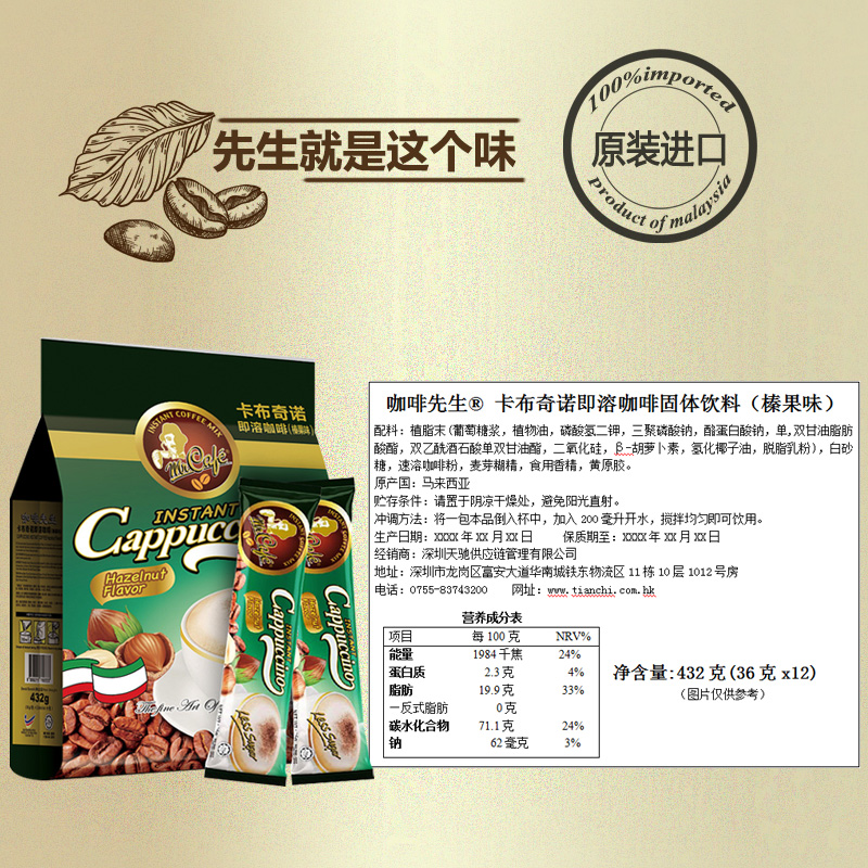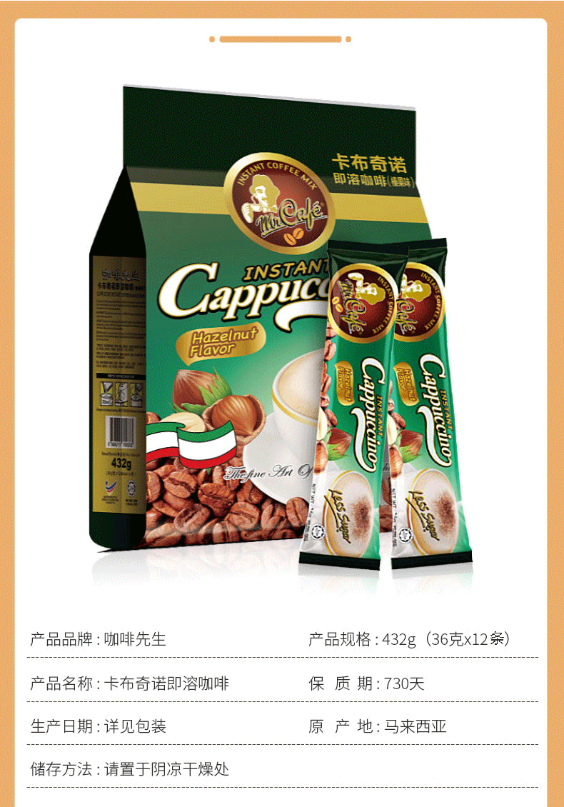 MR CAFE咖啡先生卡布奇诺即溶咖啡(榛果味)