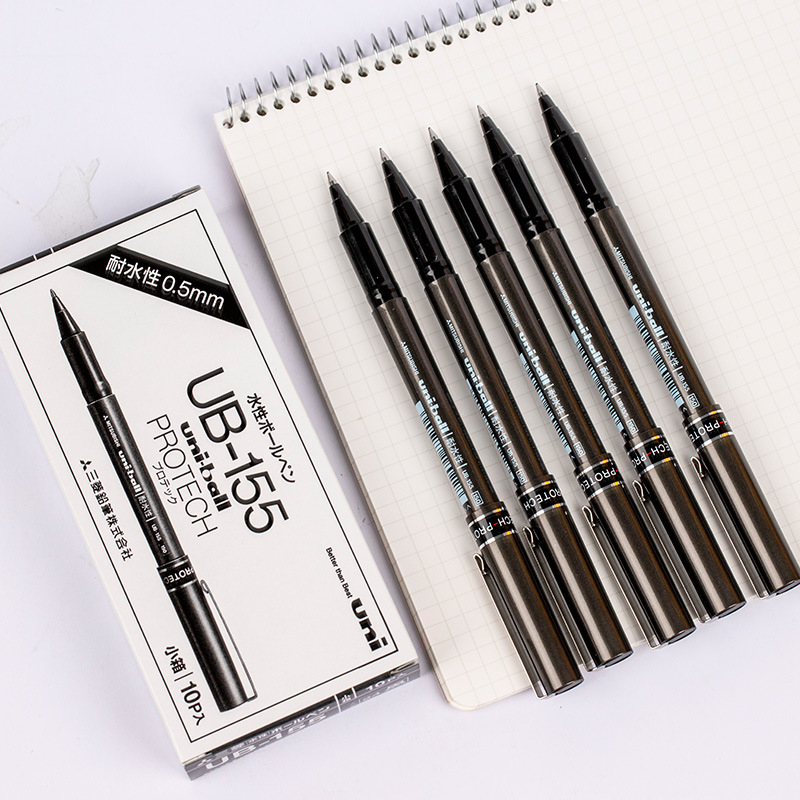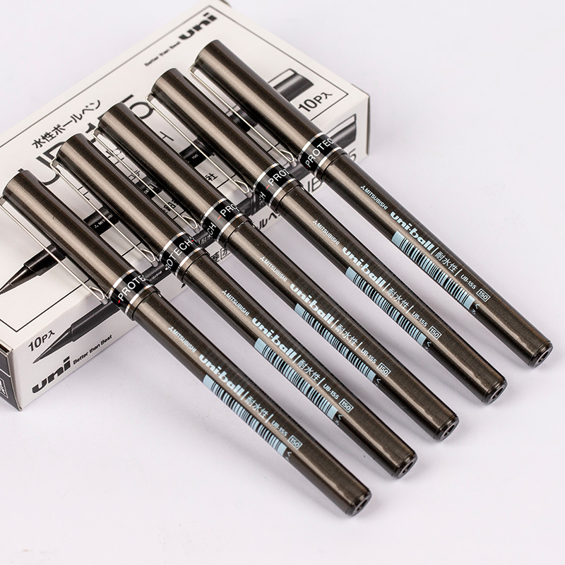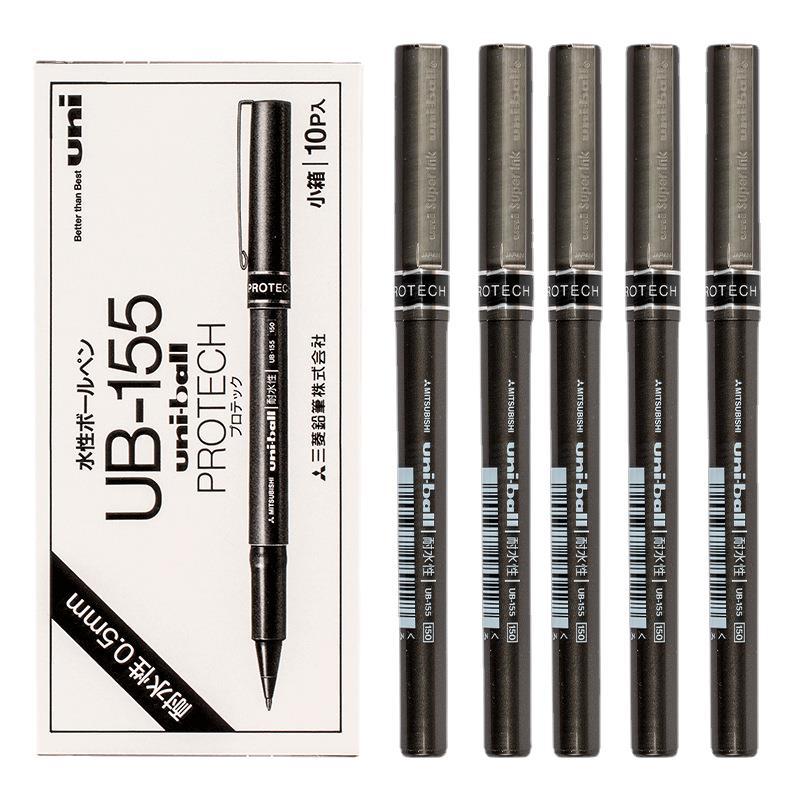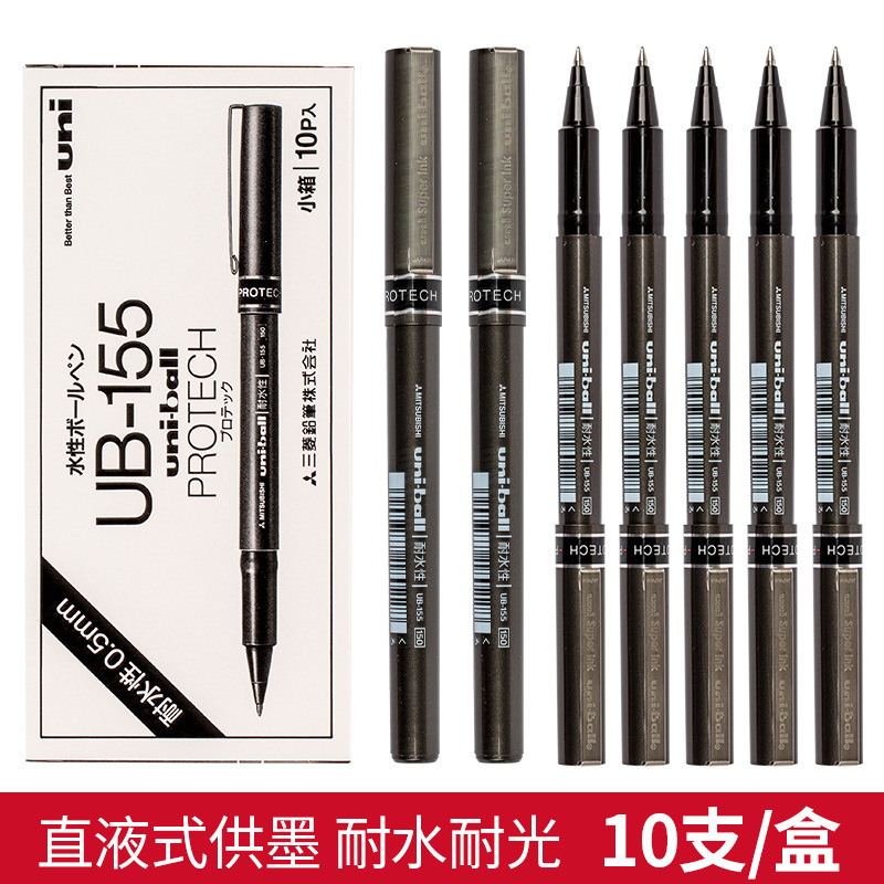 日本UNI三菱中性笔UB-155直液式走珠笔办公签字水笔红蓝黑色0.5mm 10支/盒