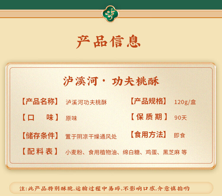 (特)泸溪河原味功夫桃酥120g*1盒 南京糕点点心饼干蛋糕早餐网红休闲零食