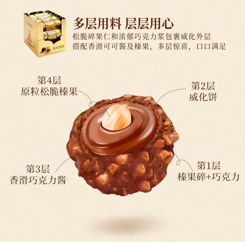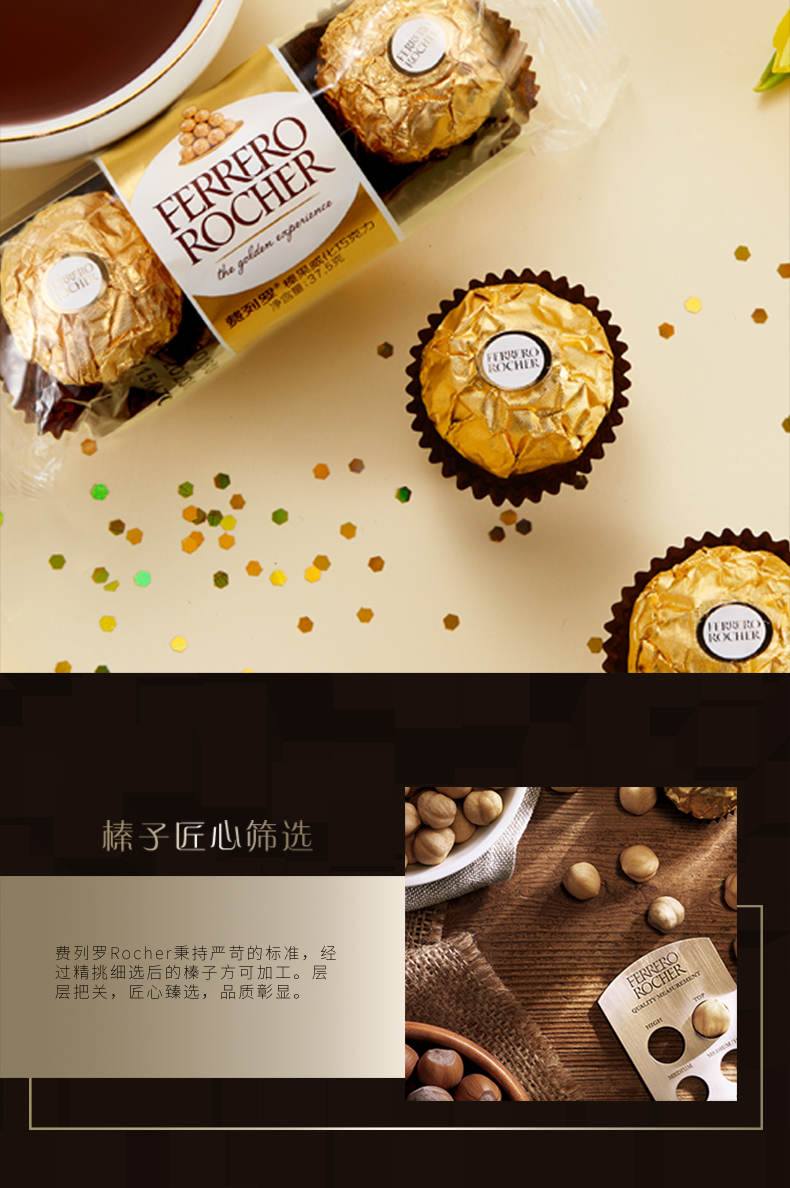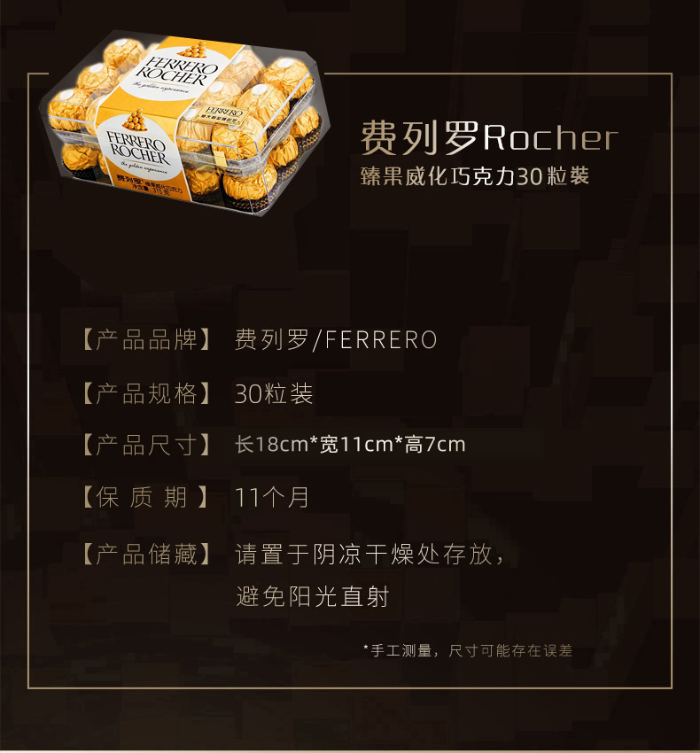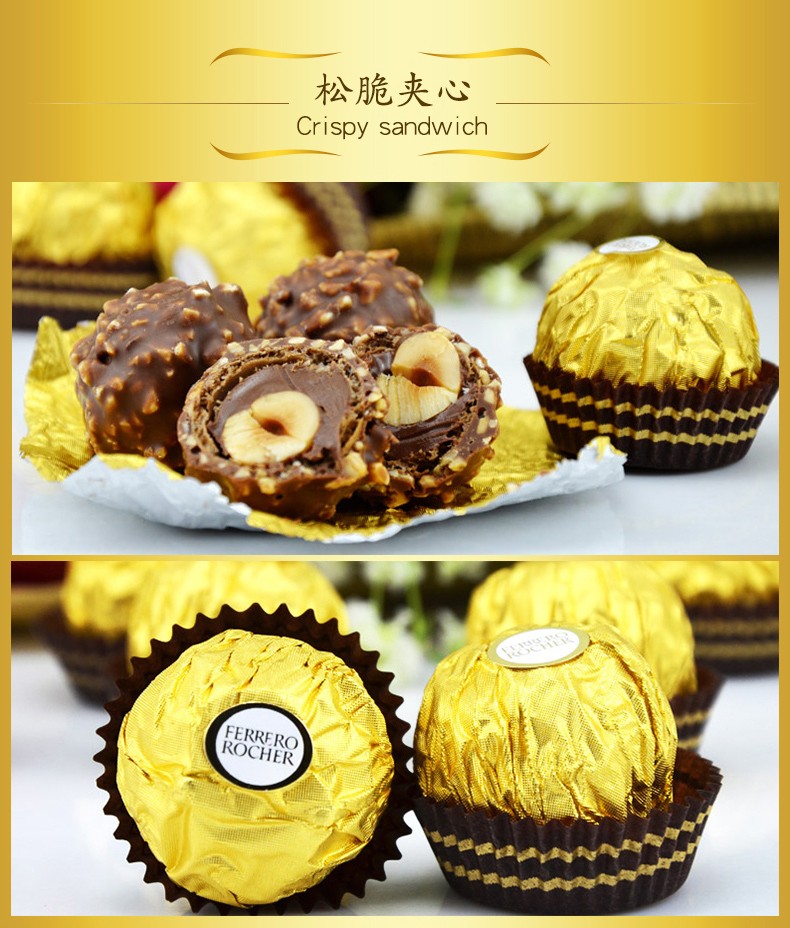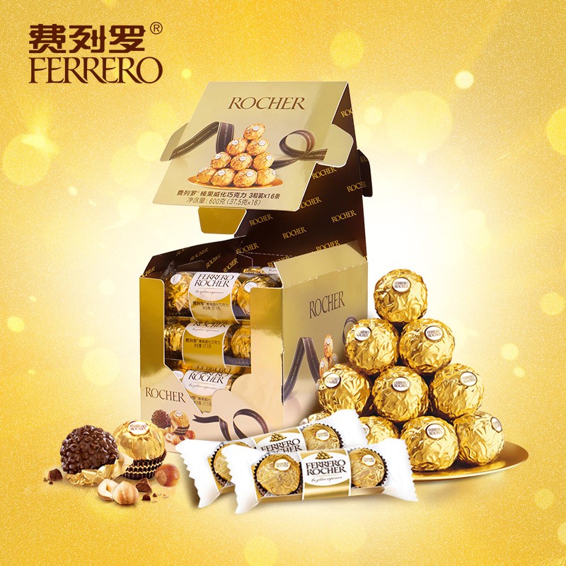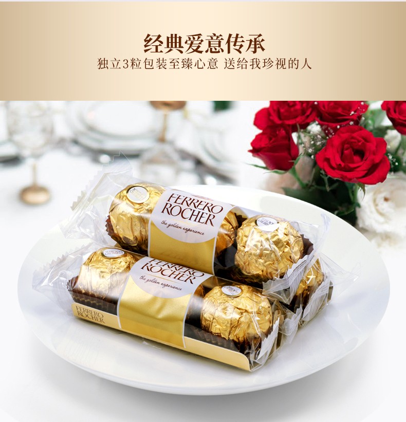 费列罗巧克力T30/48粒礼盒金莎臻果牛奶夹心巧克力婚礼喜糖婚庆糖果 费列罗T48粒 600g