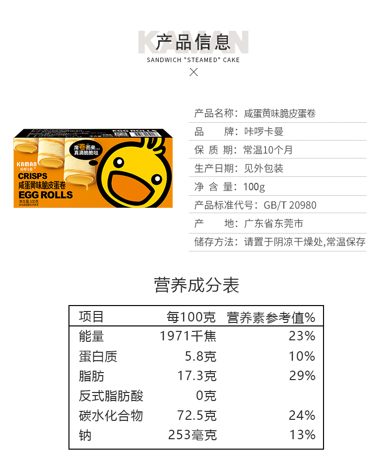 100g咔啰卡曼咸蛋黄味脆皮蛋卷(盒装)