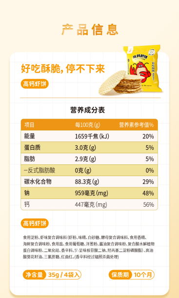 原味高钙虾饼 35克*20包