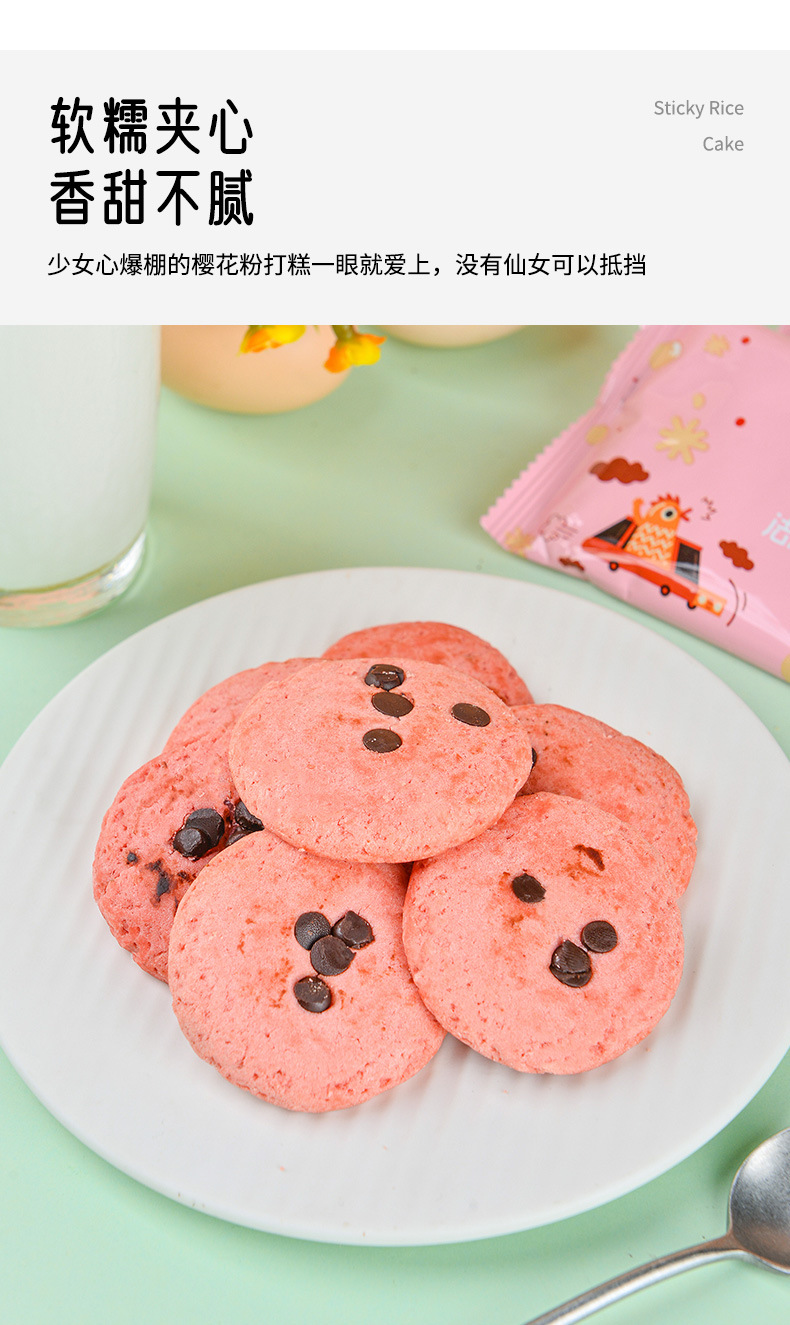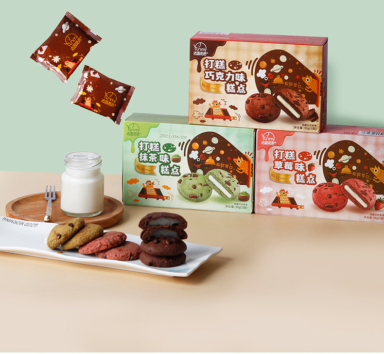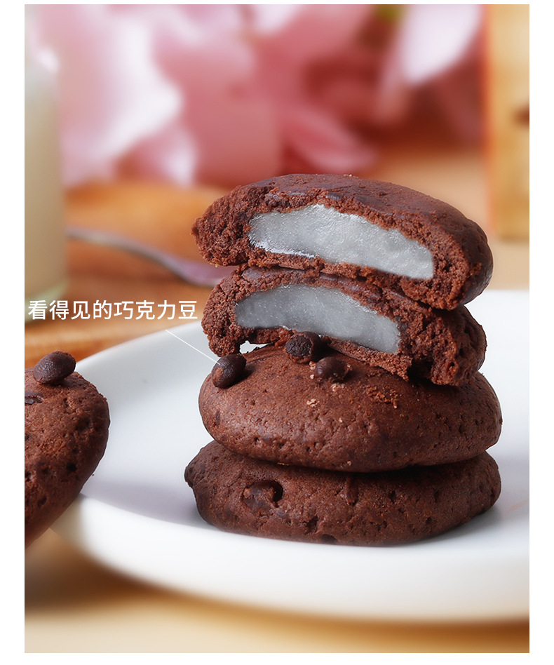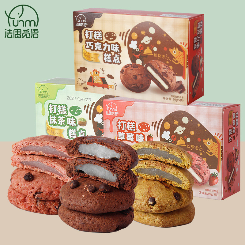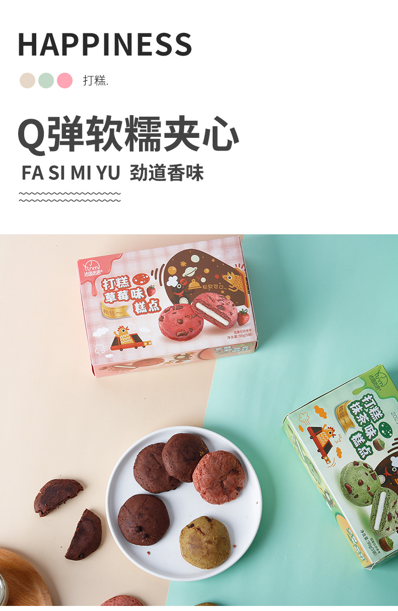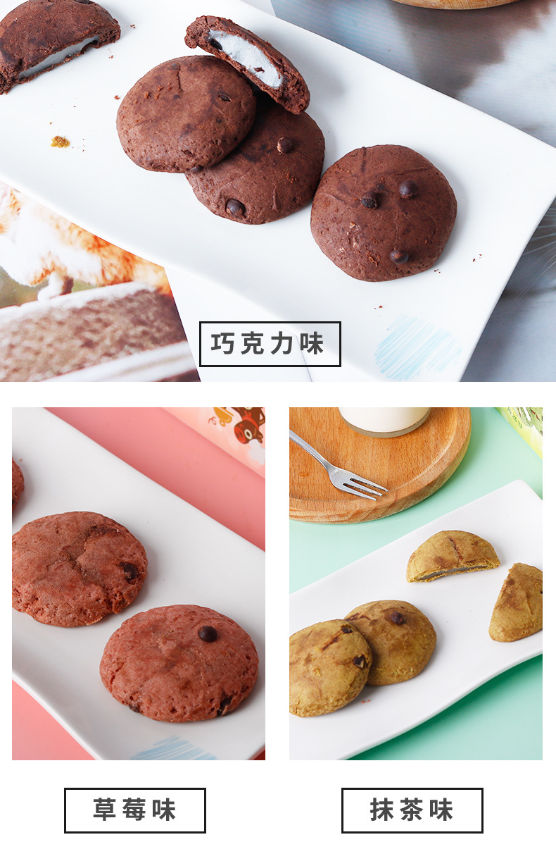 法思觅语巧克力草莓抹茶味打糕派软糯小吃批发夹心曲奇零食90g