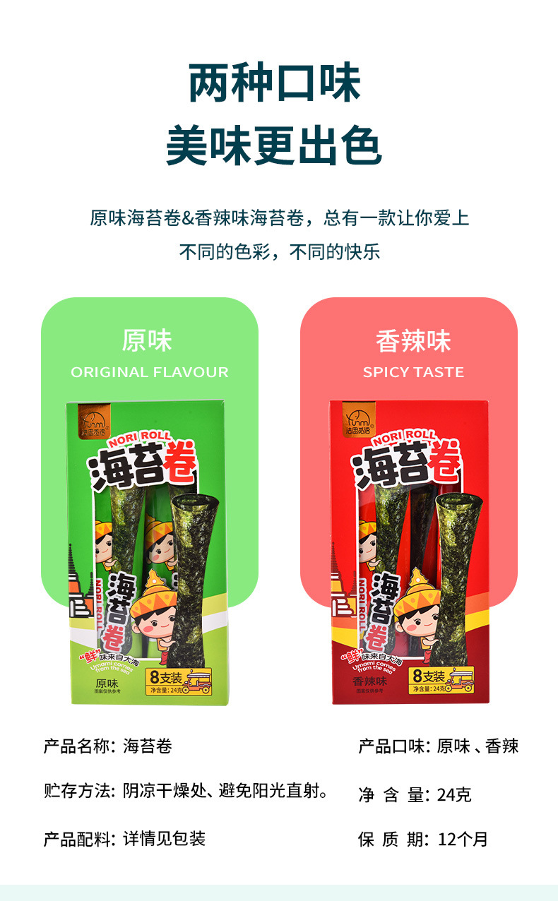 法思觅语盒装经典香脆海苔卷24g原味香辣味即食休闲零食