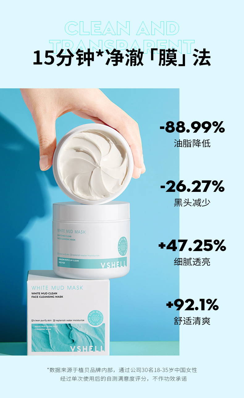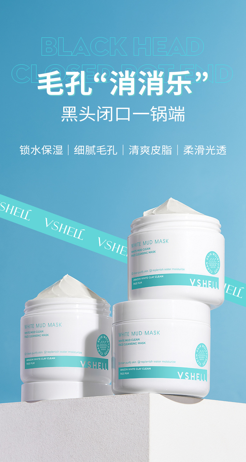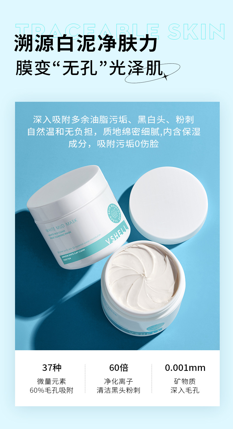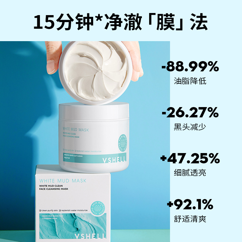 植贝白泥高岭土泥膜 清洁面膜控油去黑头粉刺补水保湿涂抹式面膜