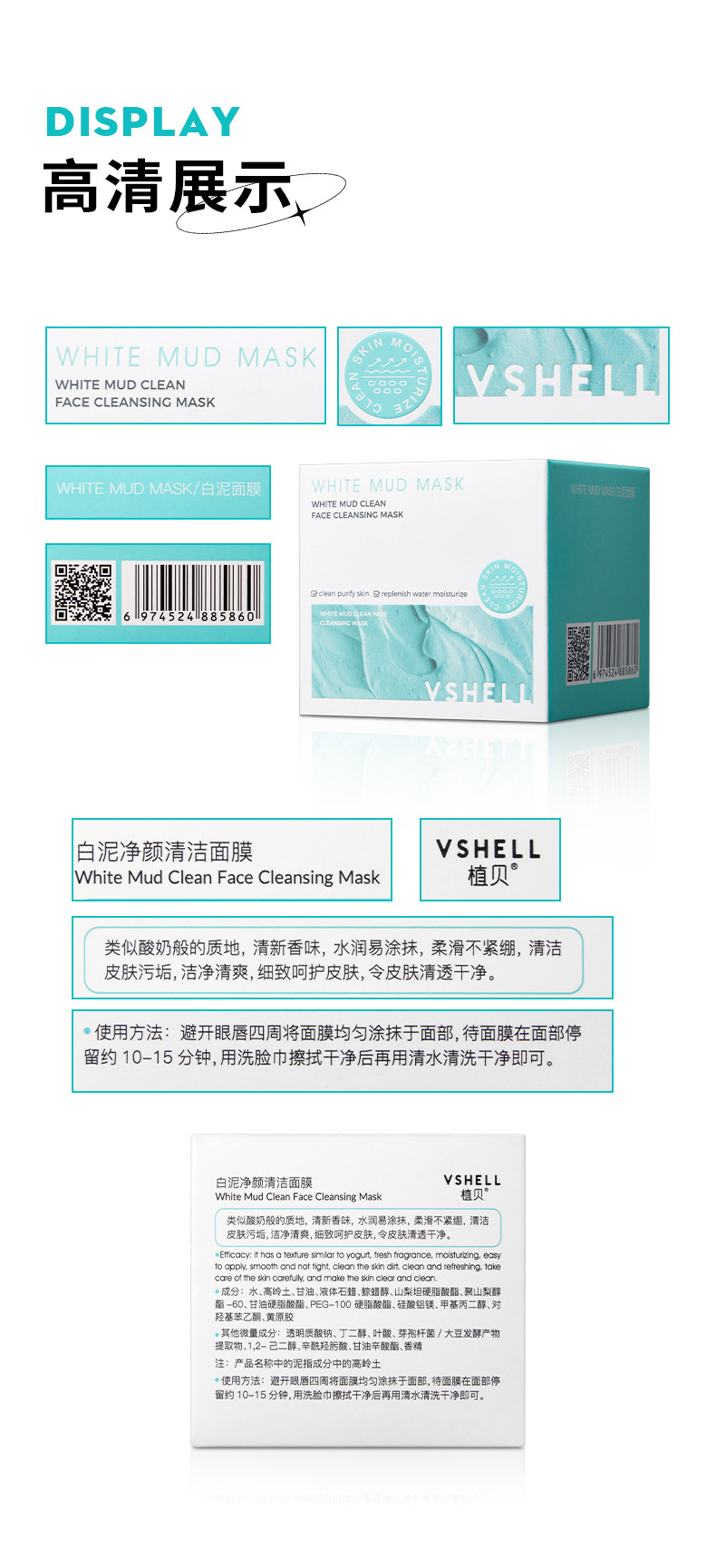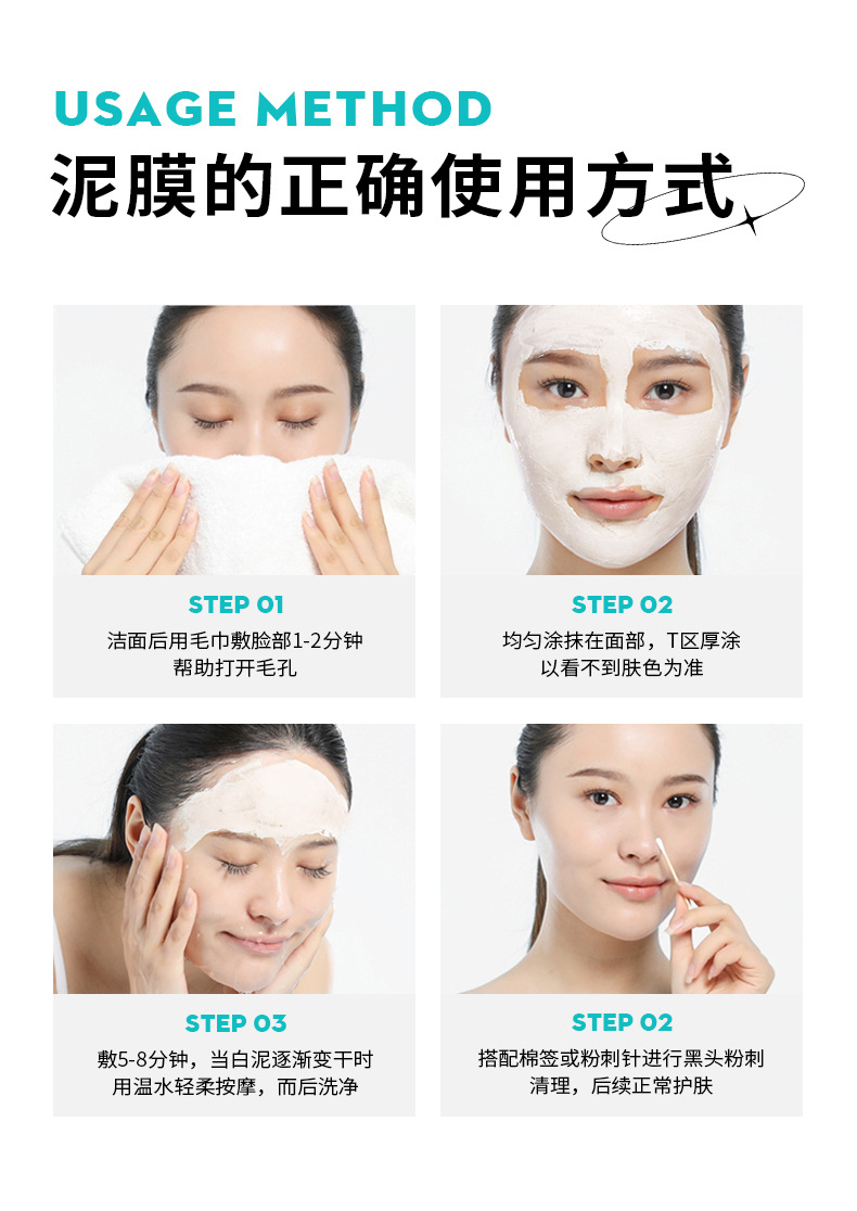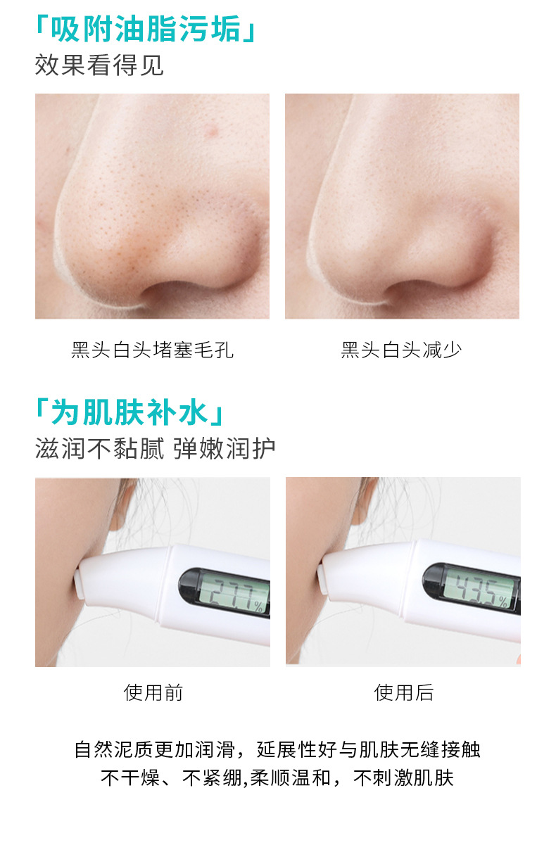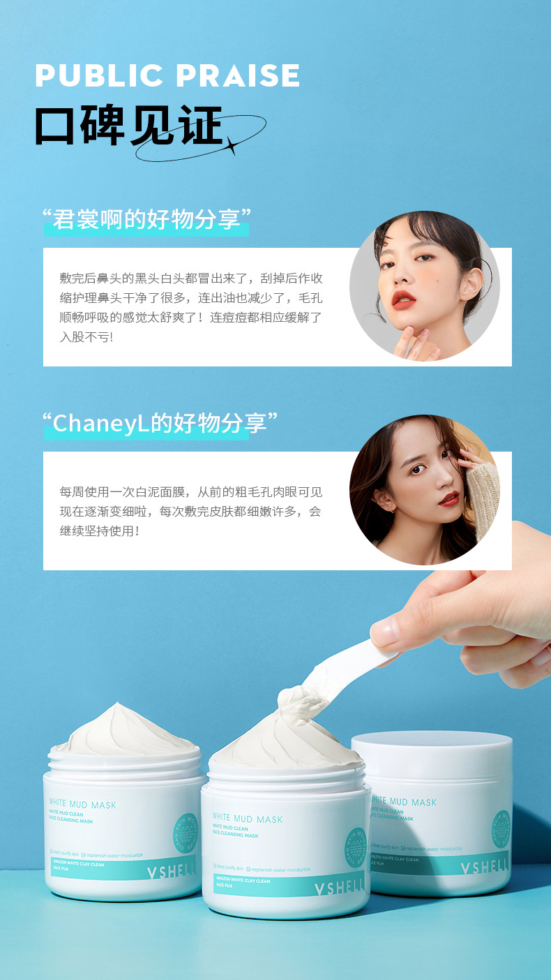 植贝白泥高岭土泥膜 清洁面膜控油去黑头粉刺补水保湿涂抹式面膜