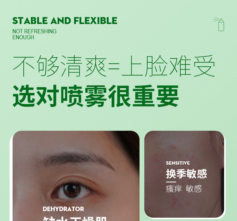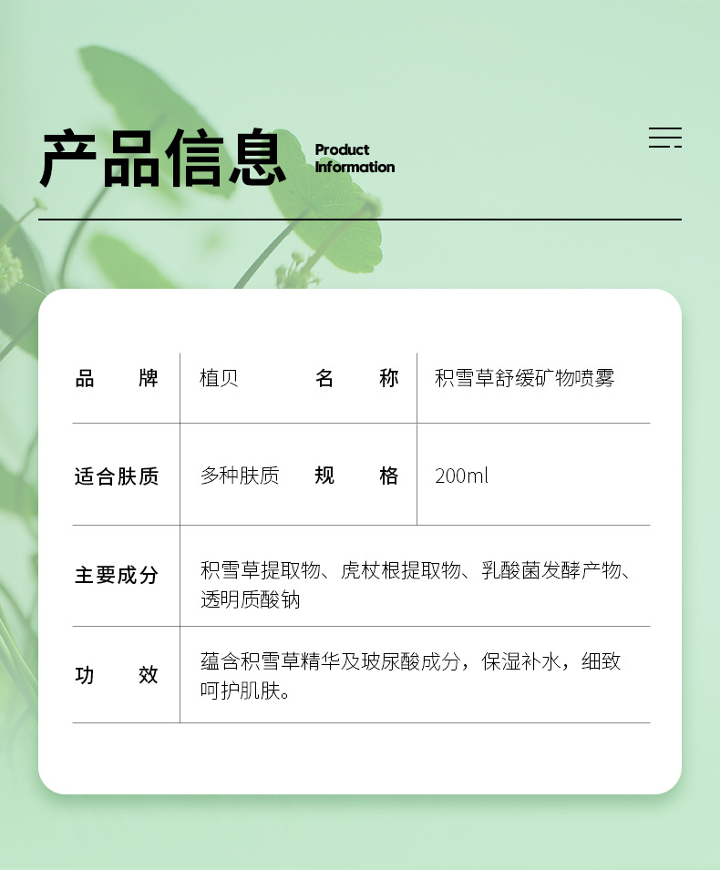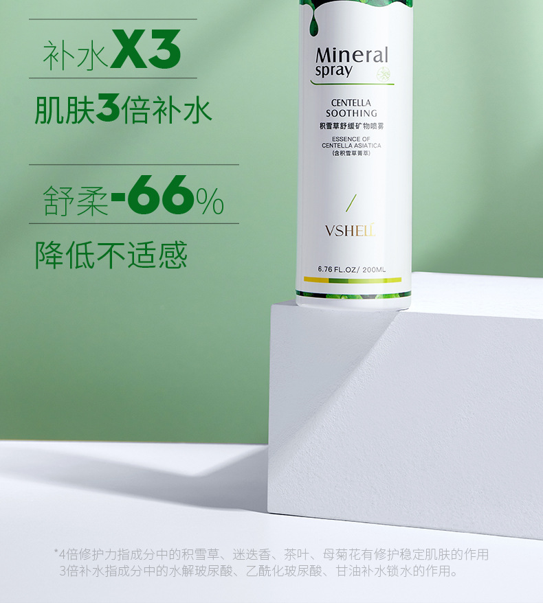 植贝积雪草补水保湿爽肤水芦荟喷雾 玻尿酸天然矿泉补水保湿喷雾