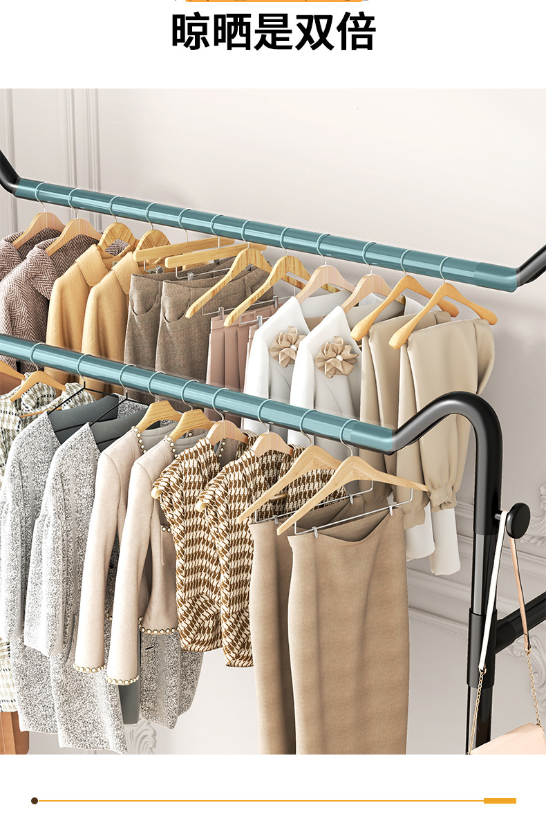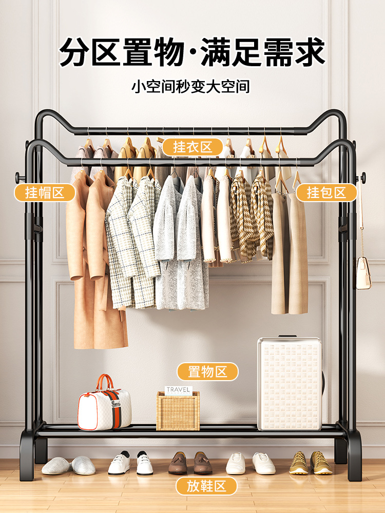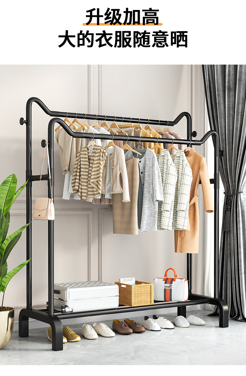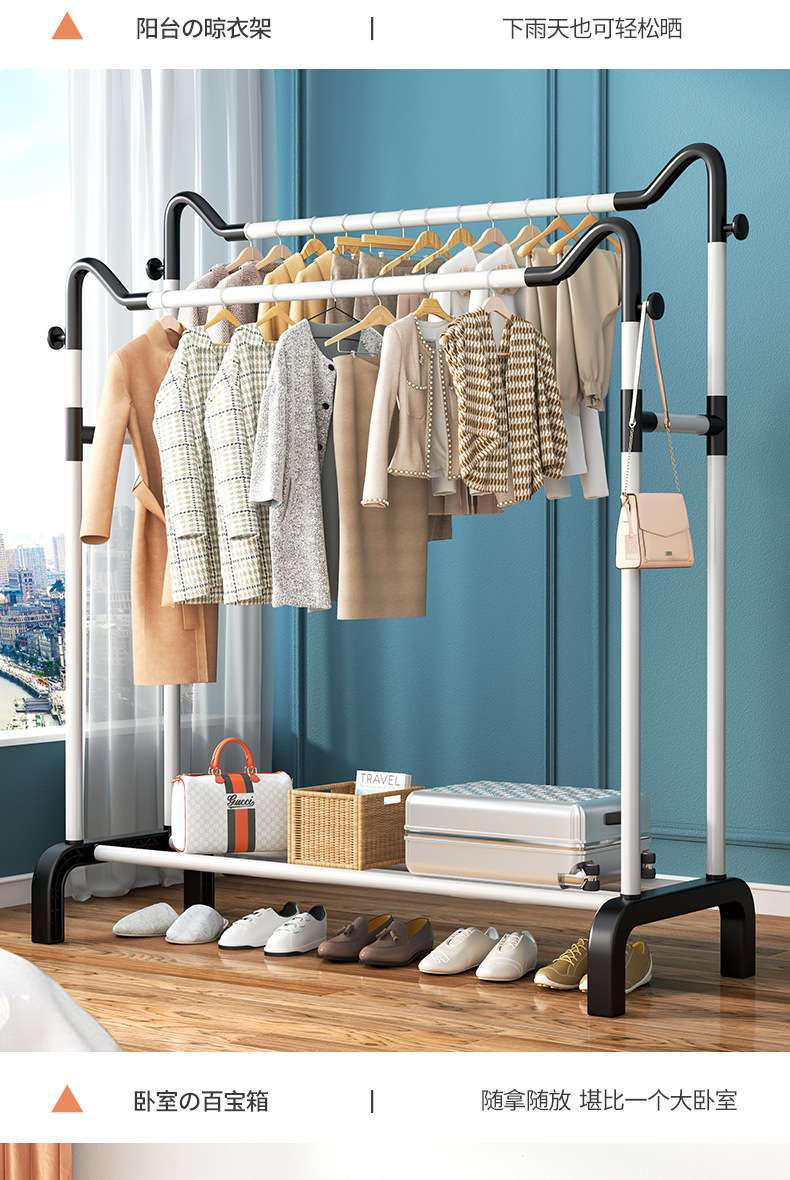 (特)晾衣架落地卧室家用挂衣收纳神器简易晒挂衣服置物折叠室内凉衣杆 两个装