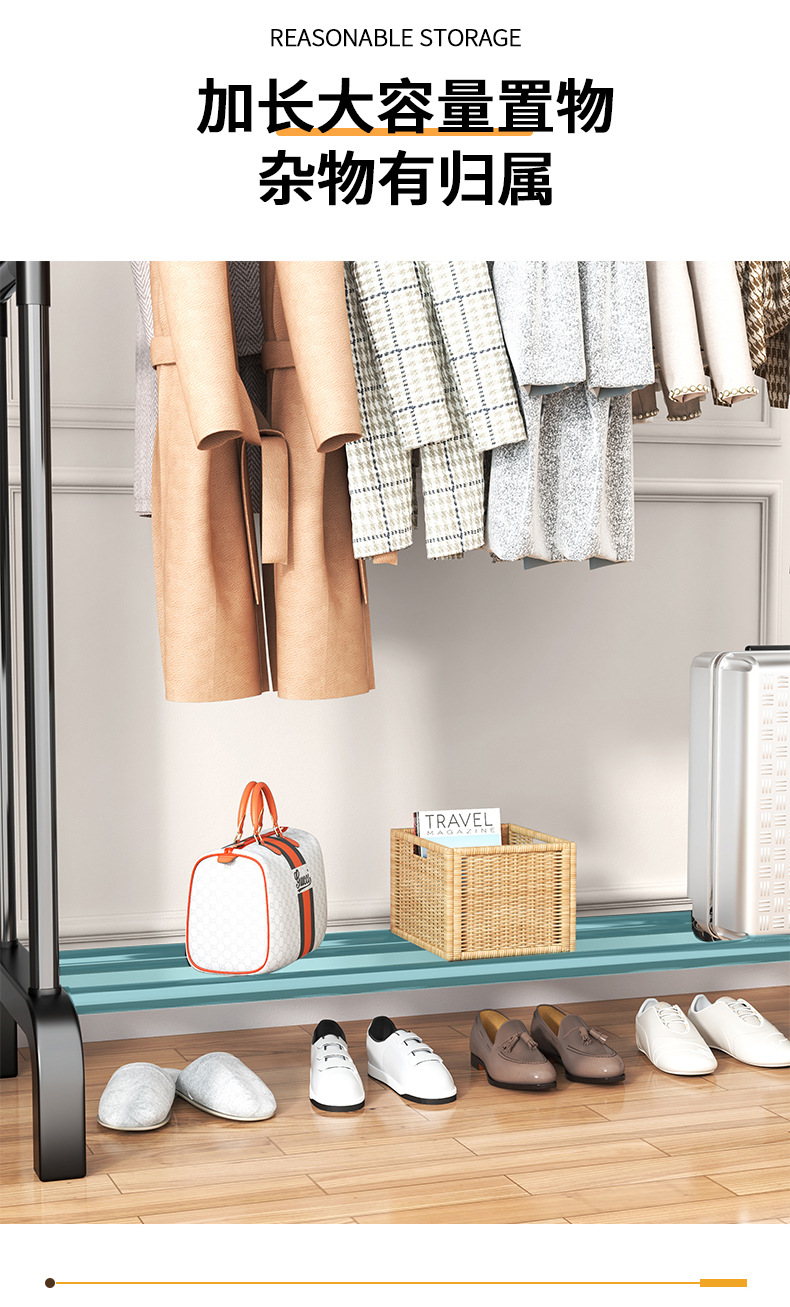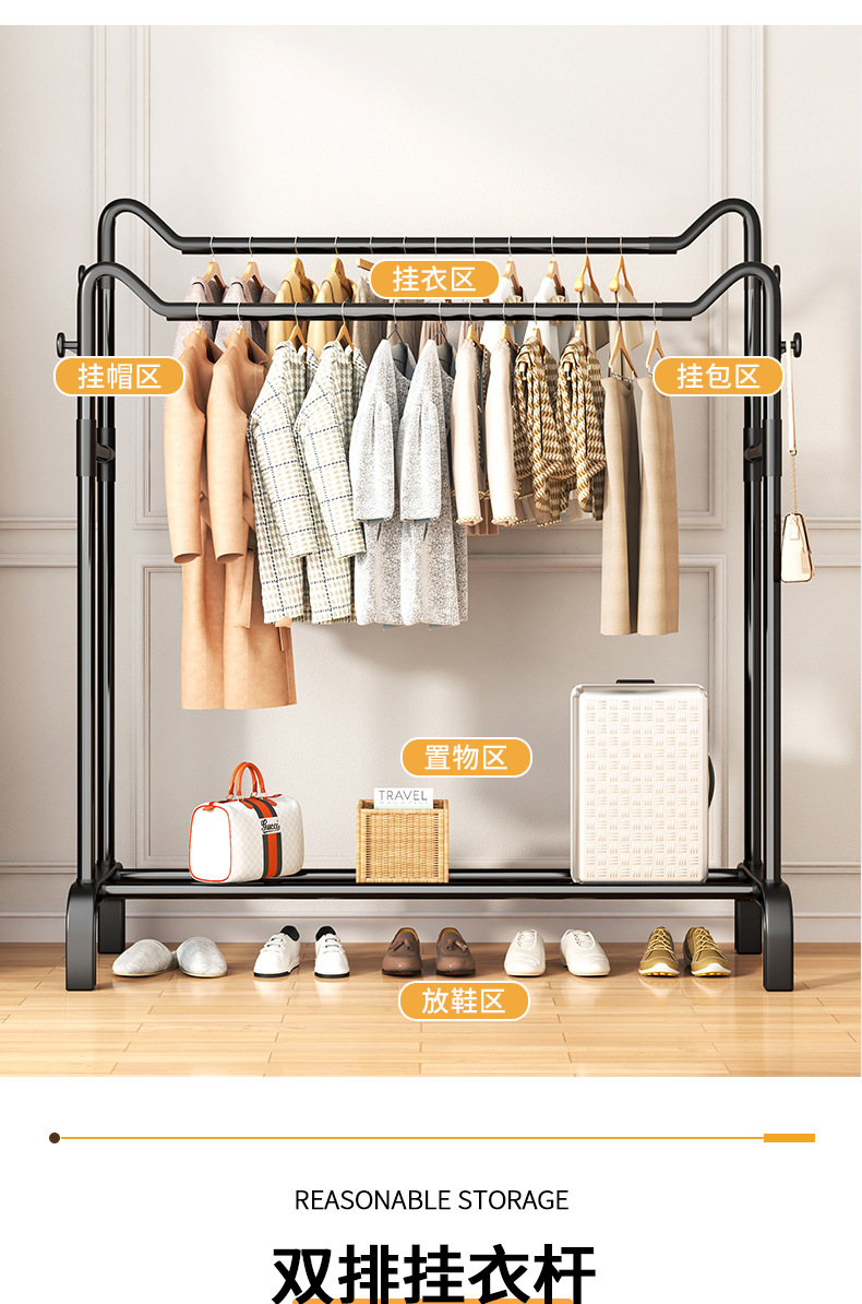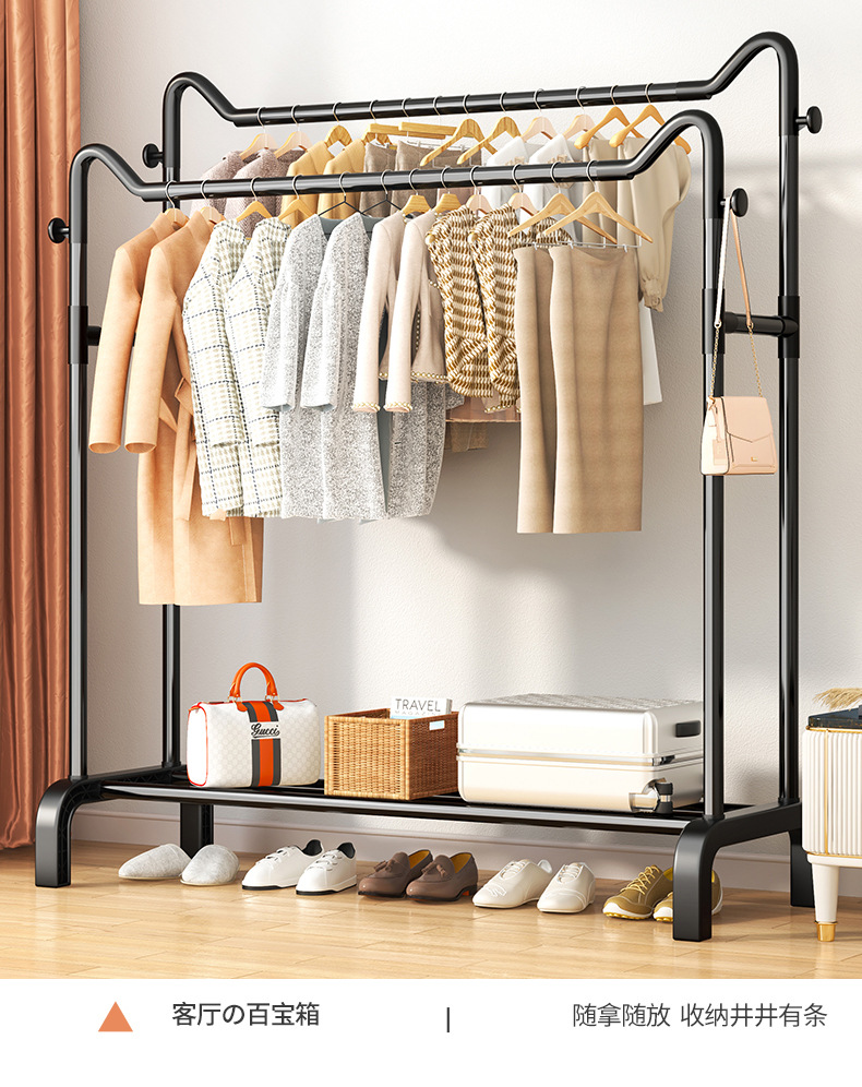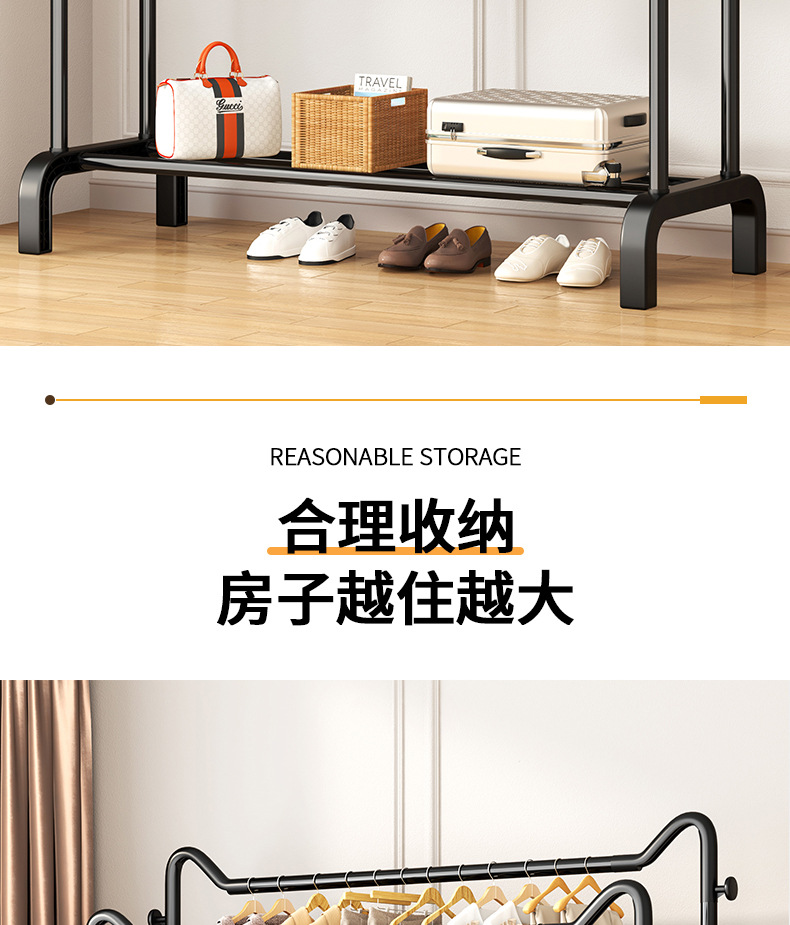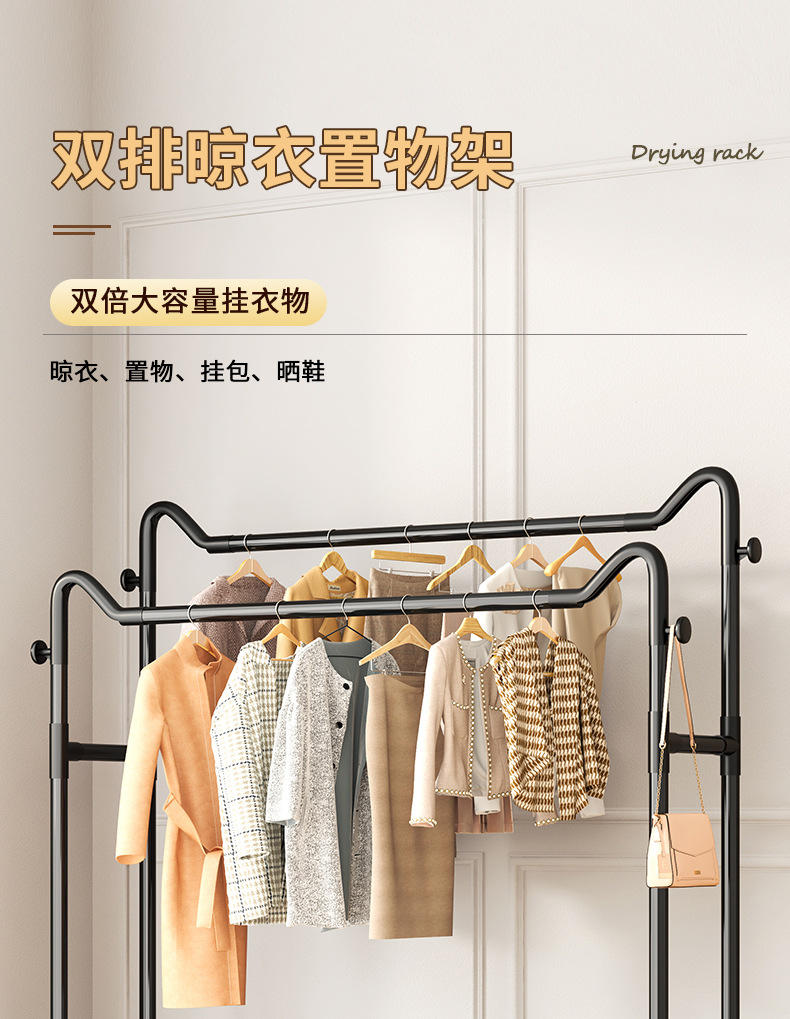 (特)晾衣架落地卧室家用挂衣收纳神器简易晒挂衣服置物折叠室内凉衣杆 两个装