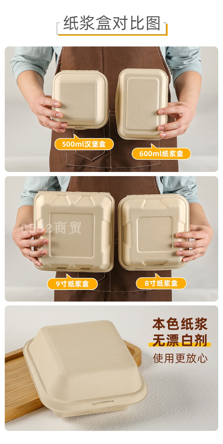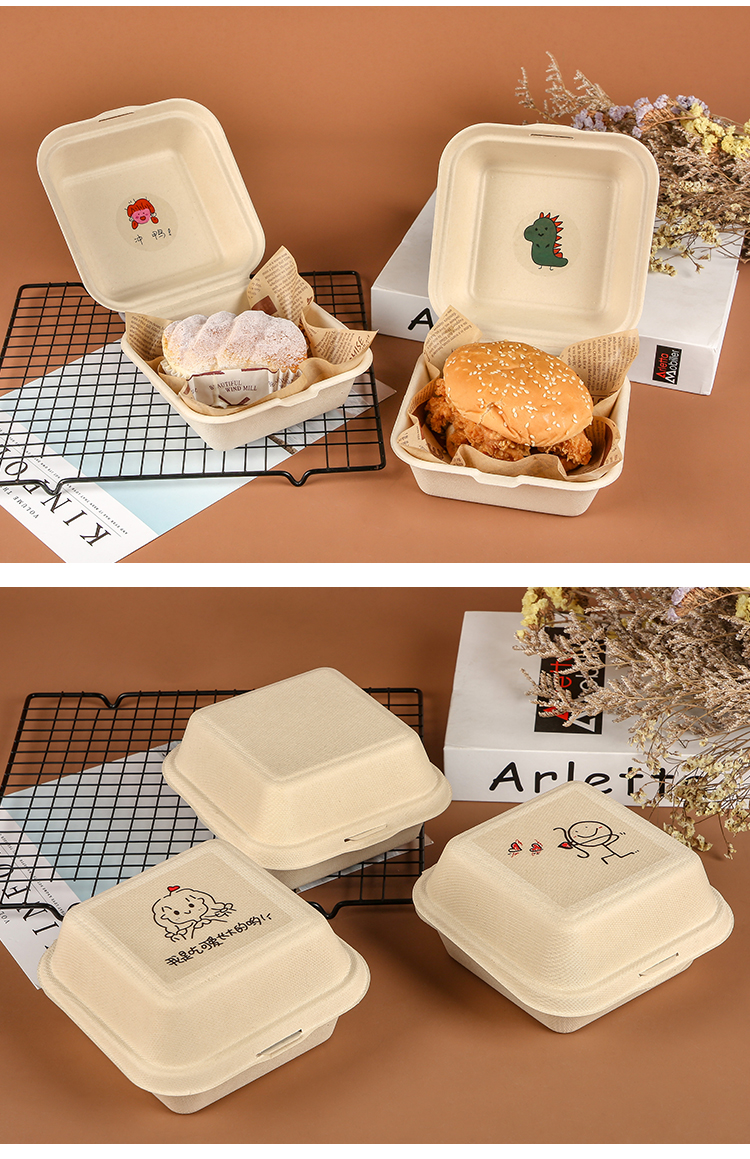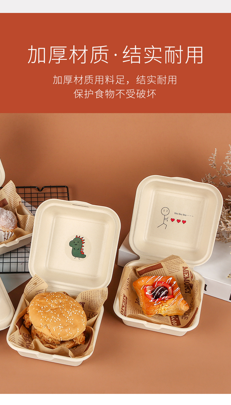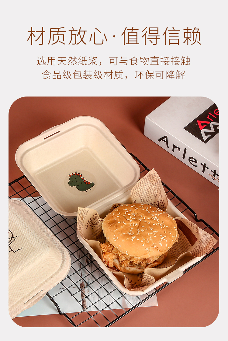 (特)纸浆汉堡盒便当蛋糕甜品外卖打包盒餐盒网红小吃野餐盒子包装盒