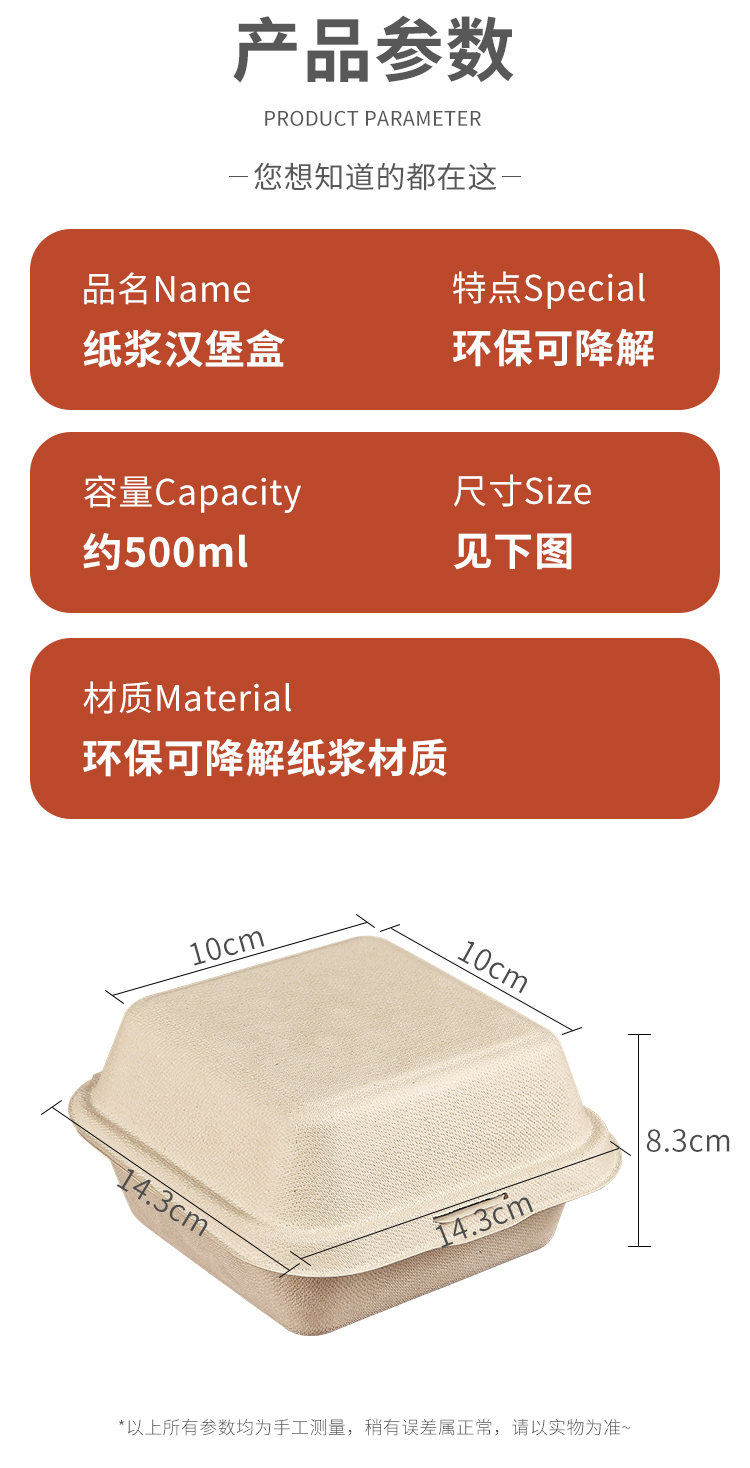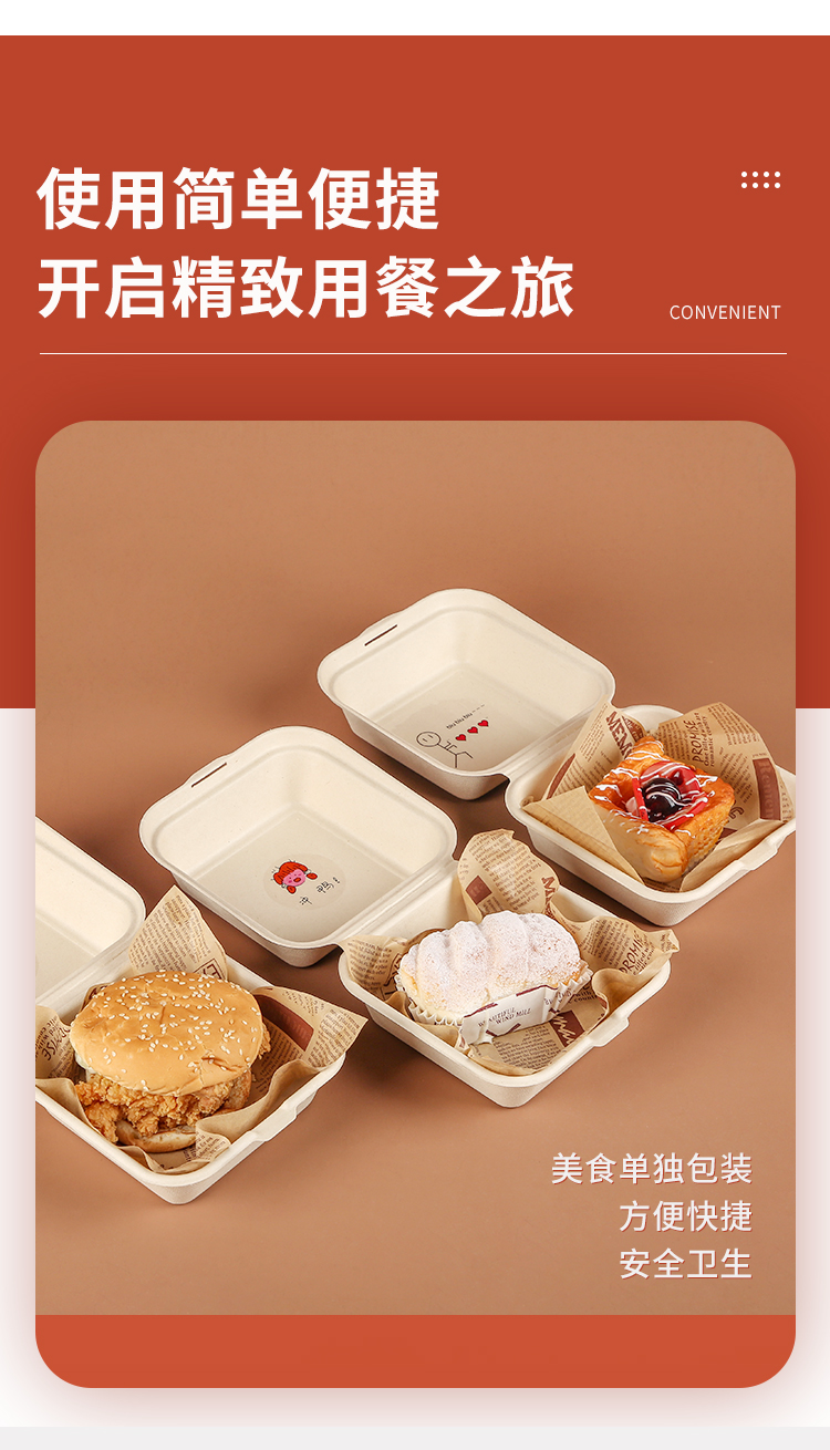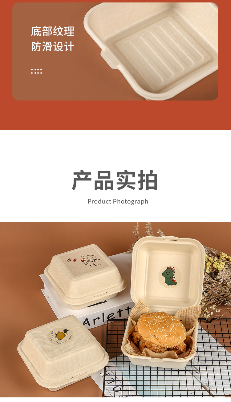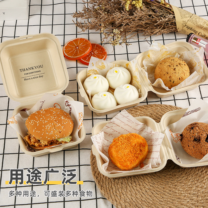 (特)纸浆汉堡盒便当蛋糕甜品外卖打包盒餐盒网红小吃野餐盒子包装盒