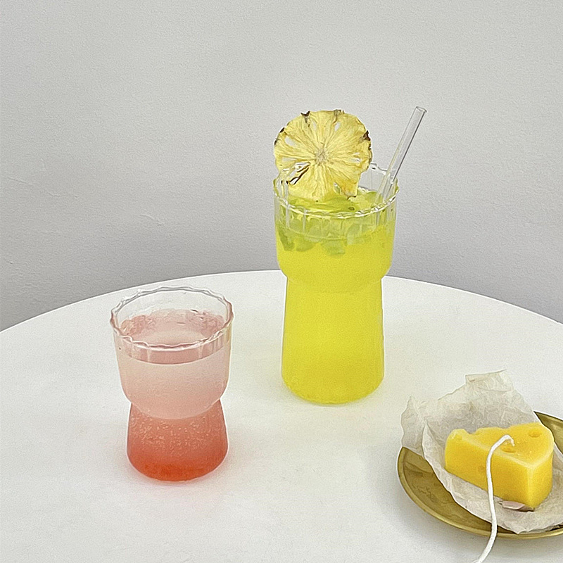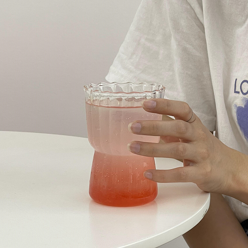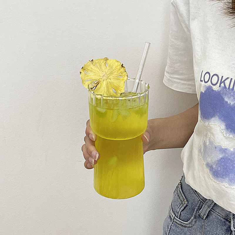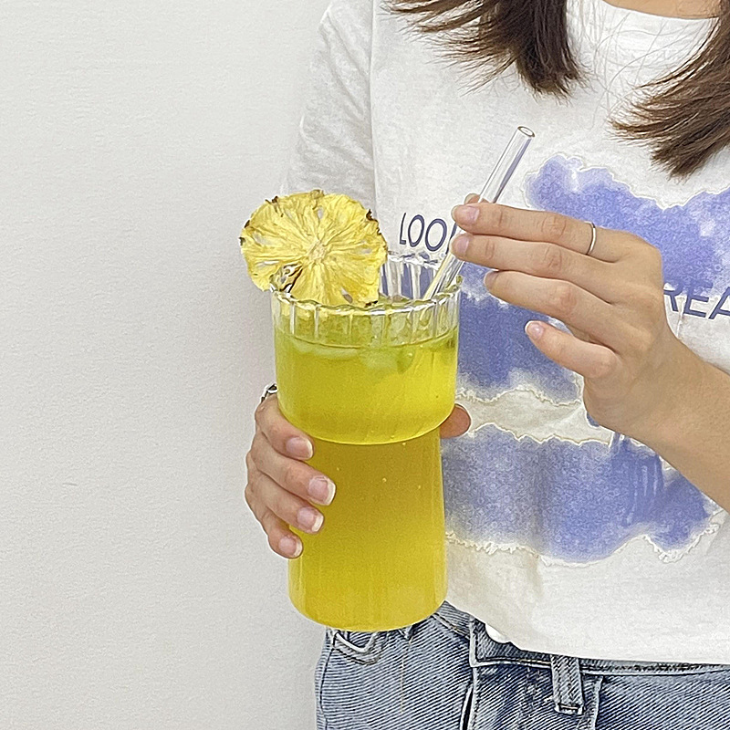 简约ins风咖啡厅复古竖条纹冰美式咖啡杯冷萃拿铁杯玻璃果汁杯