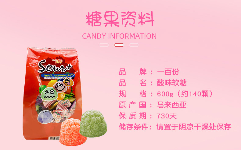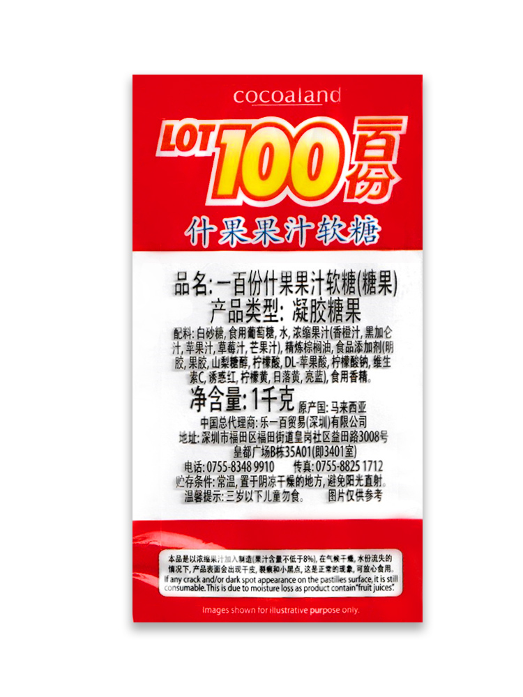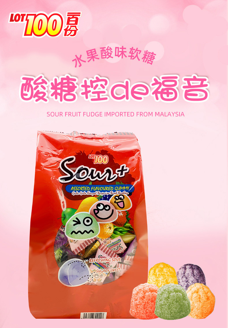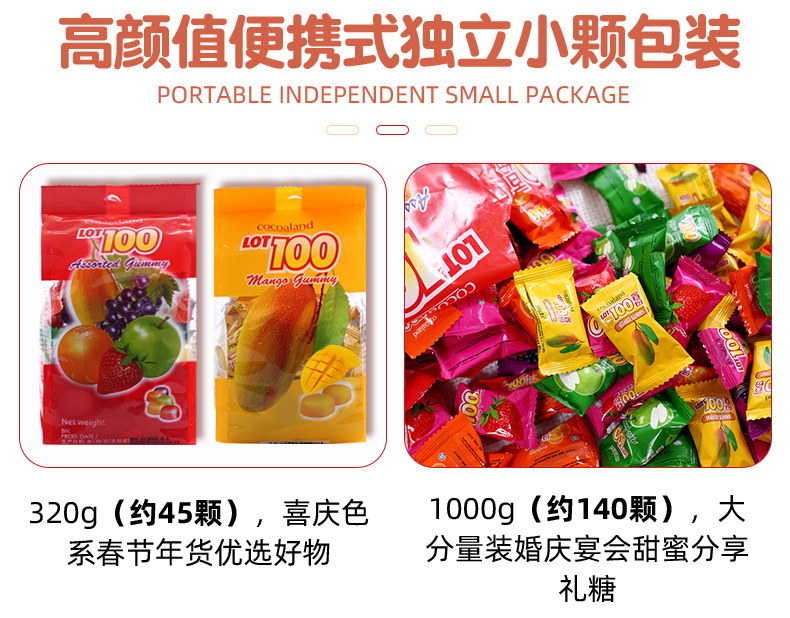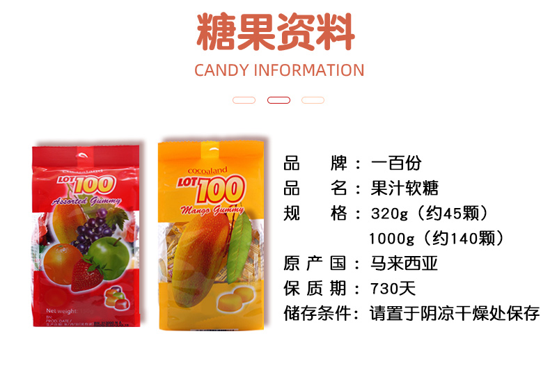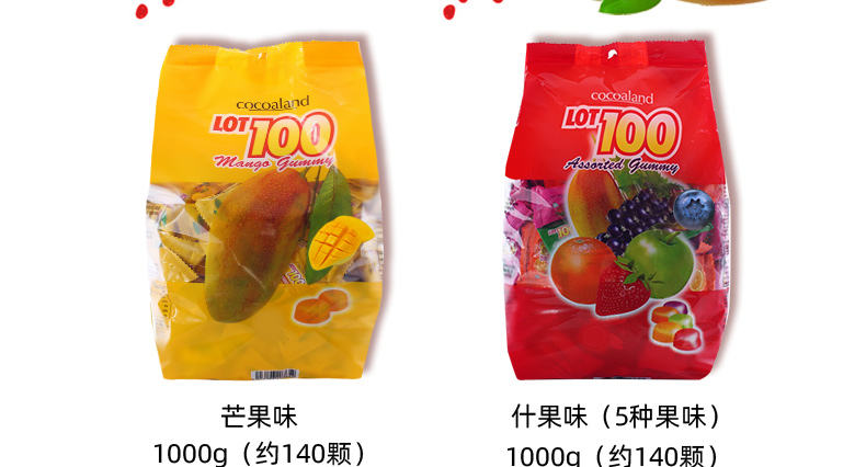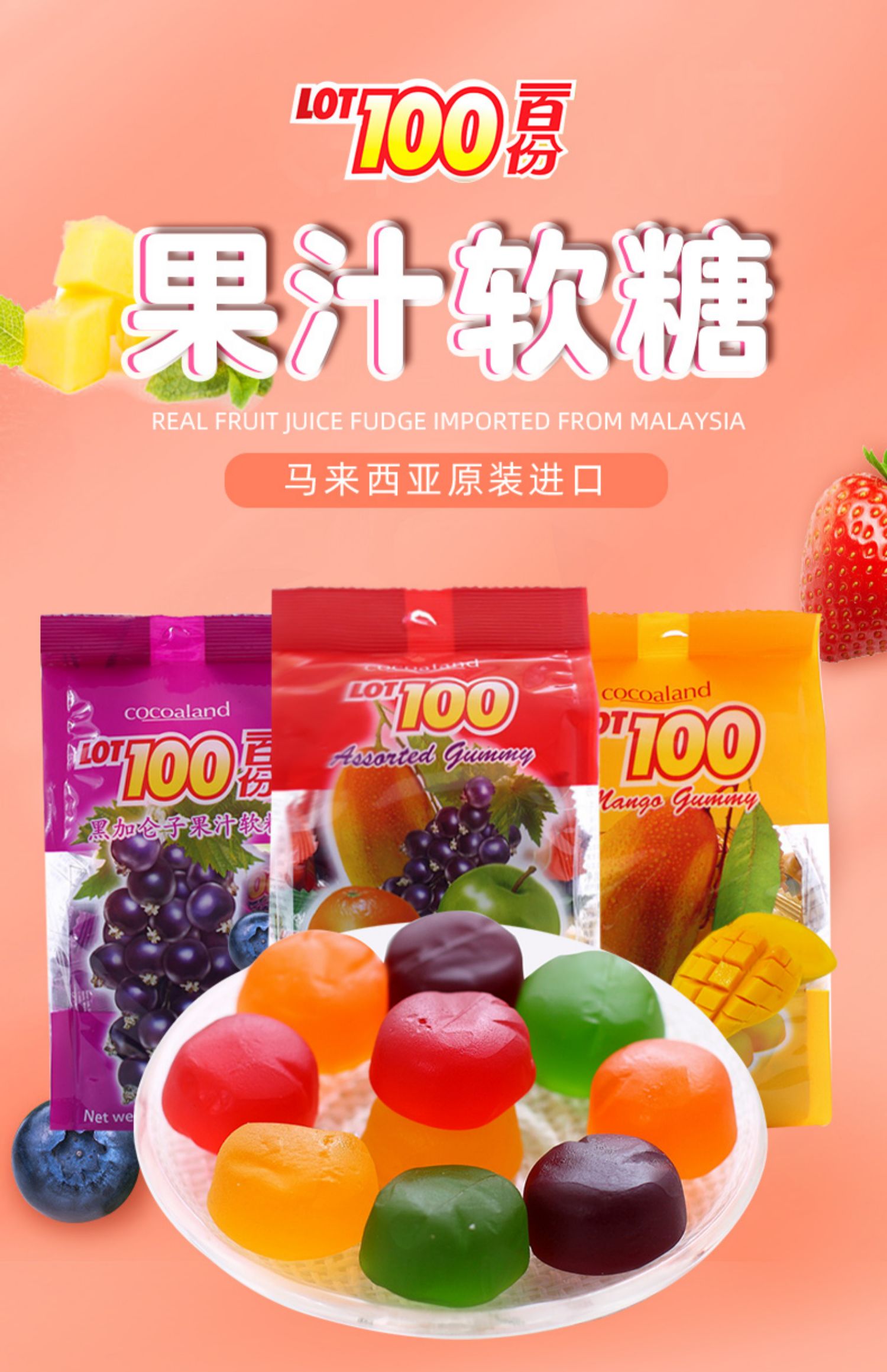 (特)一百份果汁软糖1kg 马来西亚LOT100分多口味芒果水果喜糖