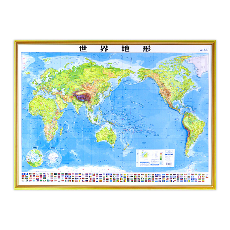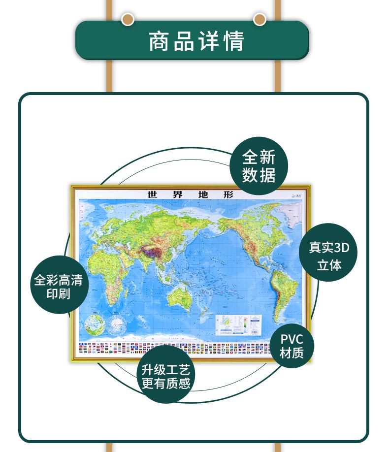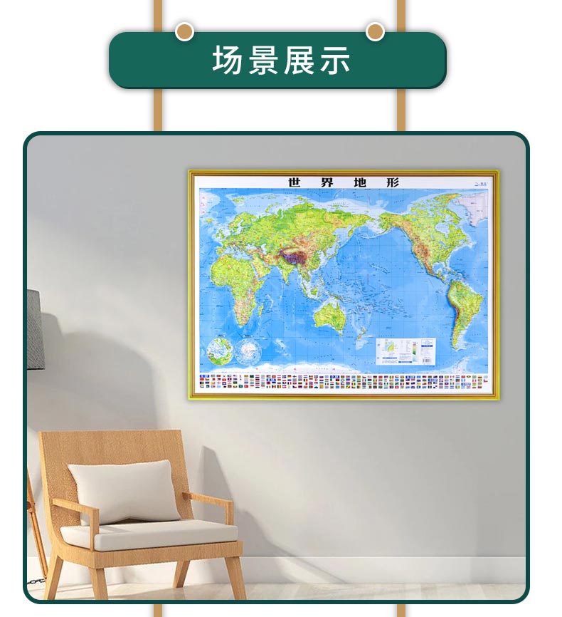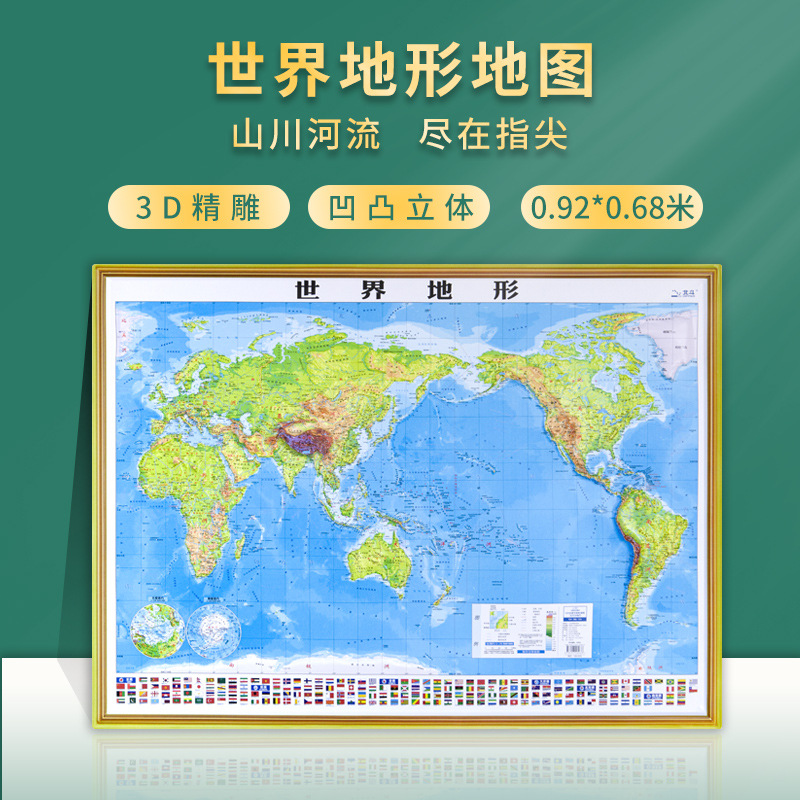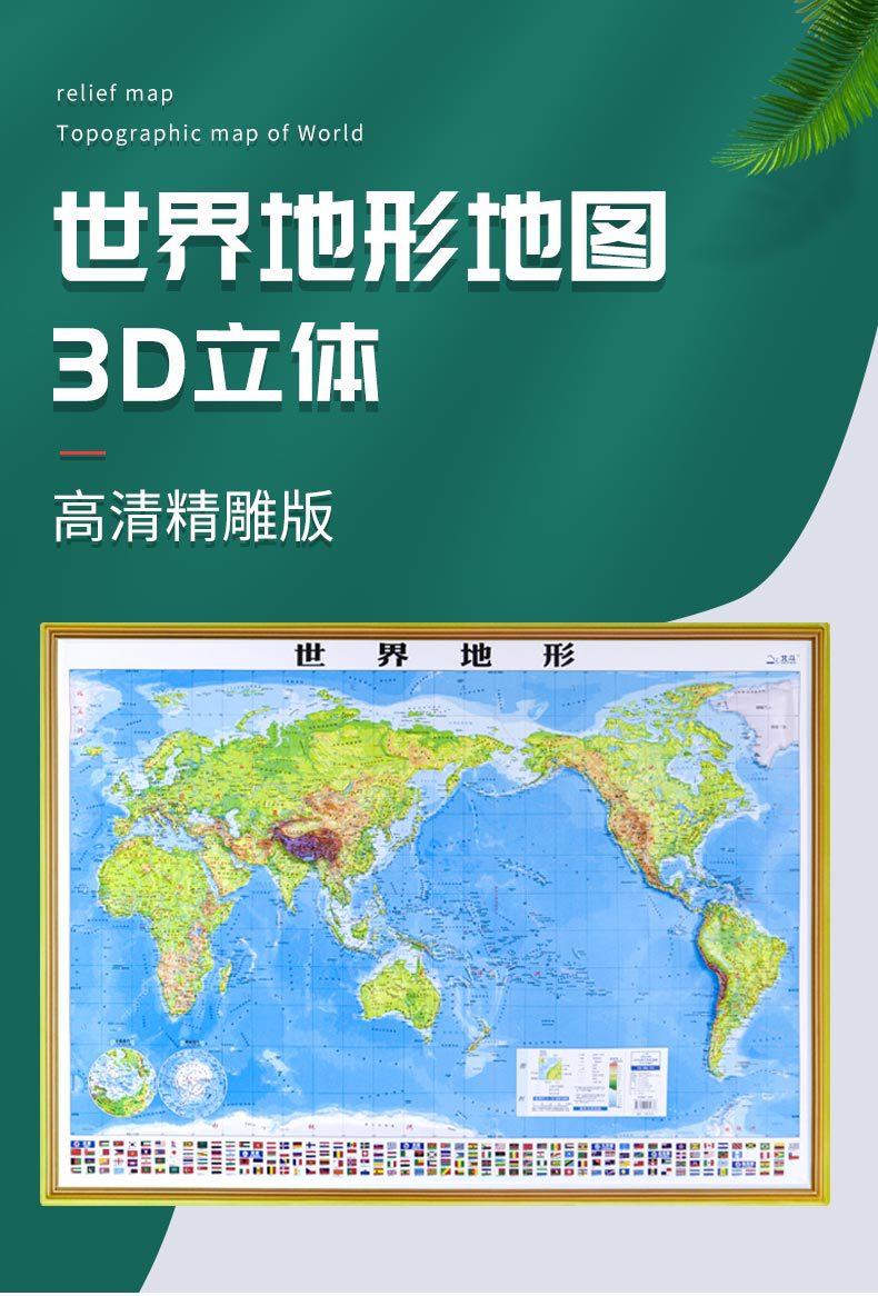 3D精雕立体2022新版世界地形地图3d立体地形图 三维凹凸墙贴