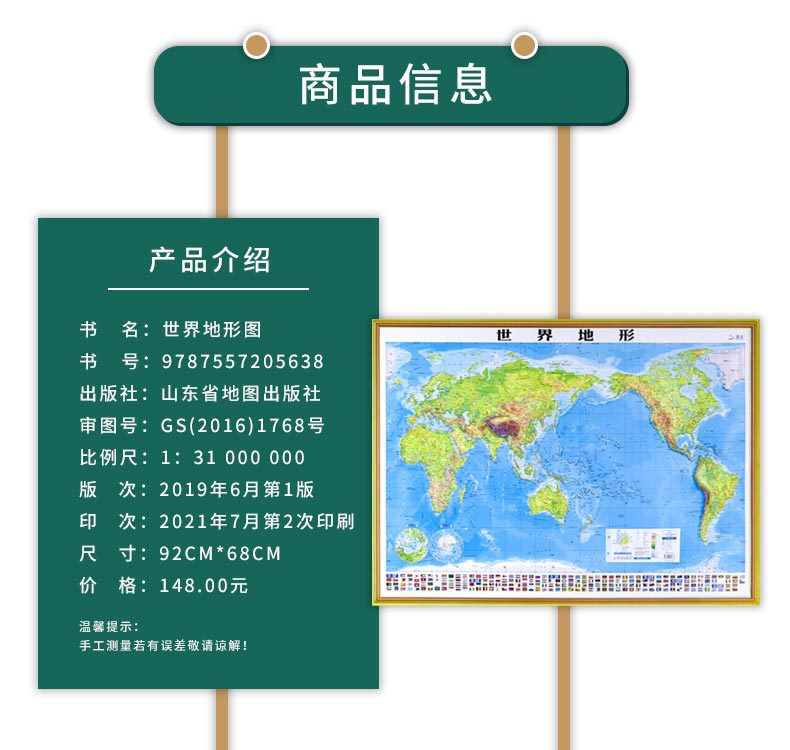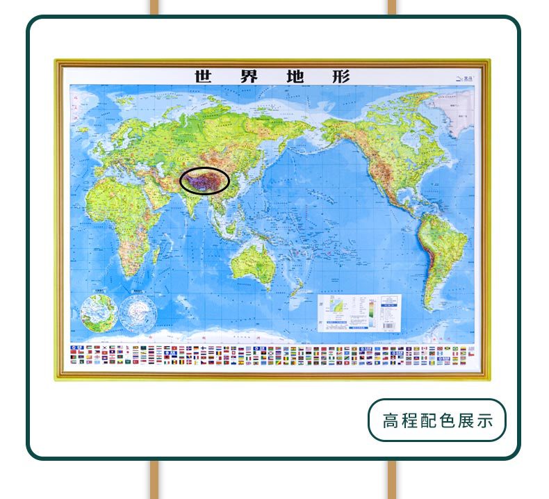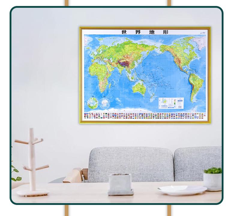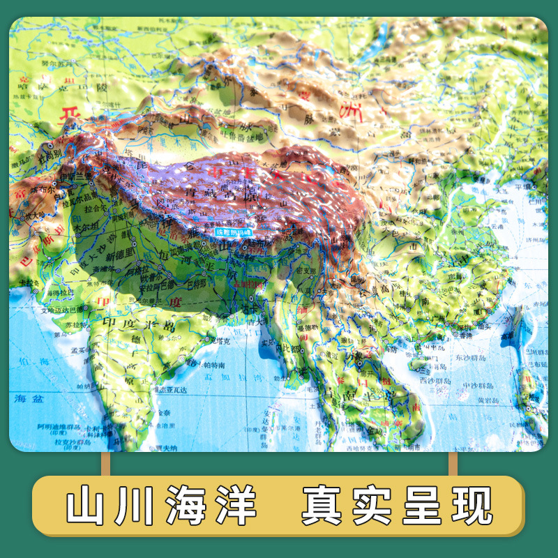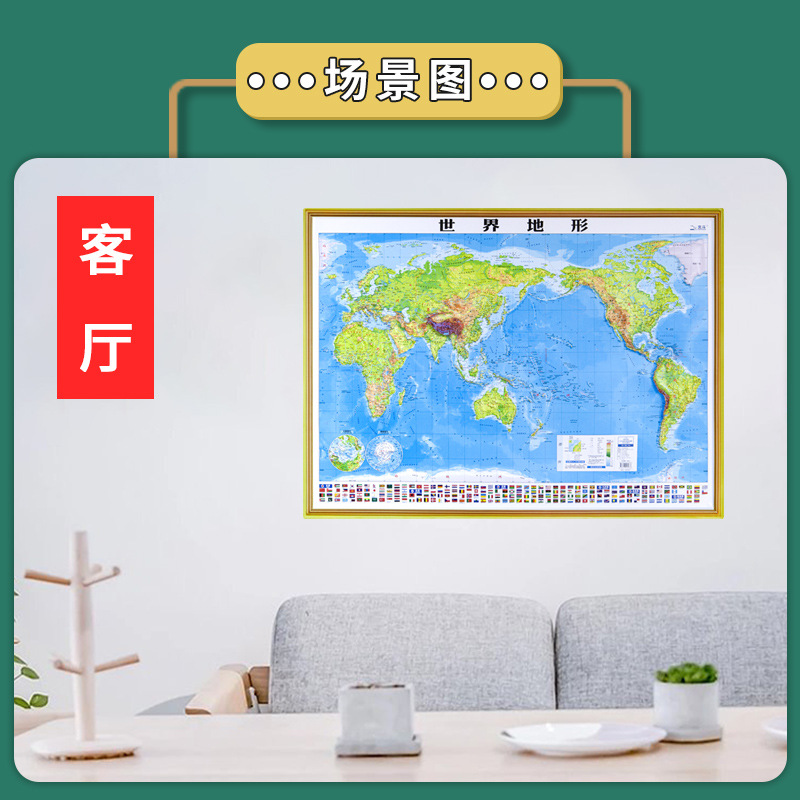 3D精雕立体2022新版世界地形地图3d立体地形图 三维凹凸墙贴