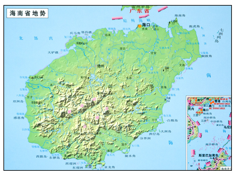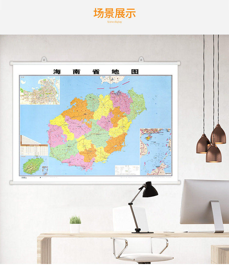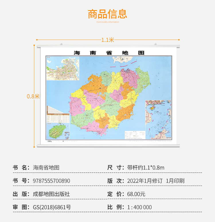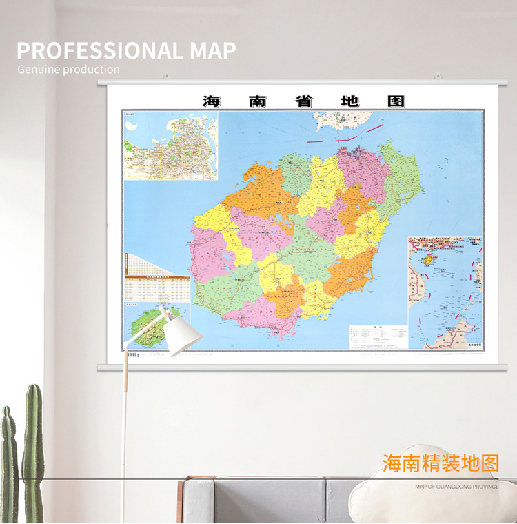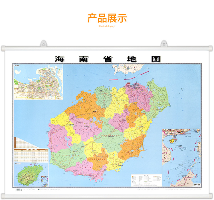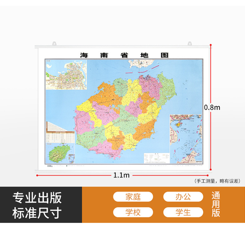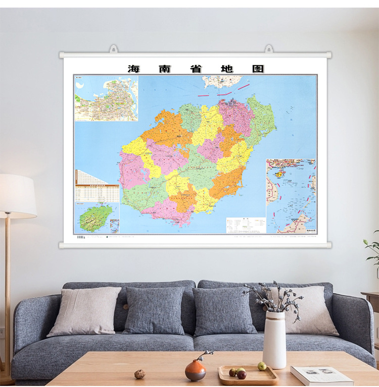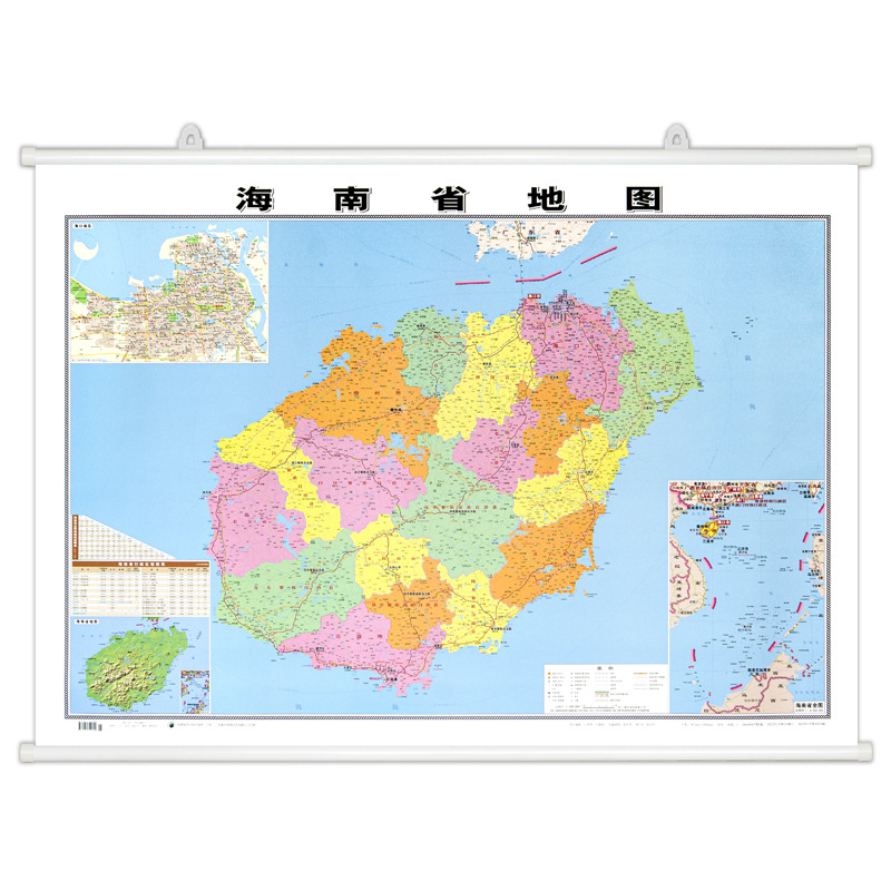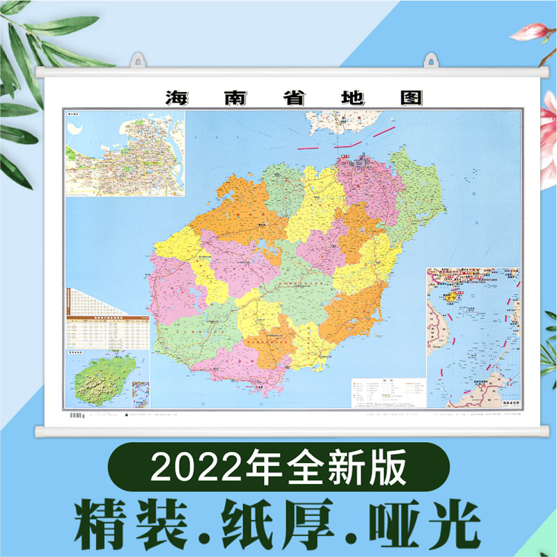 (特)海南省地图挂图1.1*0.8米双面覆膜防水挂杆 行政区划交通地图 2张